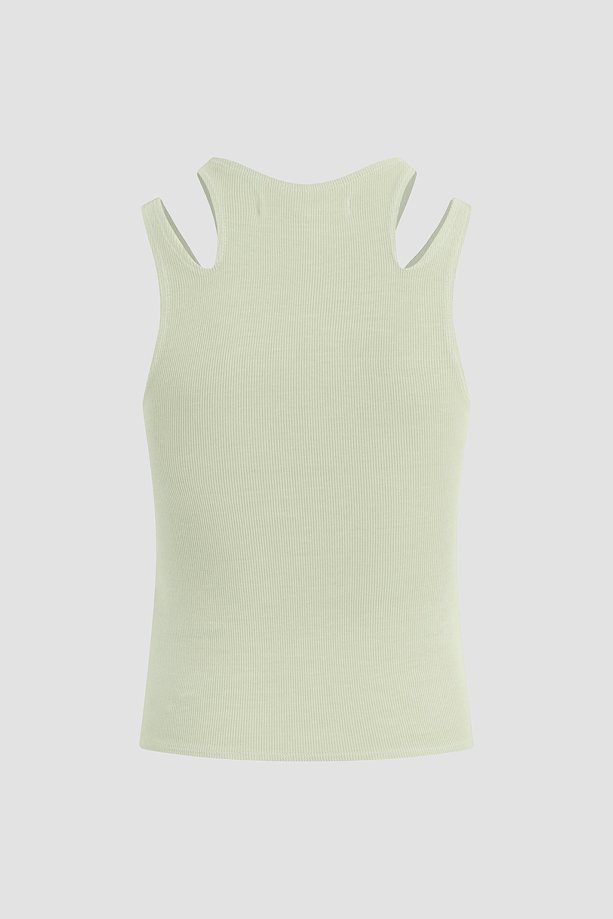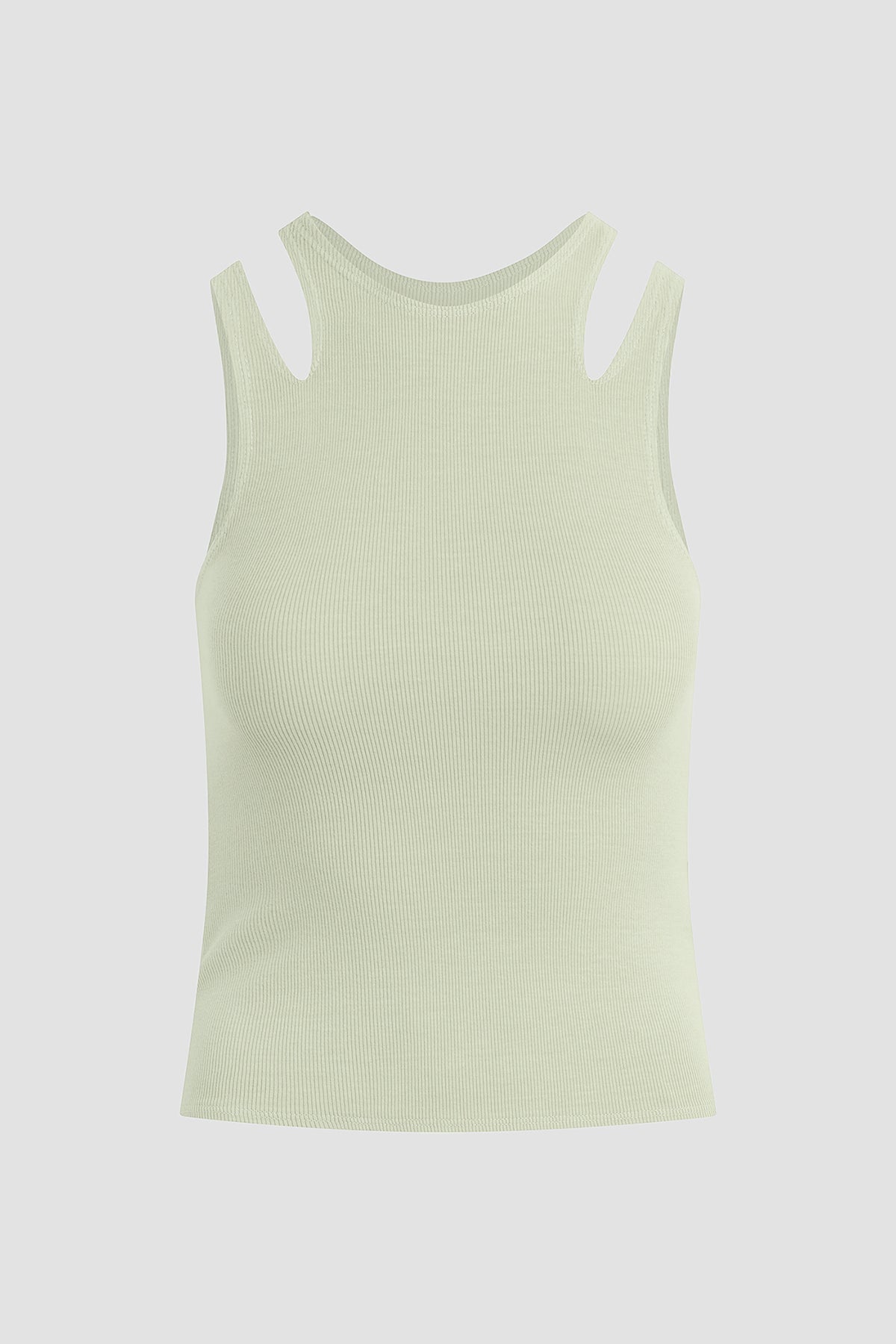 Simplicity stepped up. Our ribbed Cut Out Tank in Sage is made from soft cotton and features cutouts on the shoulders. -