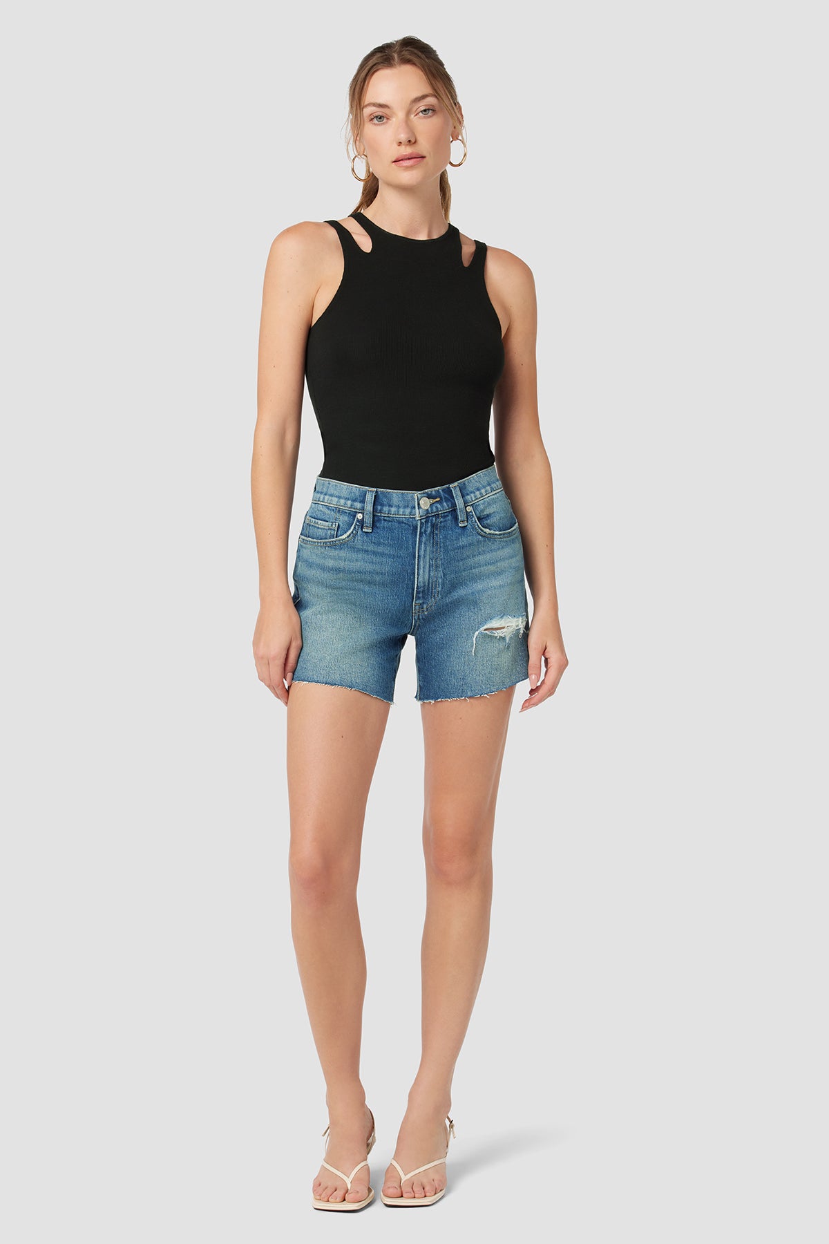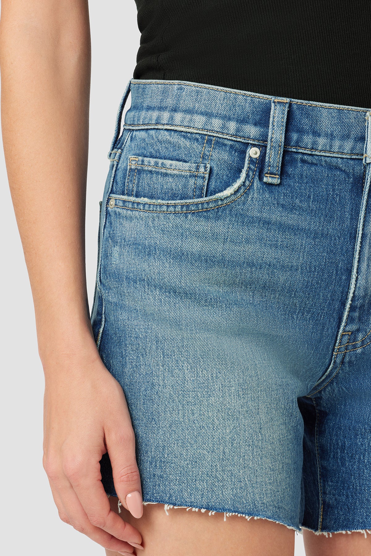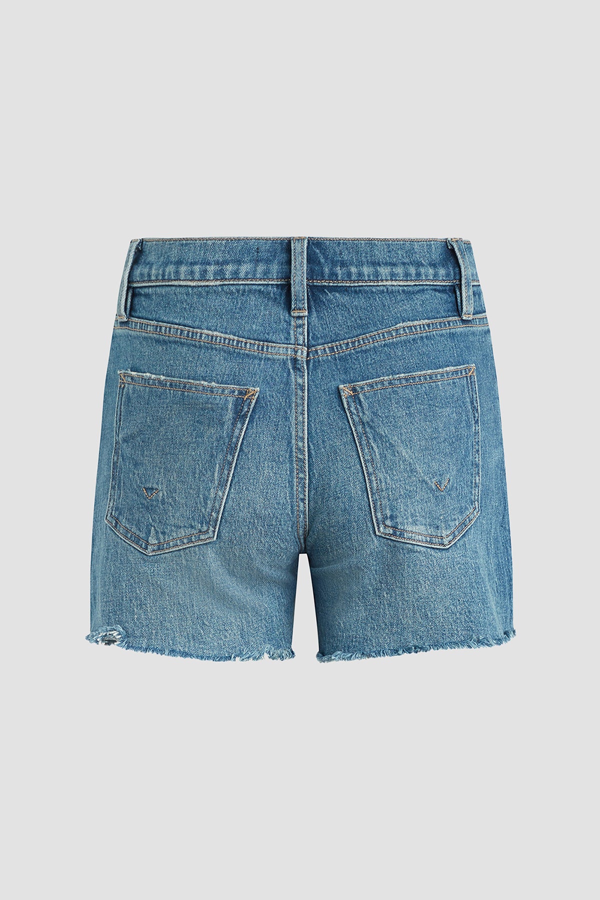 Made from premium comfort stretch denim, our Devon High-Rise Boyfriend Short in medium indigo Surf City features a flattering high rise, long inseam, and casual cutoff hem. -