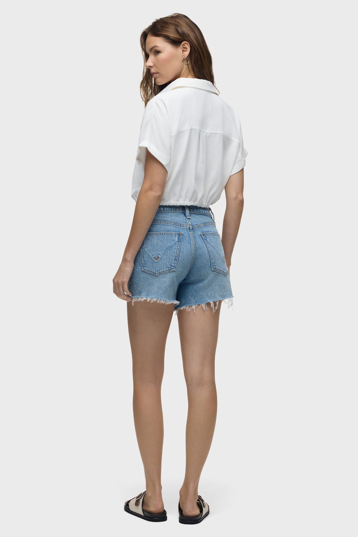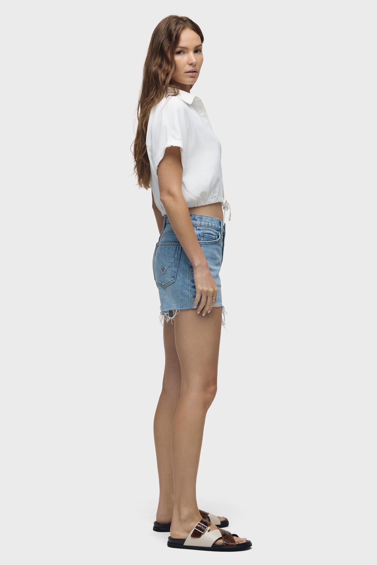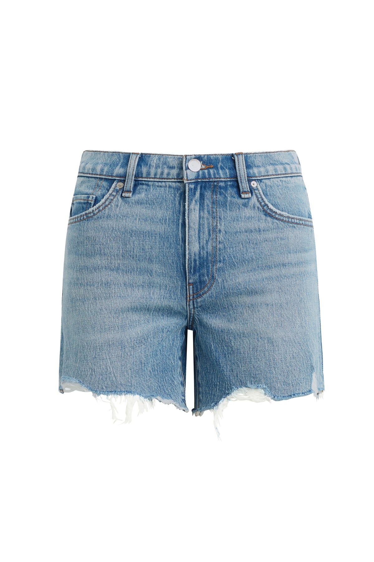 The Devon Boyfriend Short in Anthem has a relaxed boyfriend fit with a cool destructed hem. This pair is made of a premium comfort stretch denim in a vintage-inspired medium indigo wash with heavy stone washing, bleaching and edge grinding. -