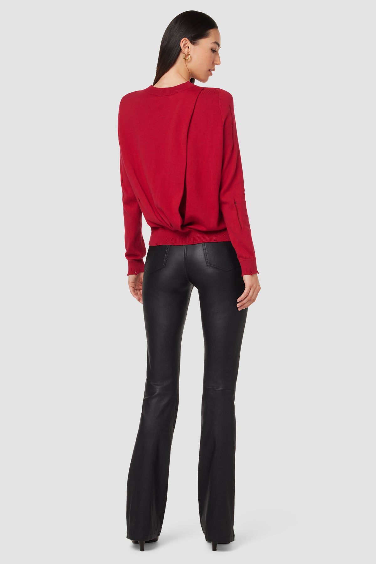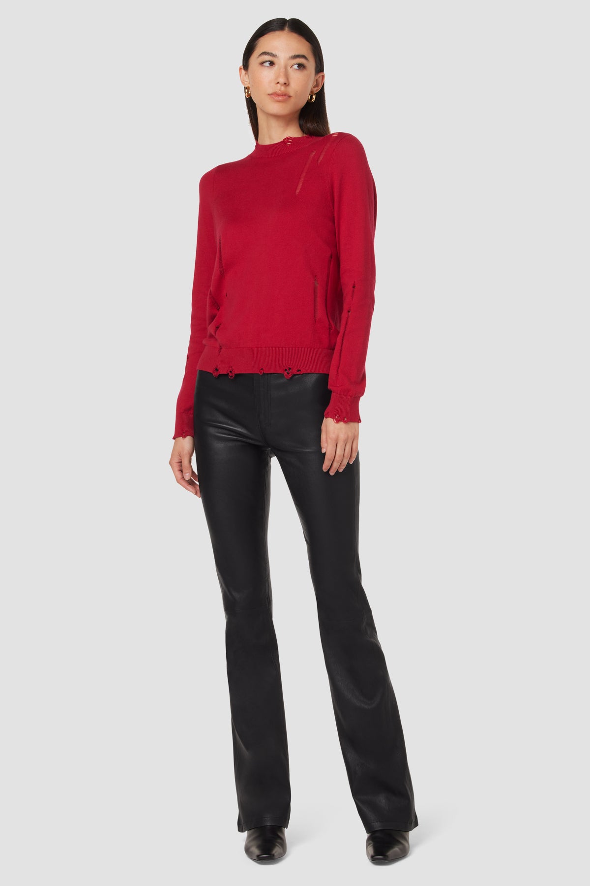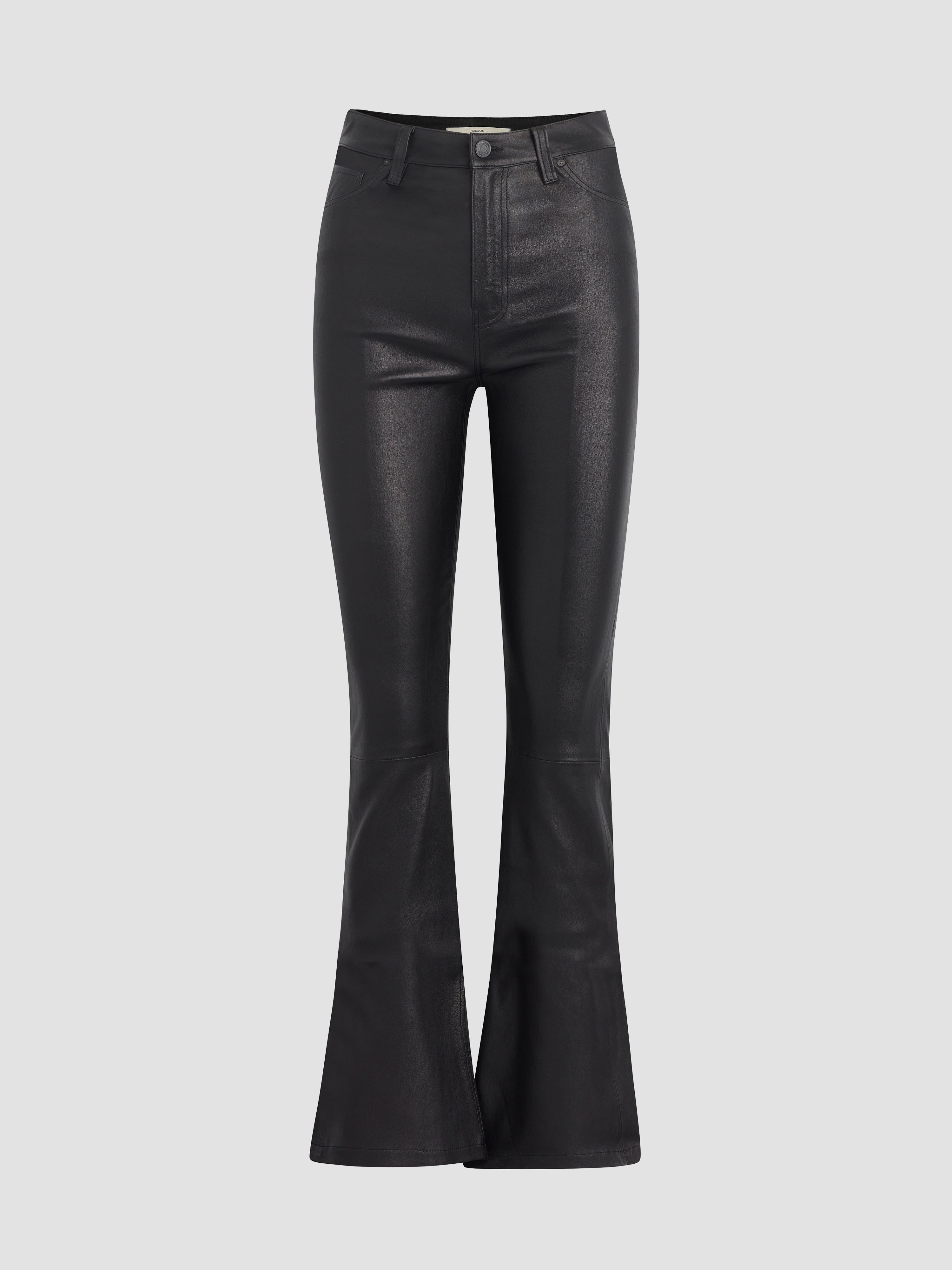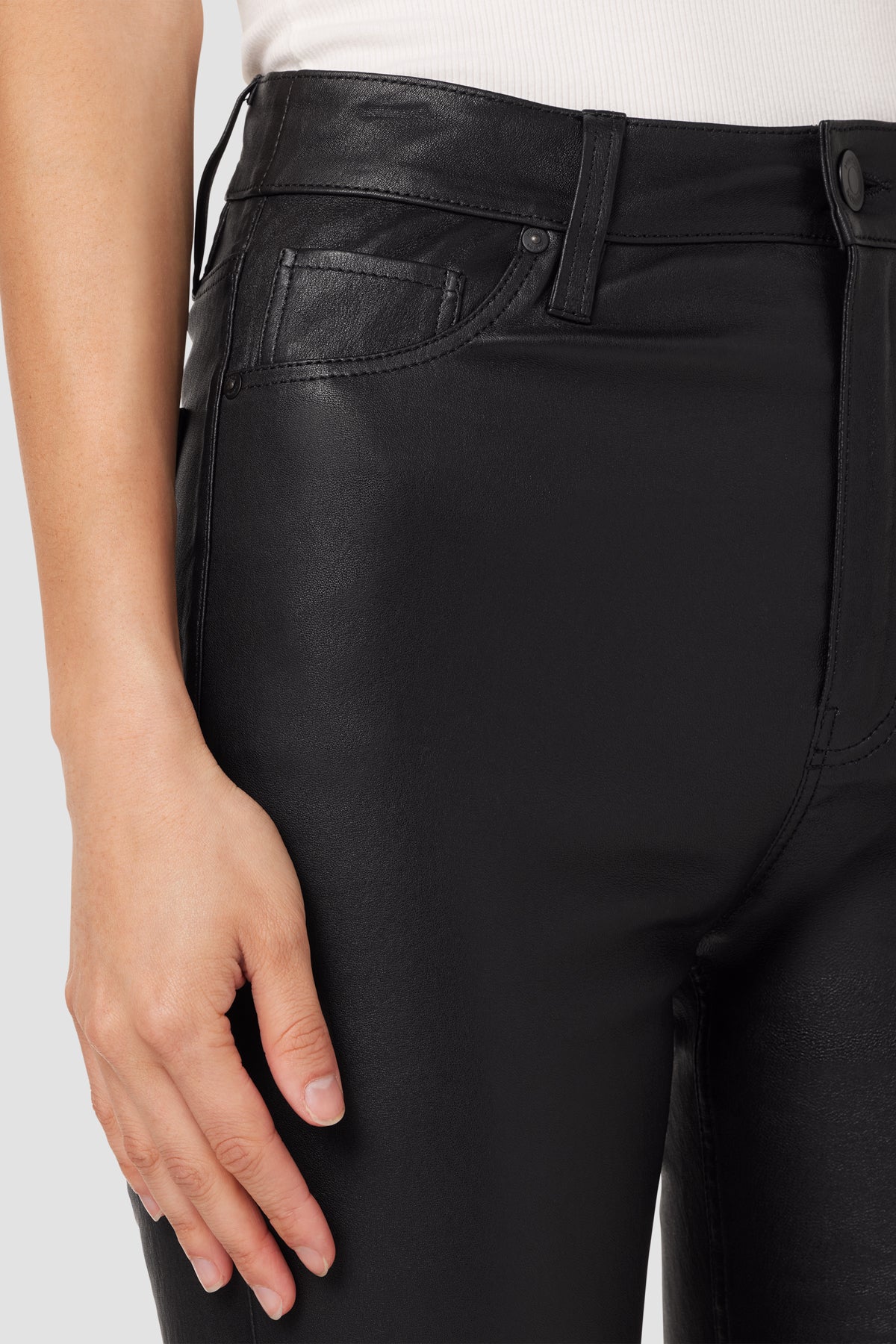 Our Faye Ultra High-Rise Bootcut Leather Pant in Black is cut from 100% leather with a holds-you-in waistline and fitted leg that breaks at the knee. -