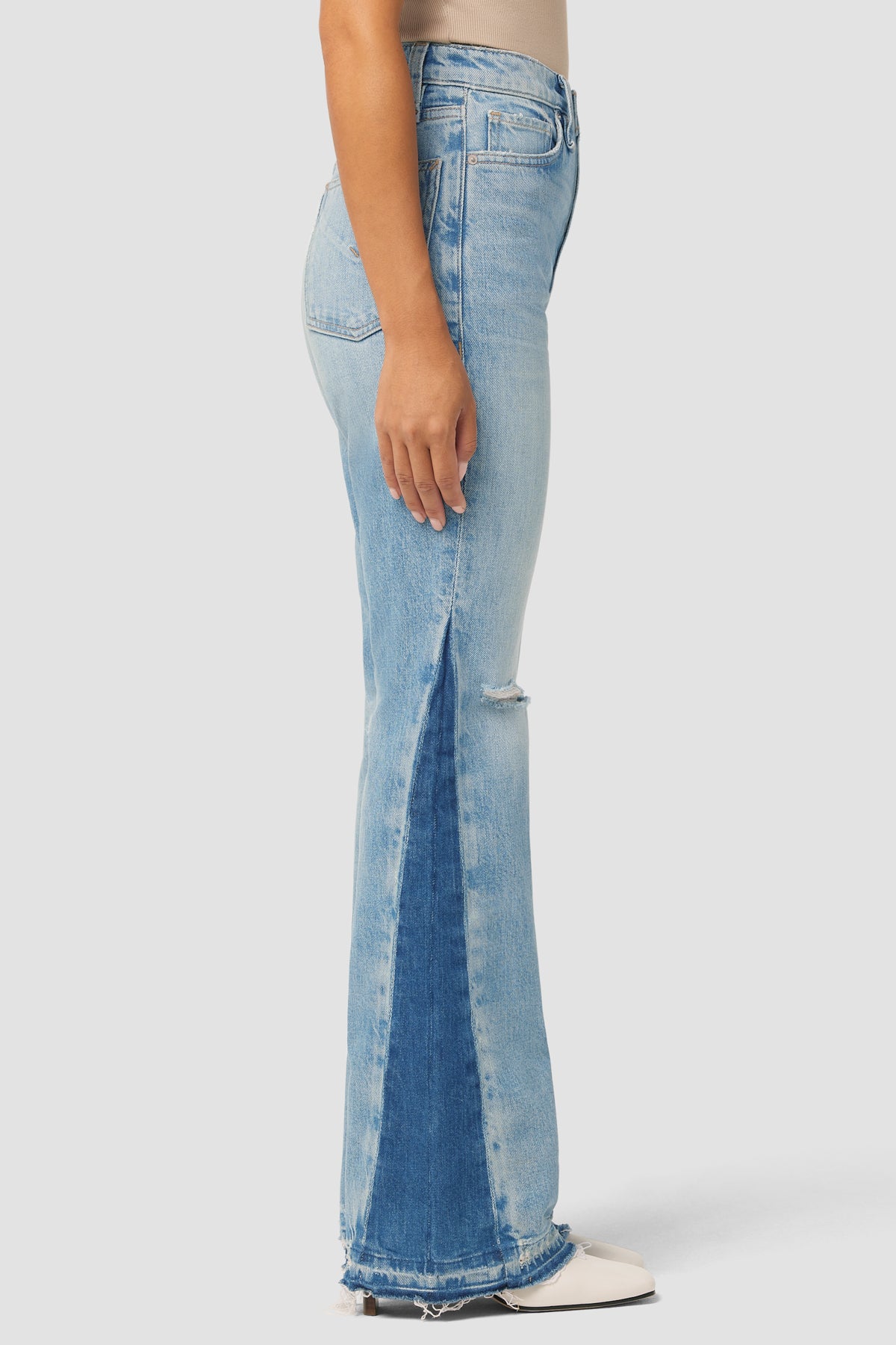 Meet the New Petite—fashion-forward denim specifically made for shorter frames. Our Faye Ultra High-Rise Flare Petite Jean in Harmonica is cut from premium comfort stretch denim with a holds-you-in waistline and fitted leg that breaks at the knee. Features distressing, contrast denim detail, and undone hems. -