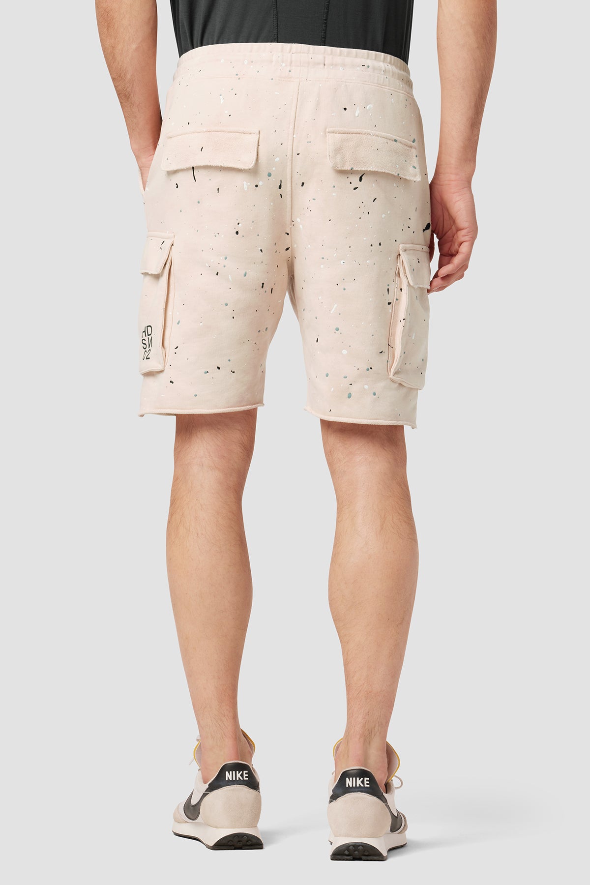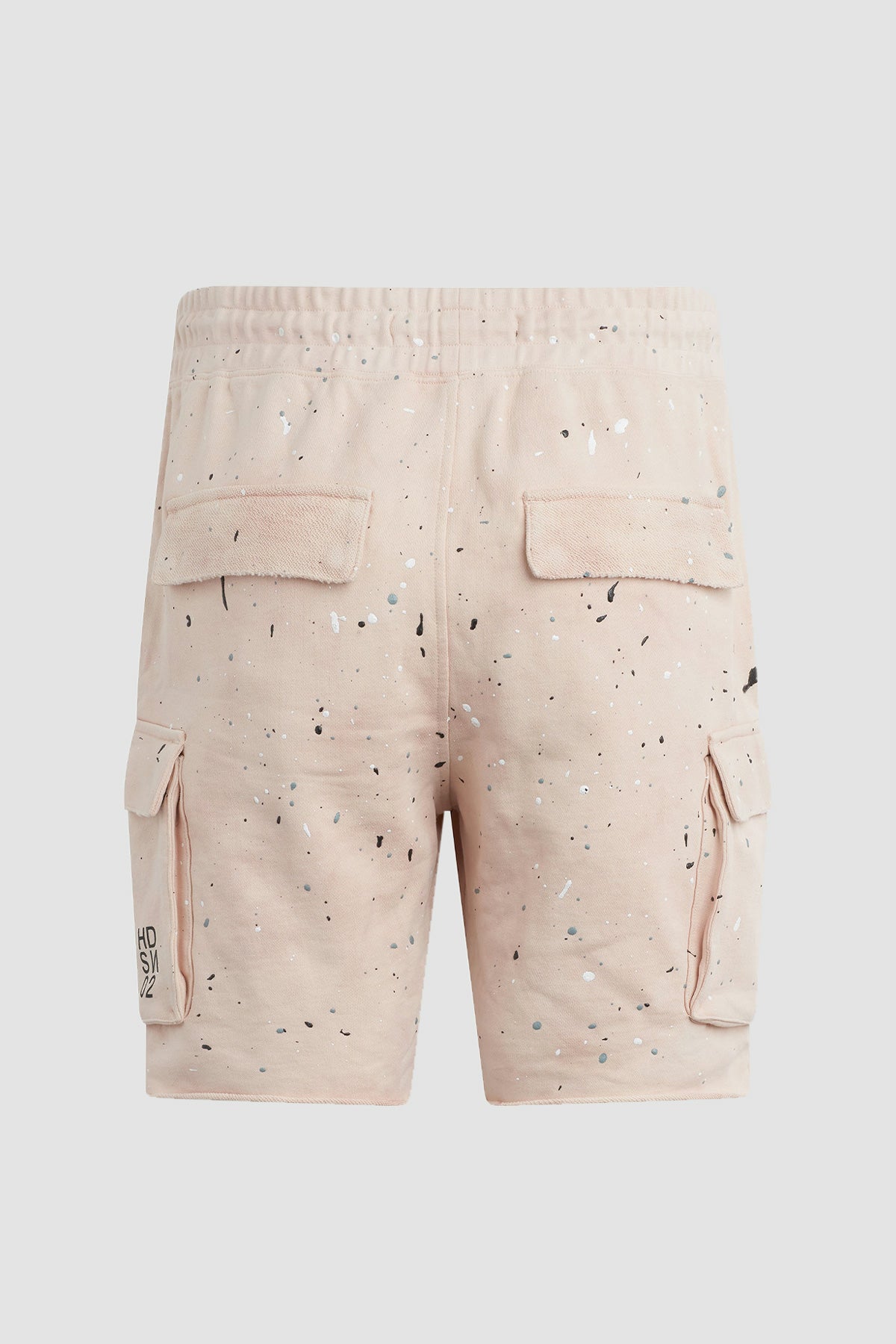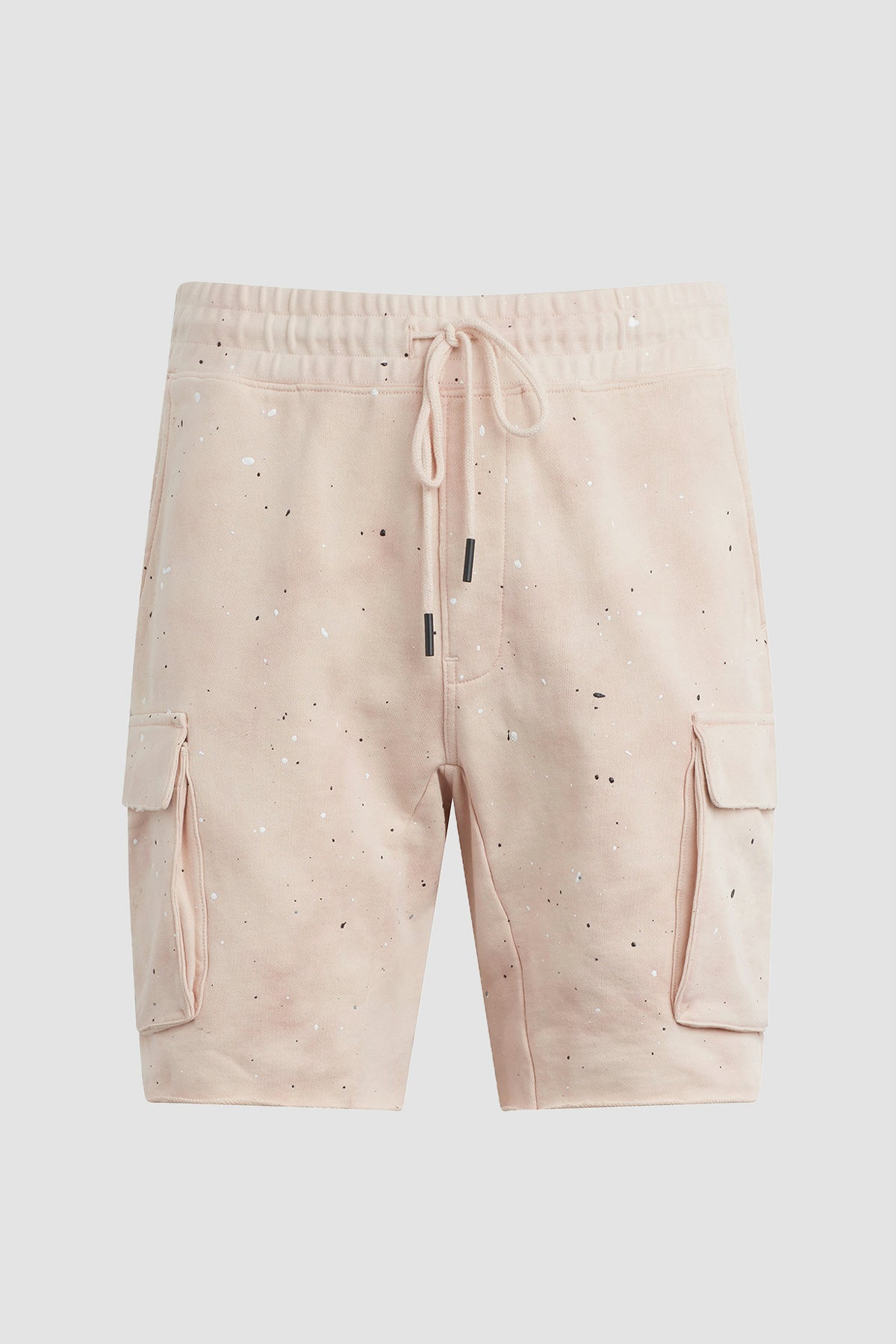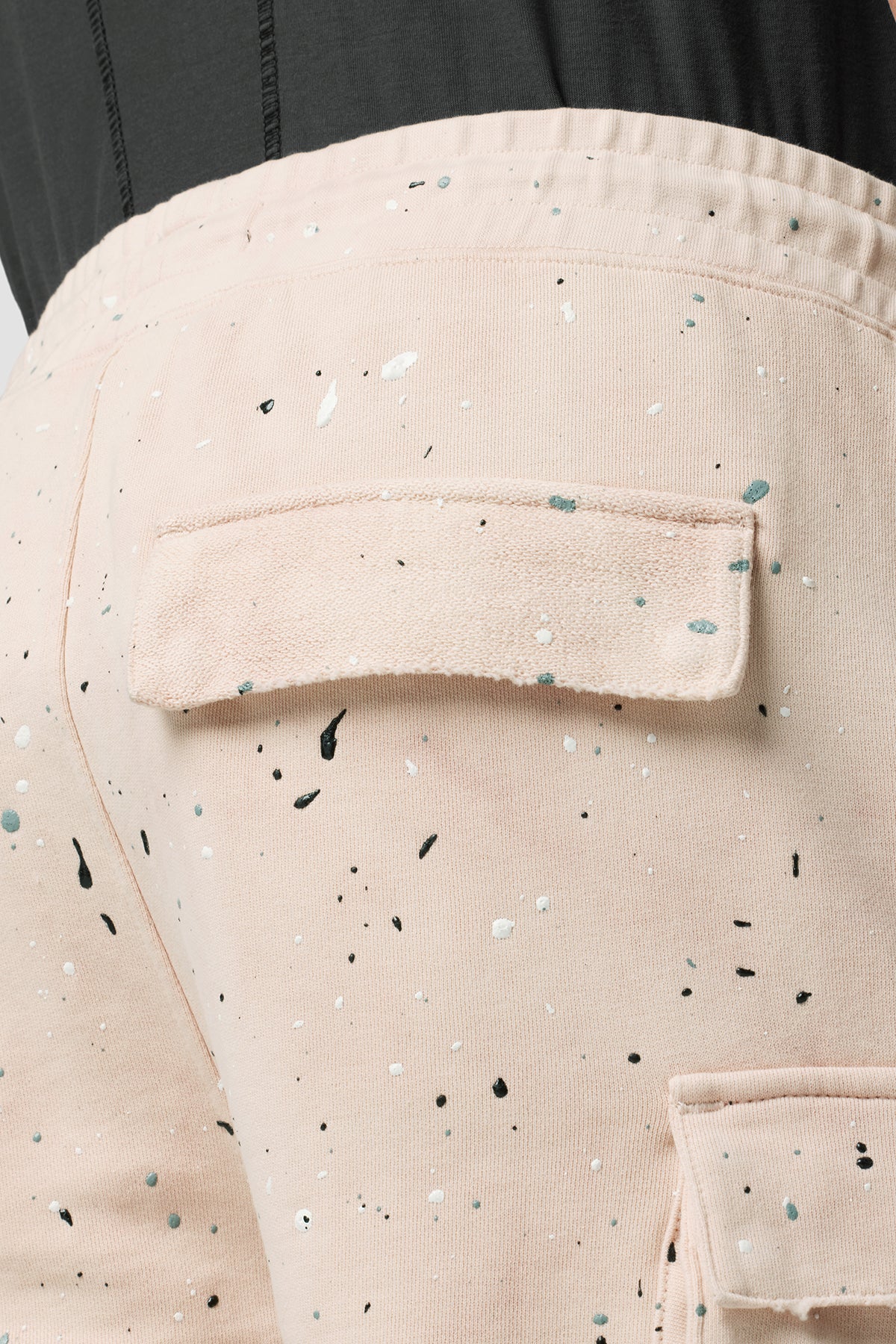 Cut for an easy fit from ultra-comfortable cotton, our French Terry Short in paint-speckled Coral Confetti features a drawstring waistband, two back pockets, and a cutoff hem. -