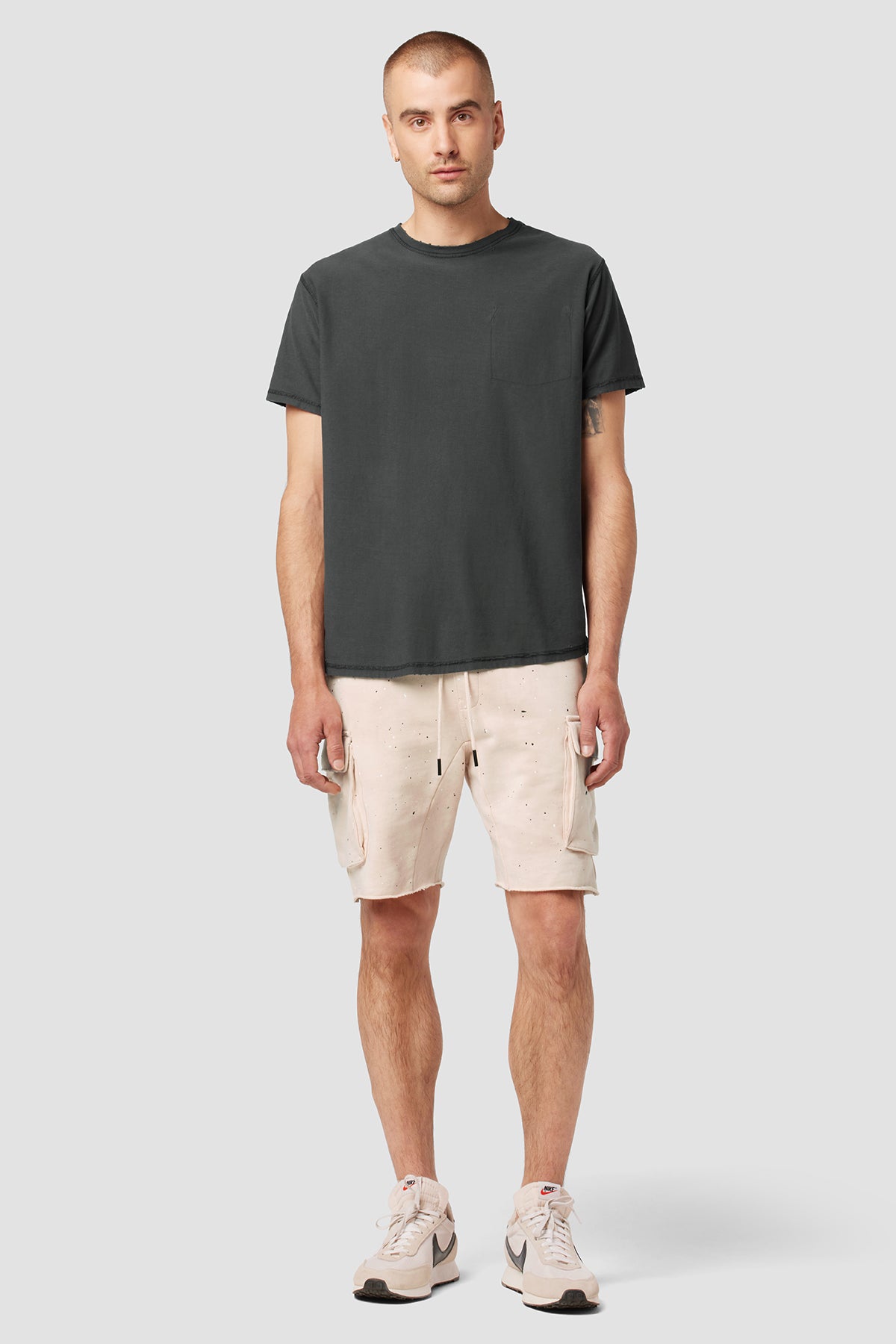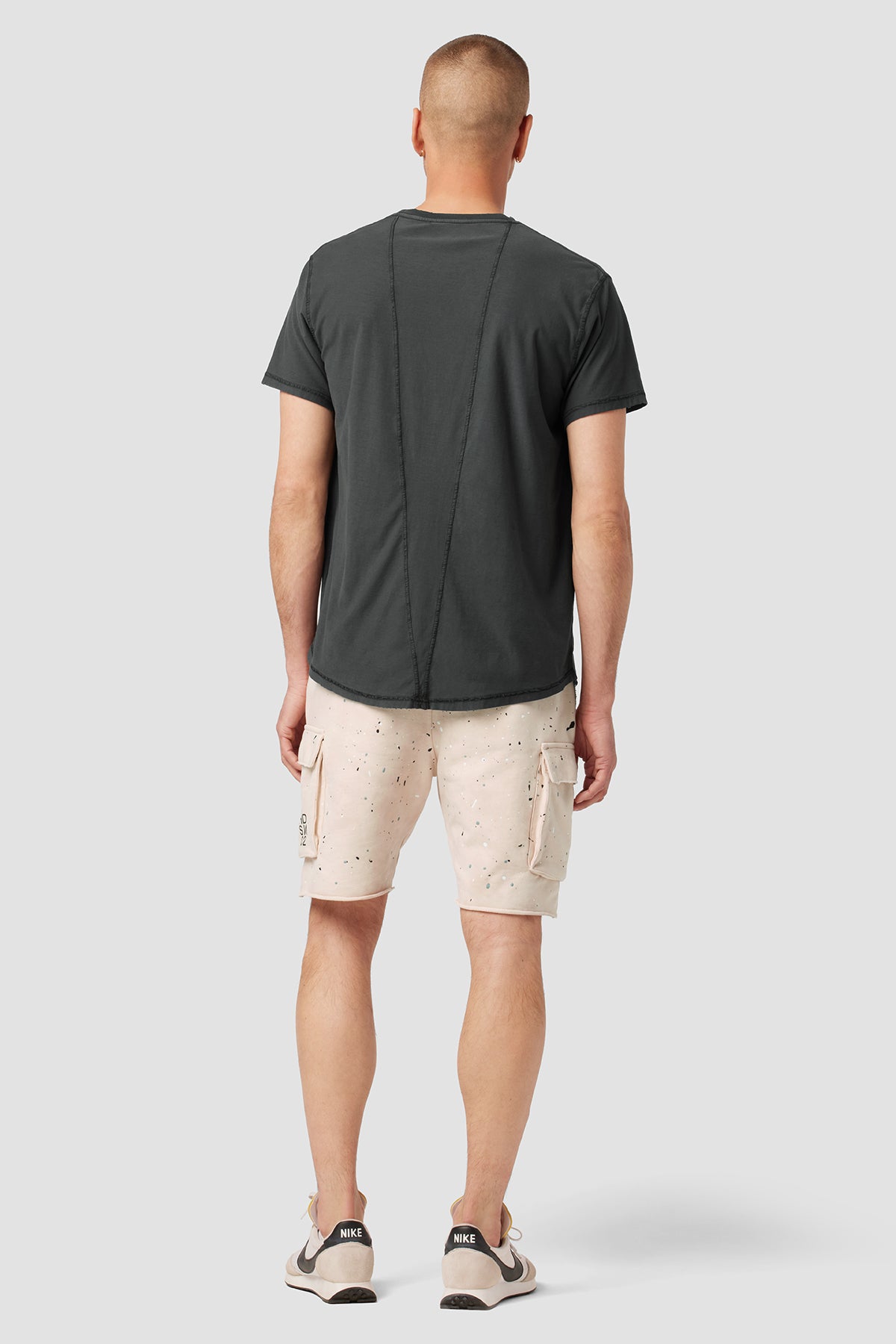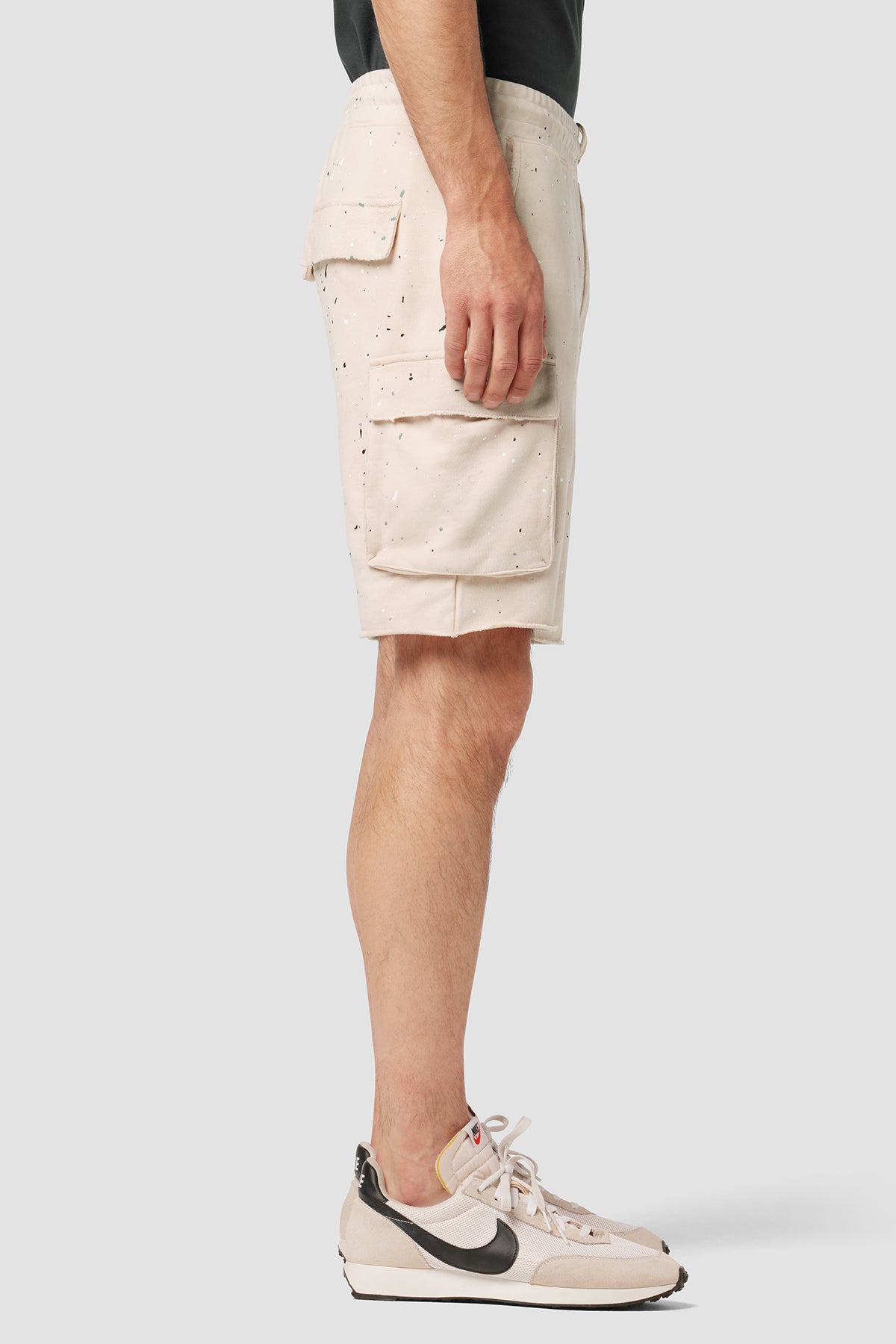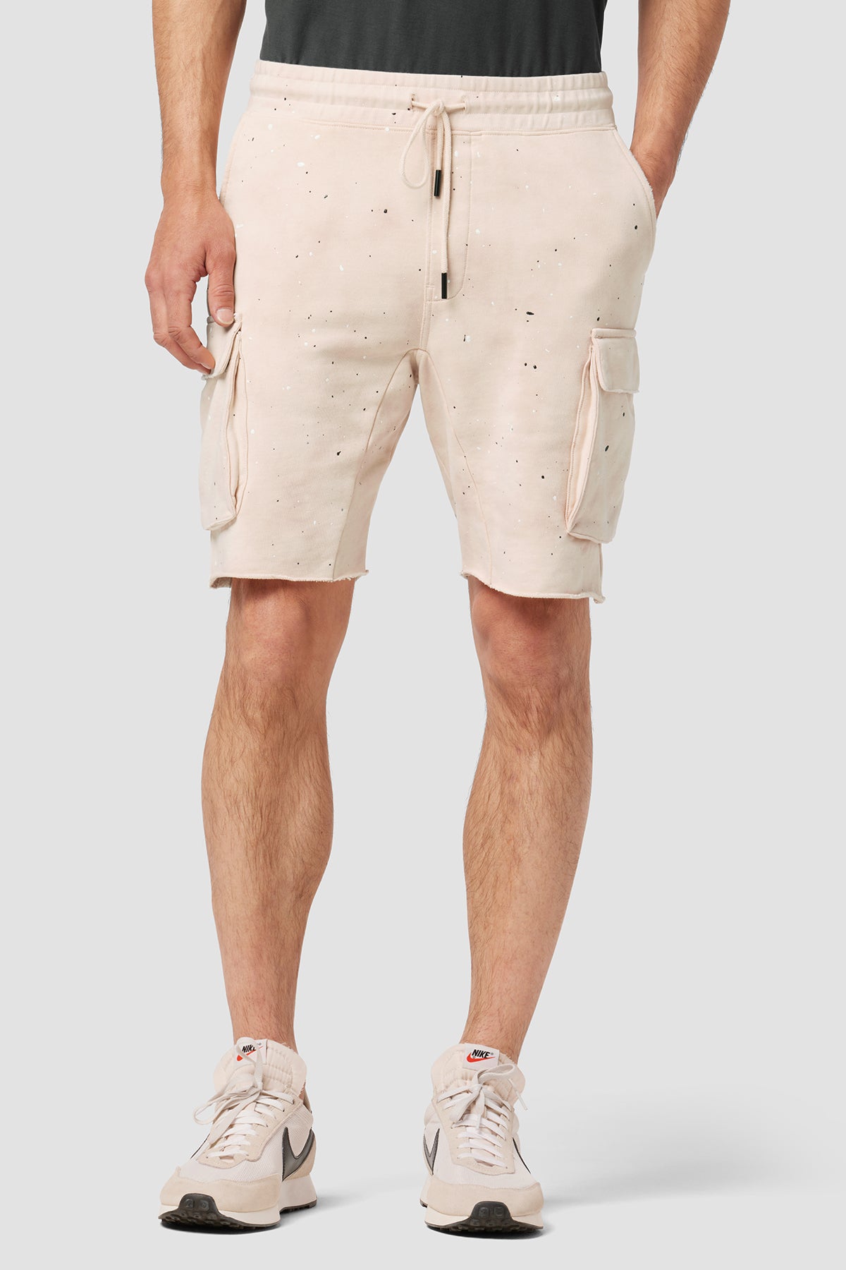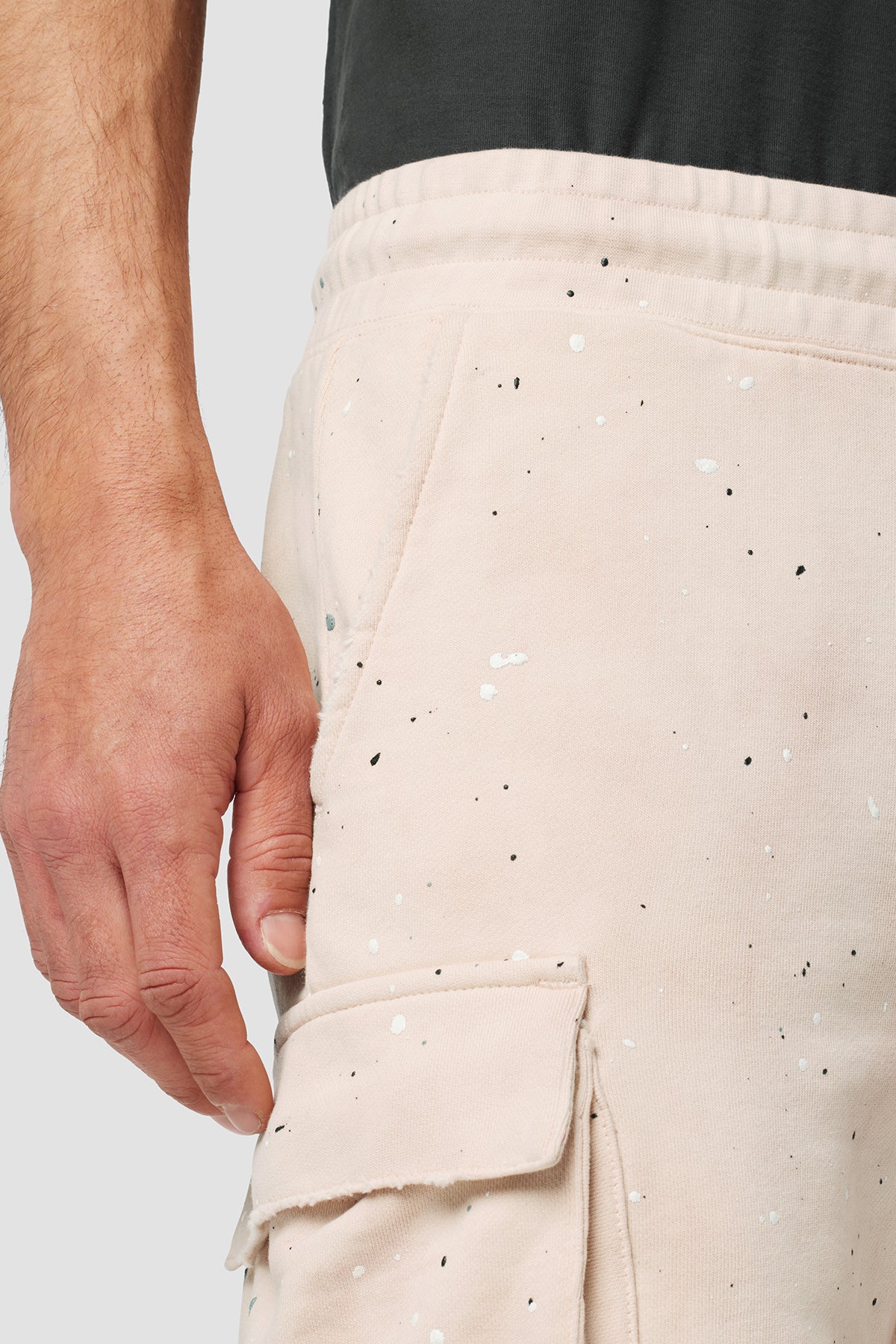 Cut for an easy fit from ultra-comfortable cotton, our French Terry Short in paint-speckled Coral Confetti features a drawstring waistband, two back pockets, and a cutoff hem. -