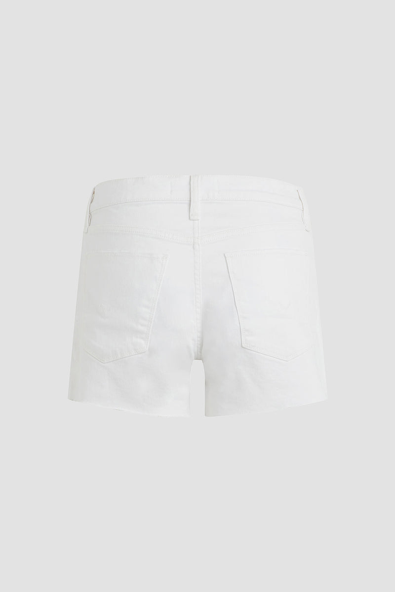 Designed with elastic panels for added comfort and support, our Gemma Maternity Short in White is a mid-rise, relaxed-fit pair crafted from premium comfort stretch denim with classic five-pocket details.