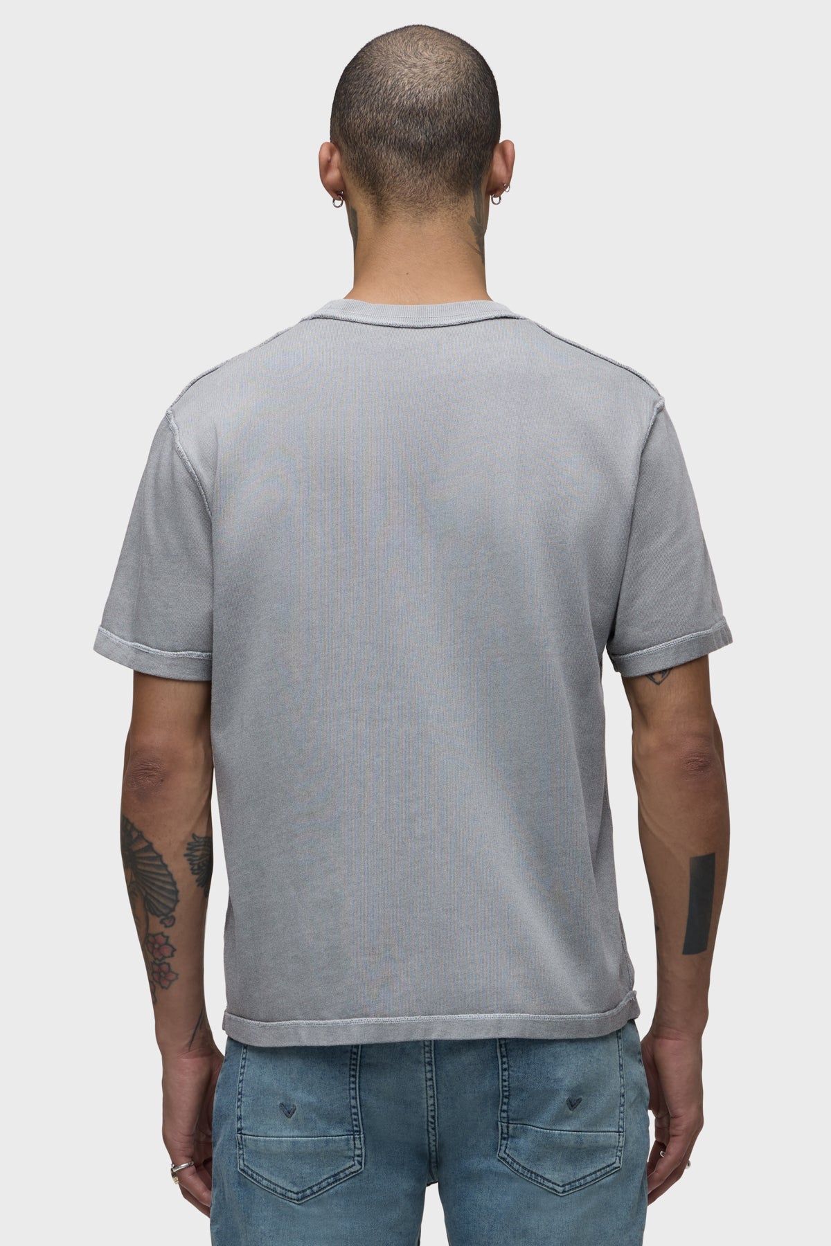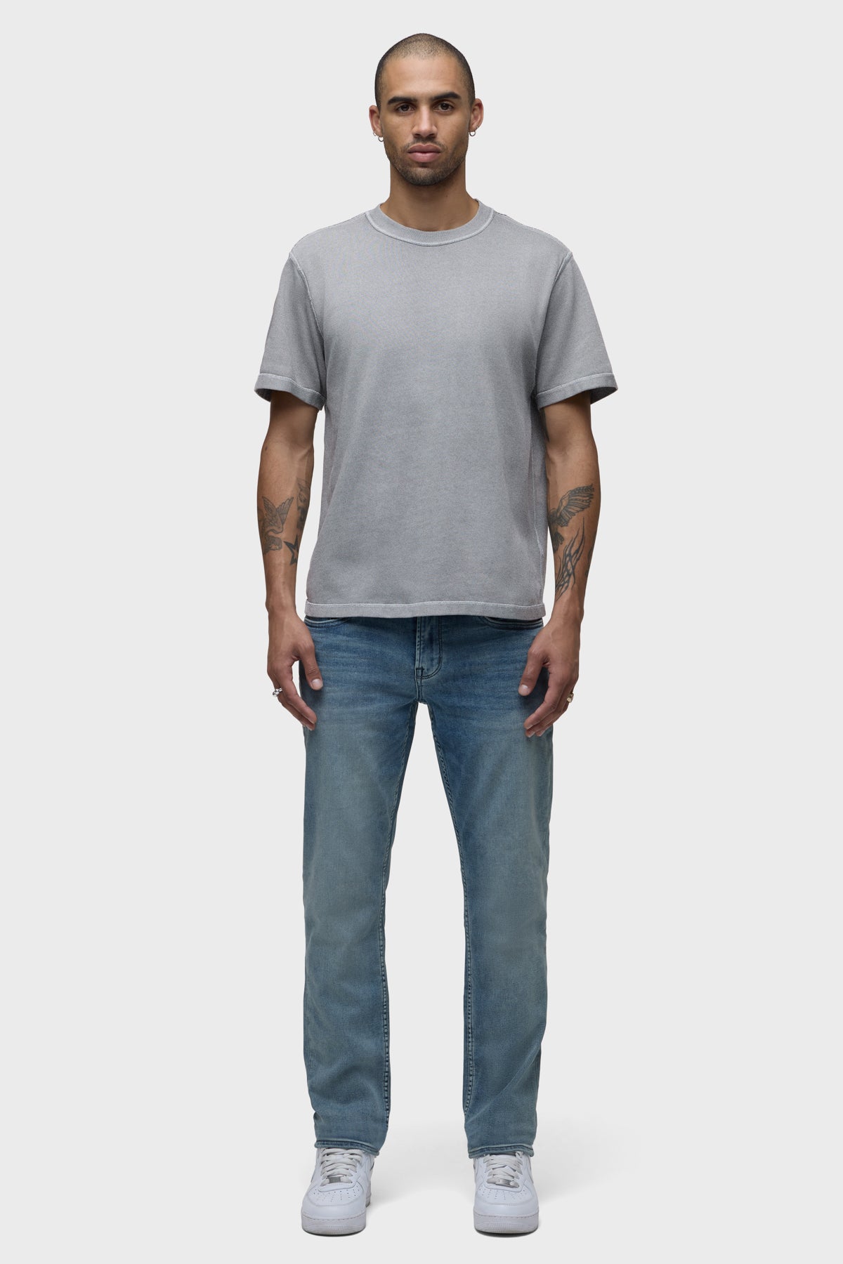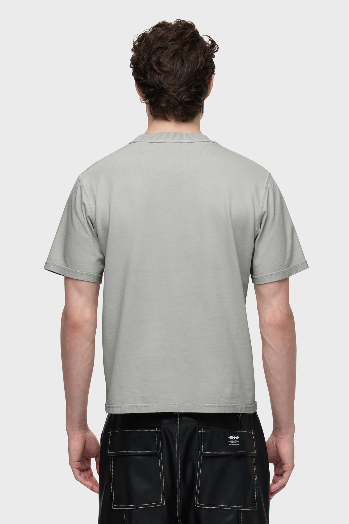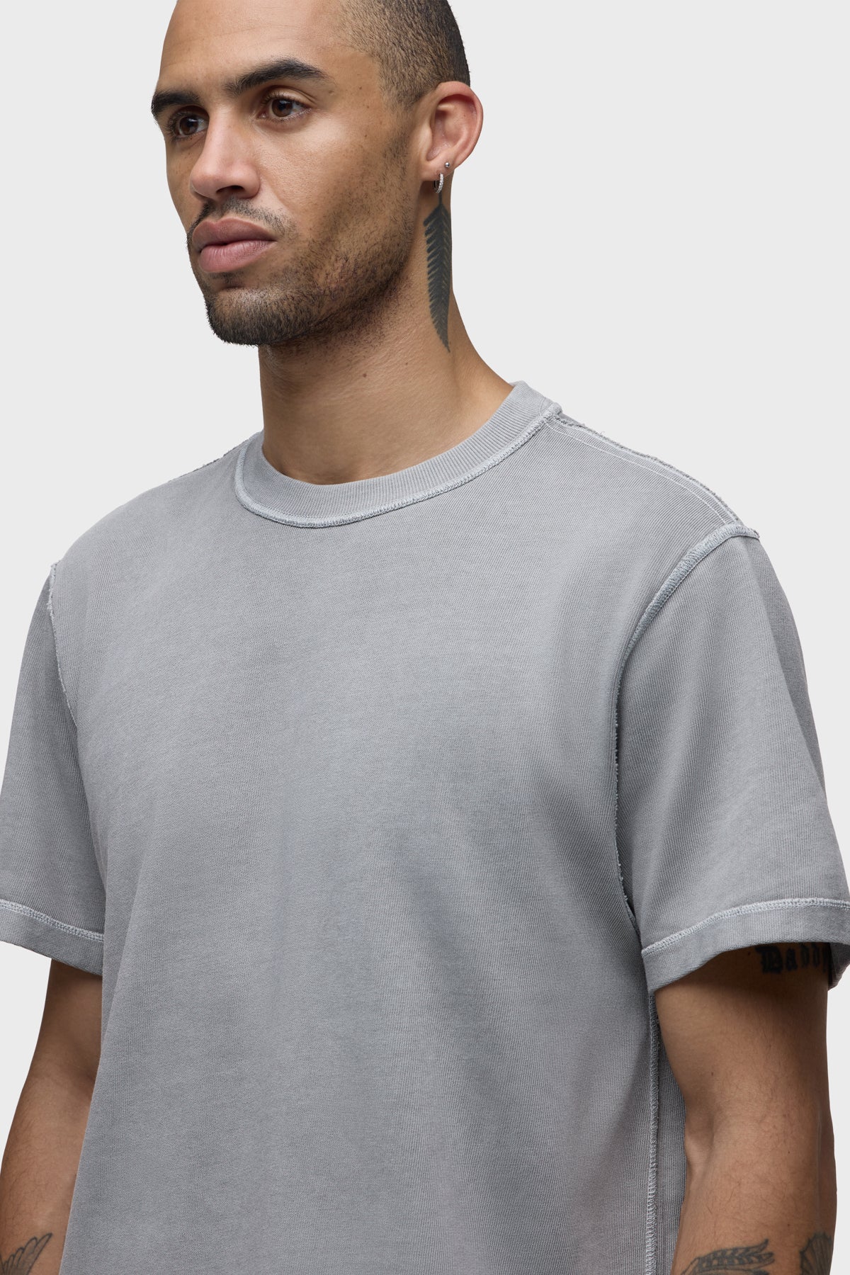 Our new Heavy Weight Tee in Lead is made from 100% cotton with a slightly boxy fit. The crew neckline is ribbed and the tee is finished with reverse seam details. Stone washed to give a soft feel and worn-in look. -
