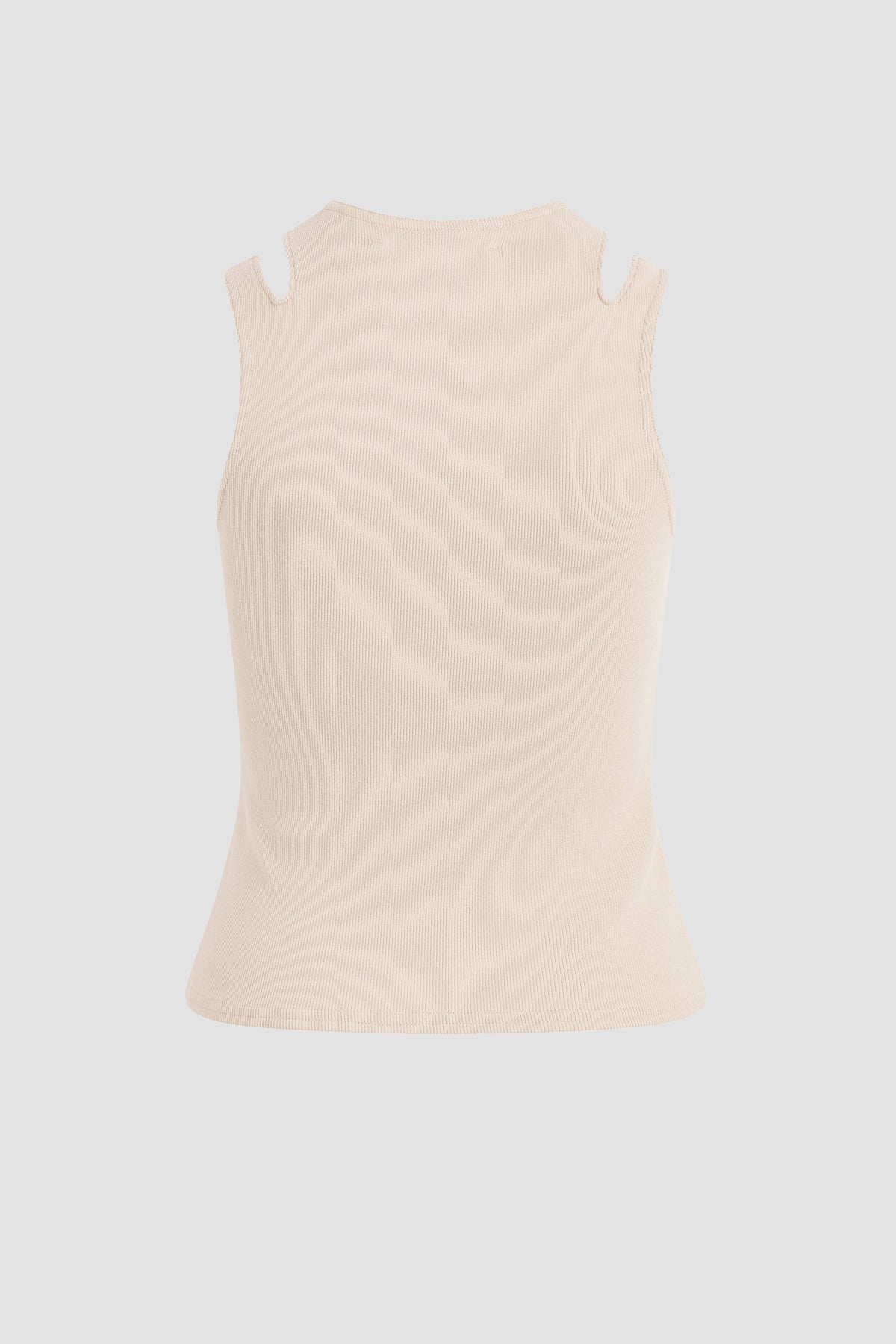 Simplicity stepped up. Our ribbed Cut Out Tank in Camel is made from soft cotton and features cutouts on the shoulders and Hudson embroidery at hem. -