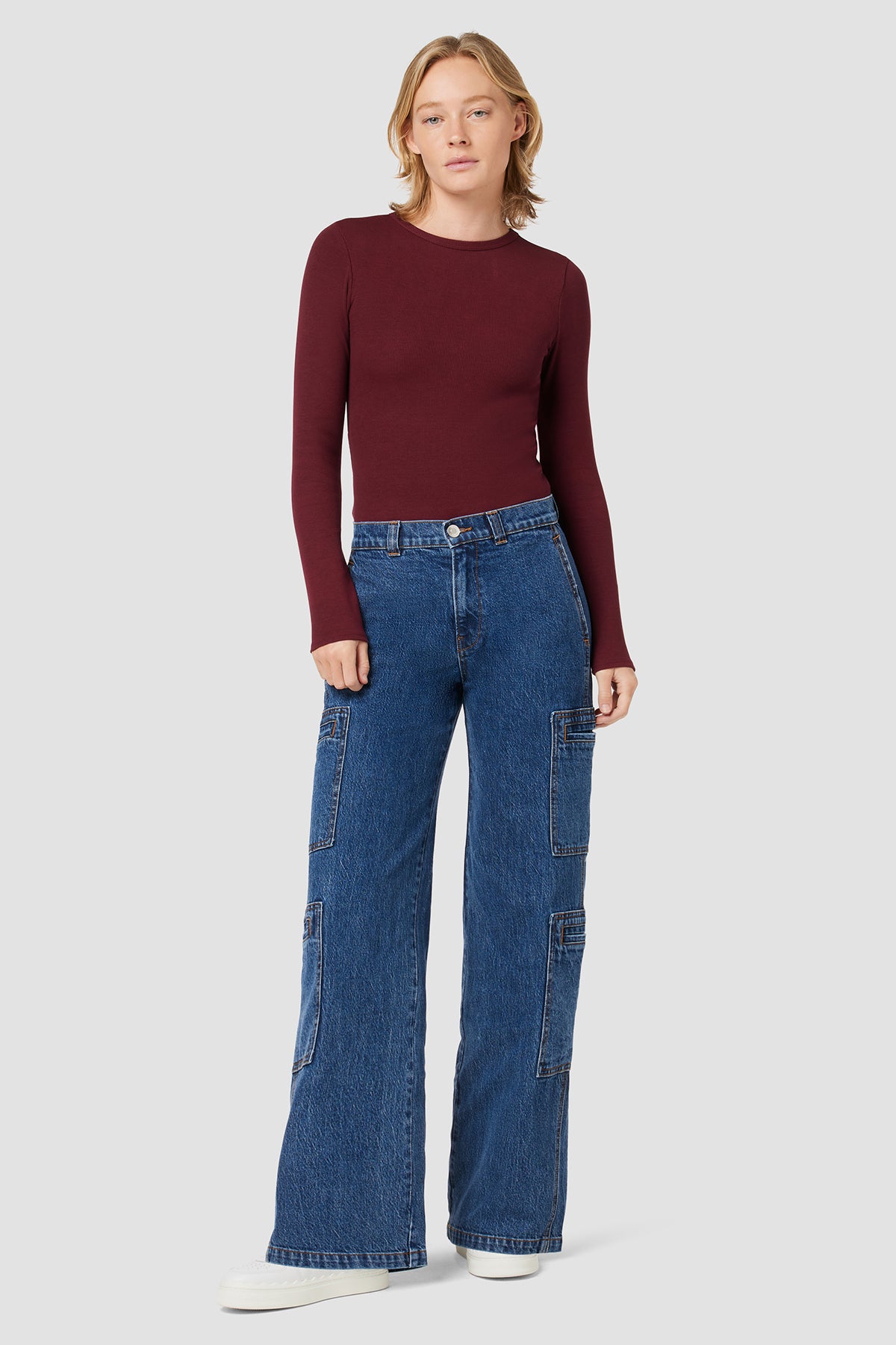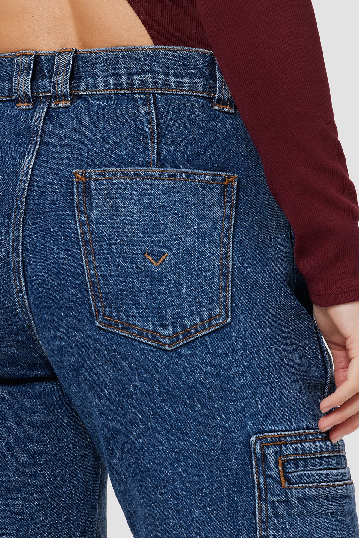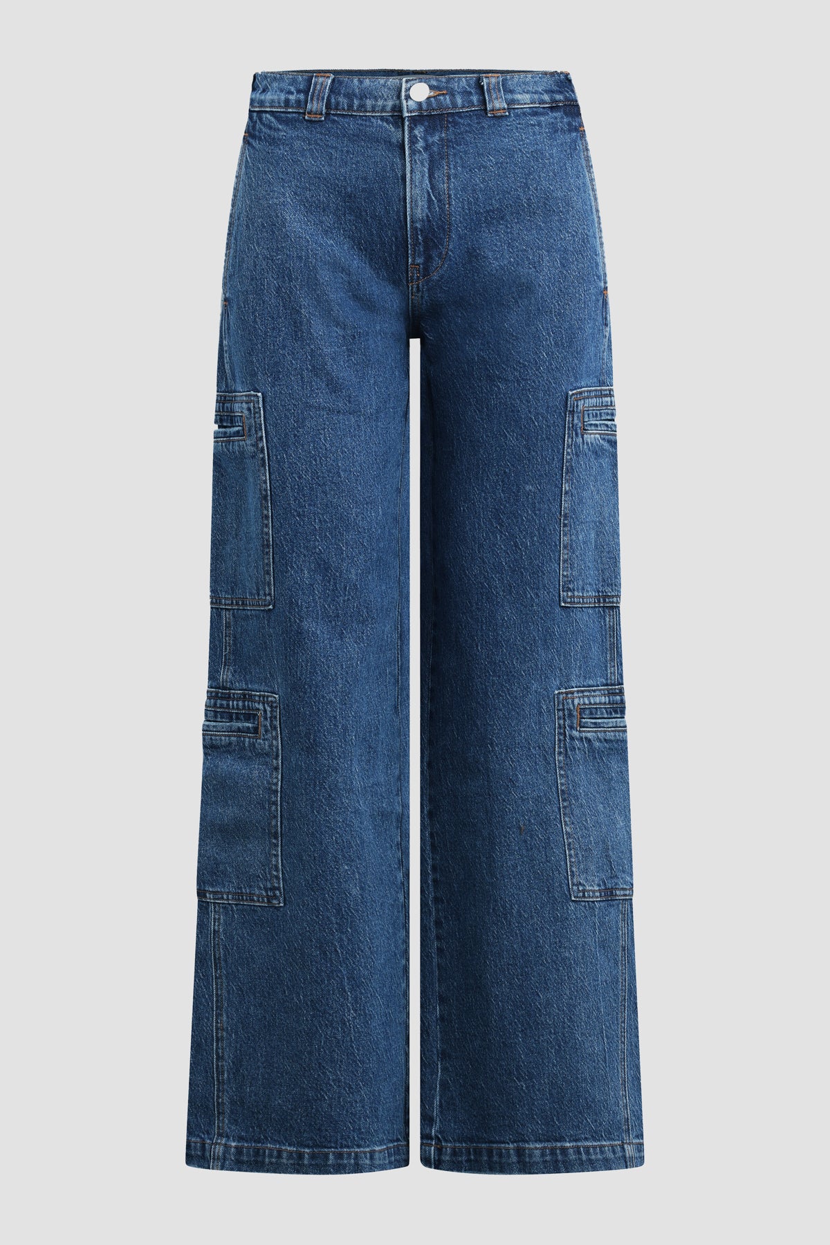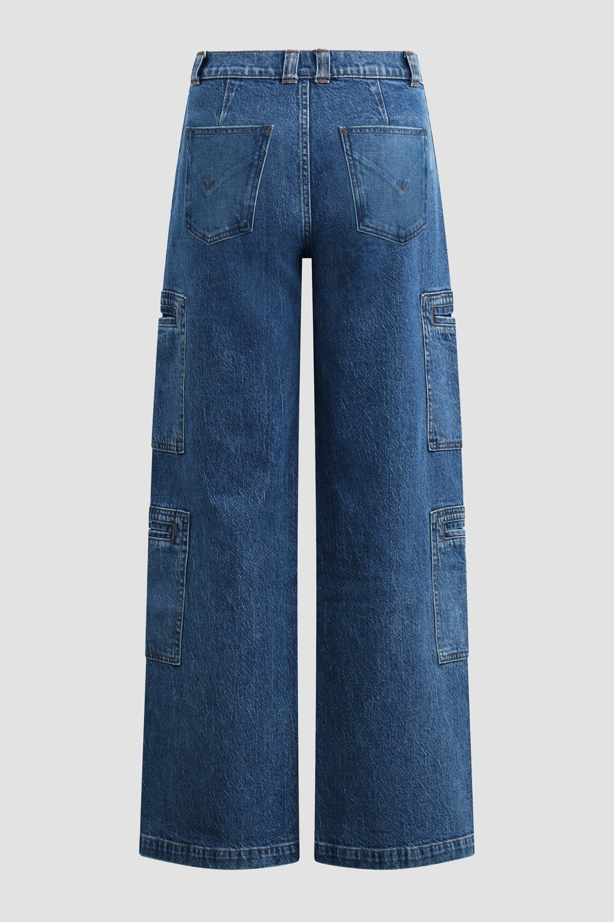 Effortlessly cool and made from premium recycled cotton, the High-Rise Welt Pocket Wide Leg Cargo in Wonderland has a utility fit, featuring welt pocket details and a wider leg with a fitted waist. -