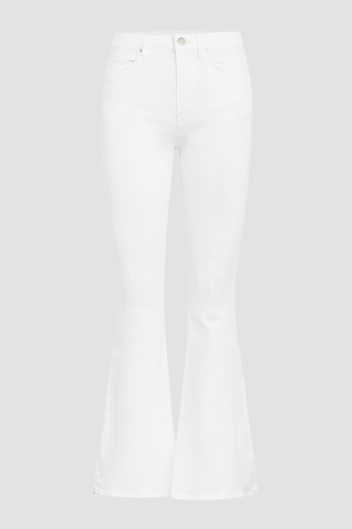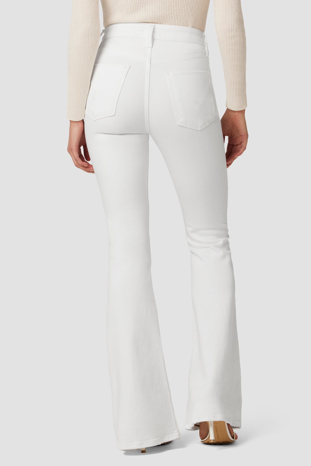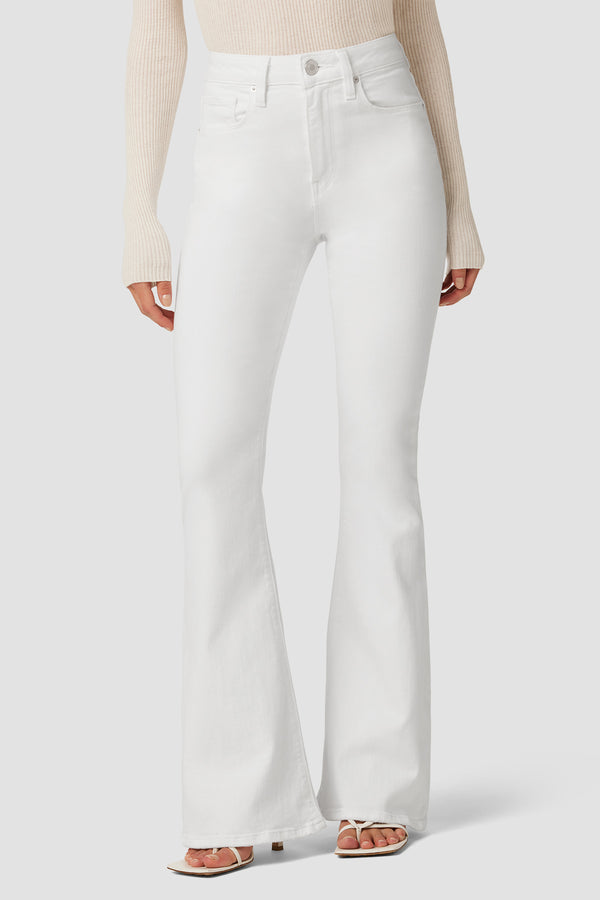Our Holly High-Rise Flare Petite Jean in White is cut with a shorter inseam from premium super stretch denim. It features an elevated waistline, classic five-pocket details, and a fitted leg that breaks at the knee. As part of our Eco-Forward initiative, this garment is made with eco-friendly materials and innovative technology to soften our impact on Earth. -