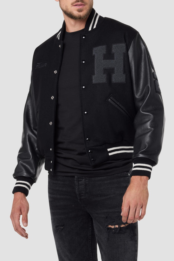 Designed in collaboration with menswear stylist Brandon Williams, our Special Edition Leather Varsity Jacket is a true MVP classic made with wool-felt and leather with special collab embroidery plus hand sewn patchwork on the chest, back, and sleeves. Made in the USA. -