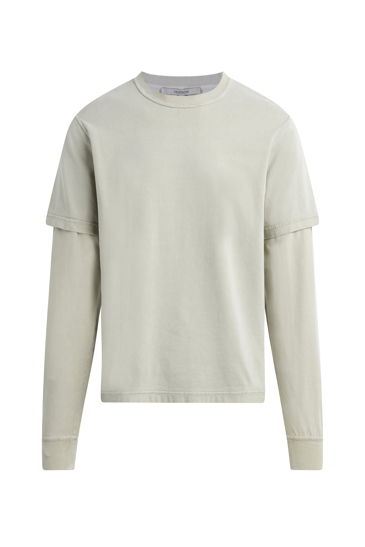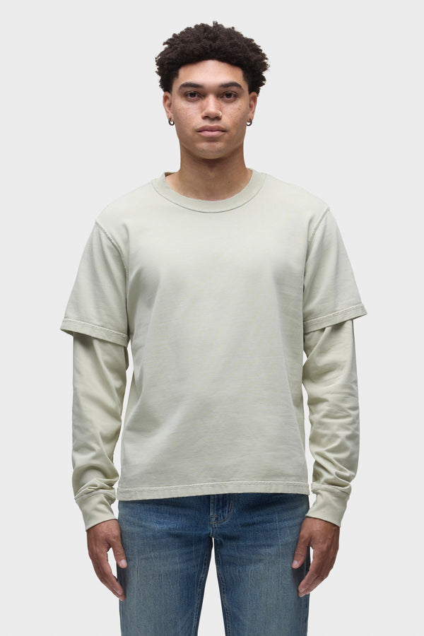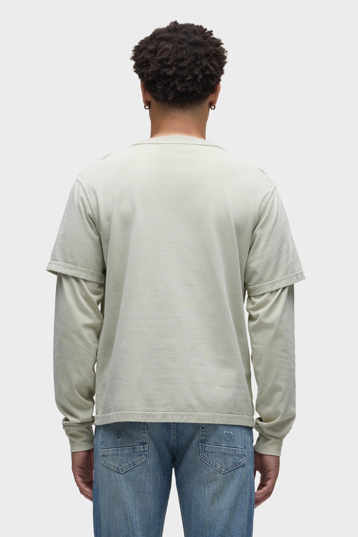 The Hybrid Long Sleeve Tee is made from heavyweight cotton jersey in Sandstone, an overdyed light tan. The style features the throwback combo of a relaxed-fit short sleeve tee layered over a lightweight cotton jersey long sleeve tee. -