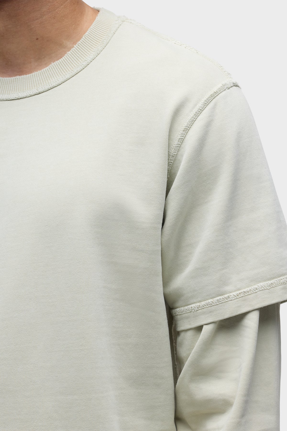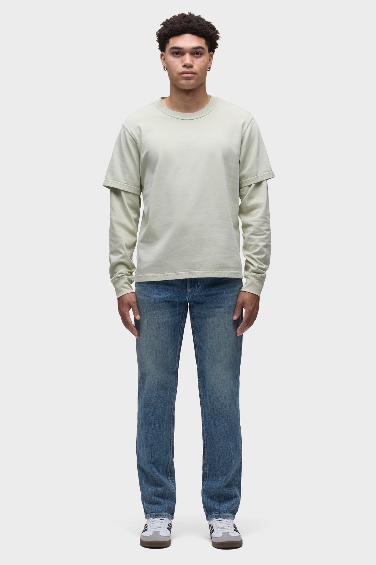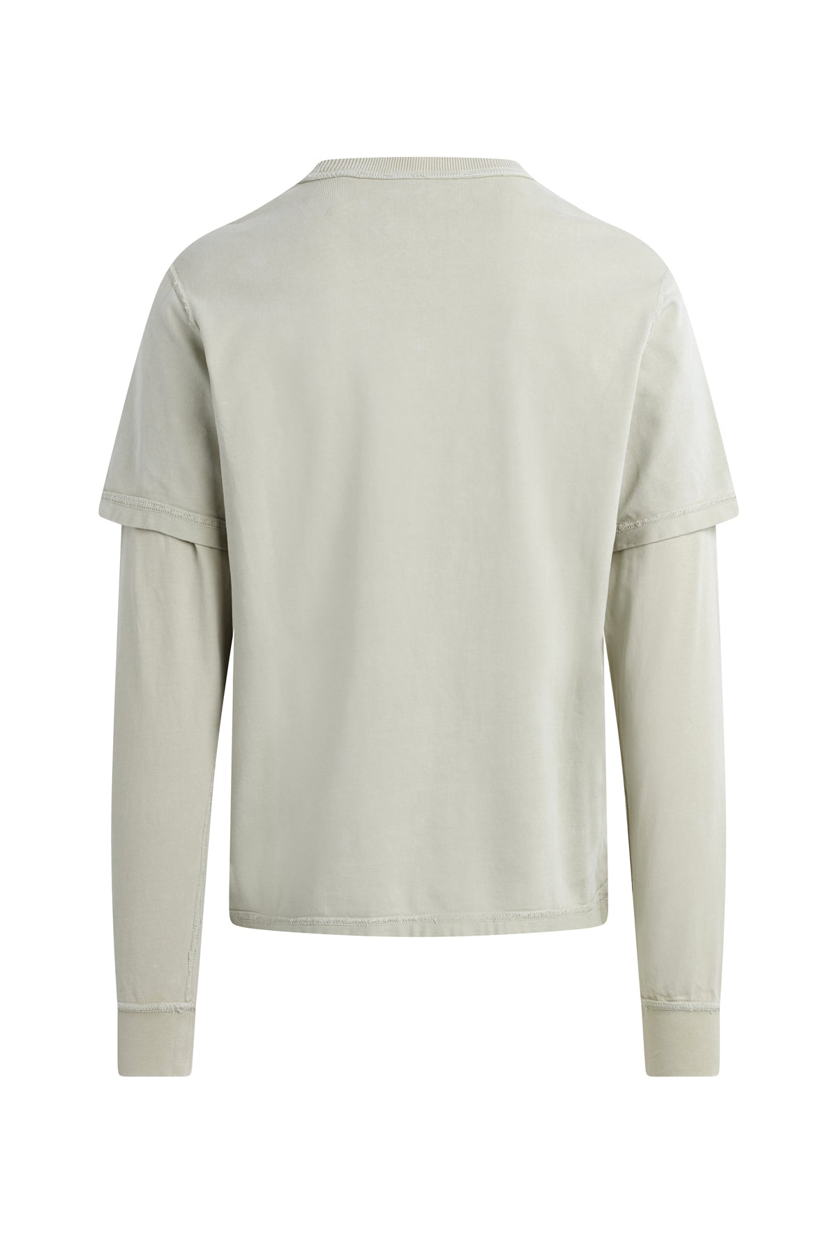 The Hybrid Long Sleeve Tee is made from heavyweight cotton jersey in Sandstone, an overdyed light tan. The style features the throwback combo of a relaxed-fit short sleeve tee layered over a lightweight cotton jersey long sleeve tee. -