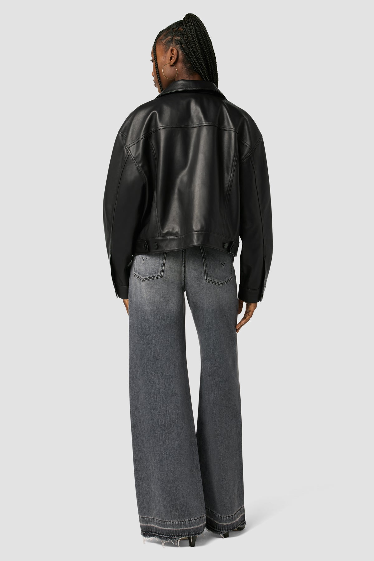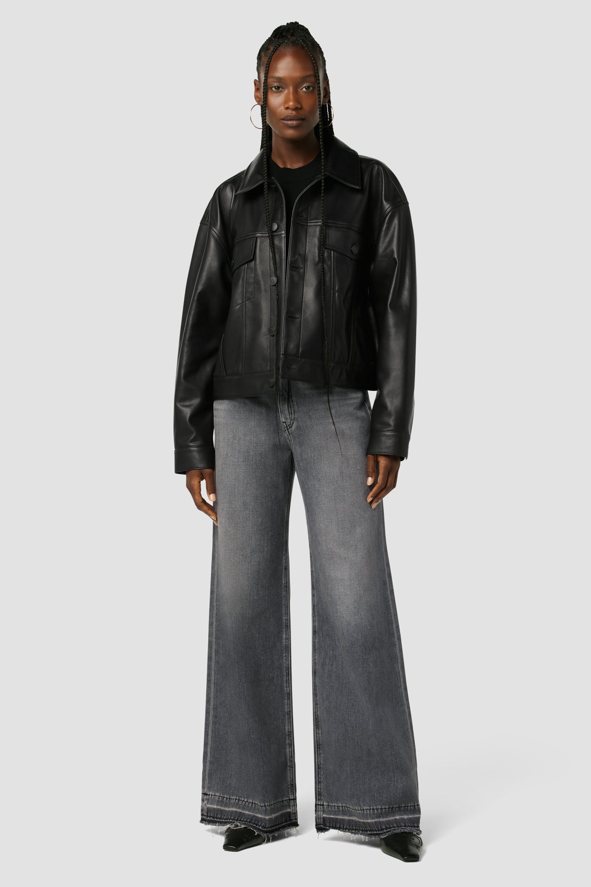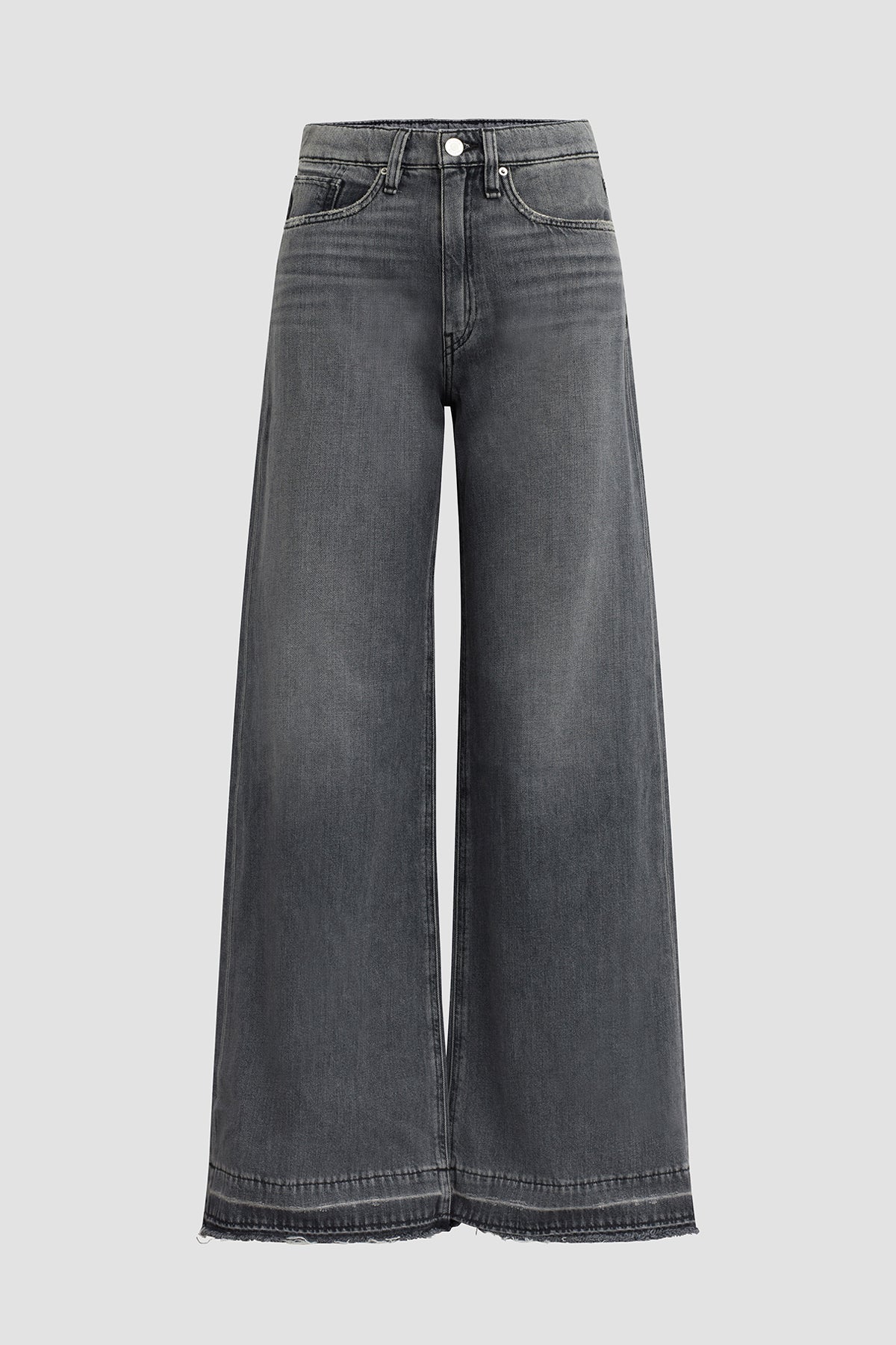 Our Jodie High-Rise Loose Wide Leg Jean in Destructed Black is cut for a roomy fit from non-stretch denim, expertly faded and finished with classic five-pocket details. -