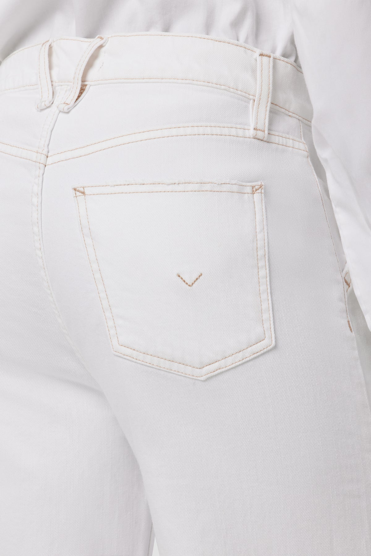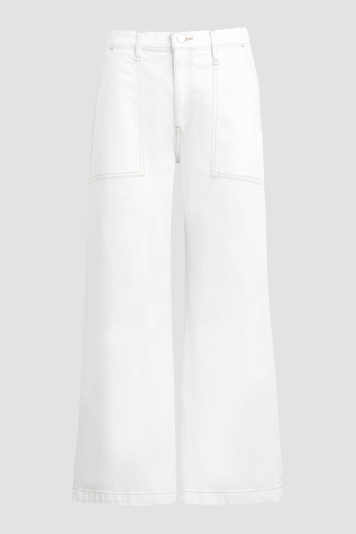 The Jodie High-Rise Wide Leg Crop Jean in White is cut for a roomy fit from our premium comfort stretch denim. Finished with patch pockets and contrast stitching. -