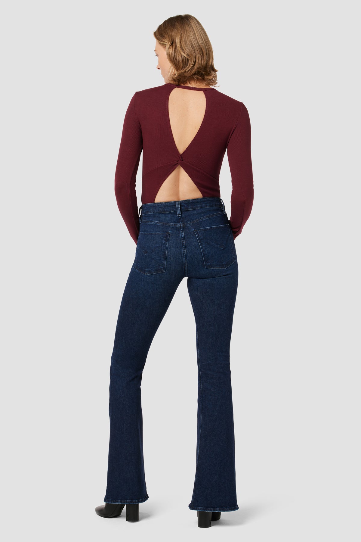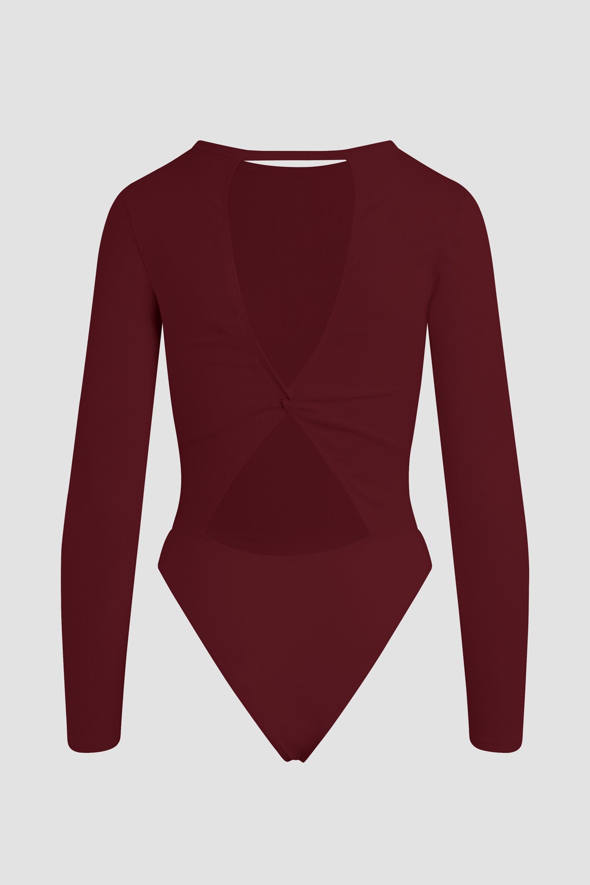 The Knot Back Bodysuit is part of our new Night Owl, The After Dark Collection. The long sleeve crewneck in Bordeaux has a bra-friendly back cutout with a comfortably-stretchy bodysuit styling. -