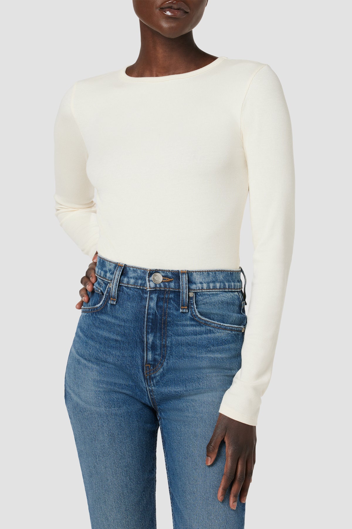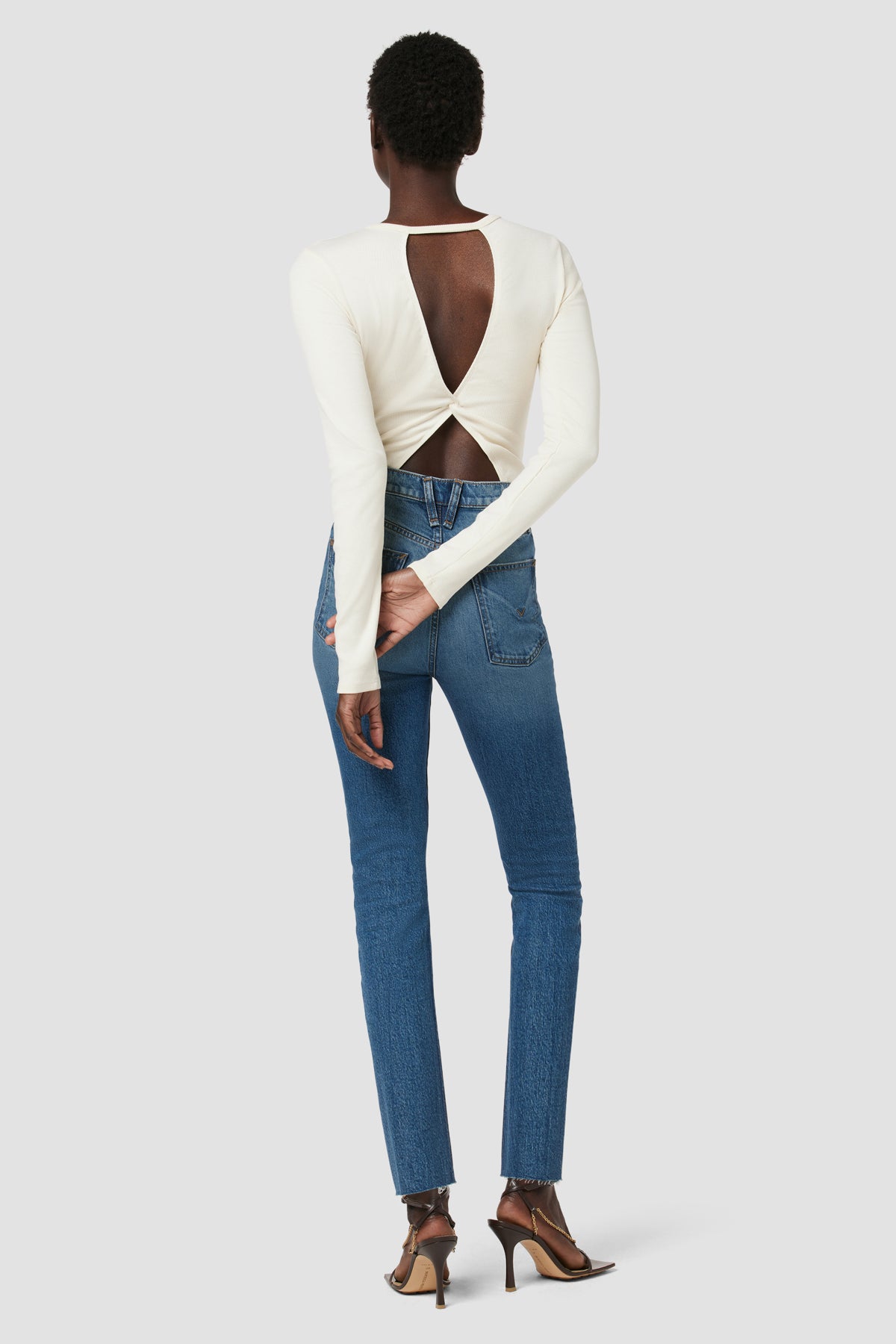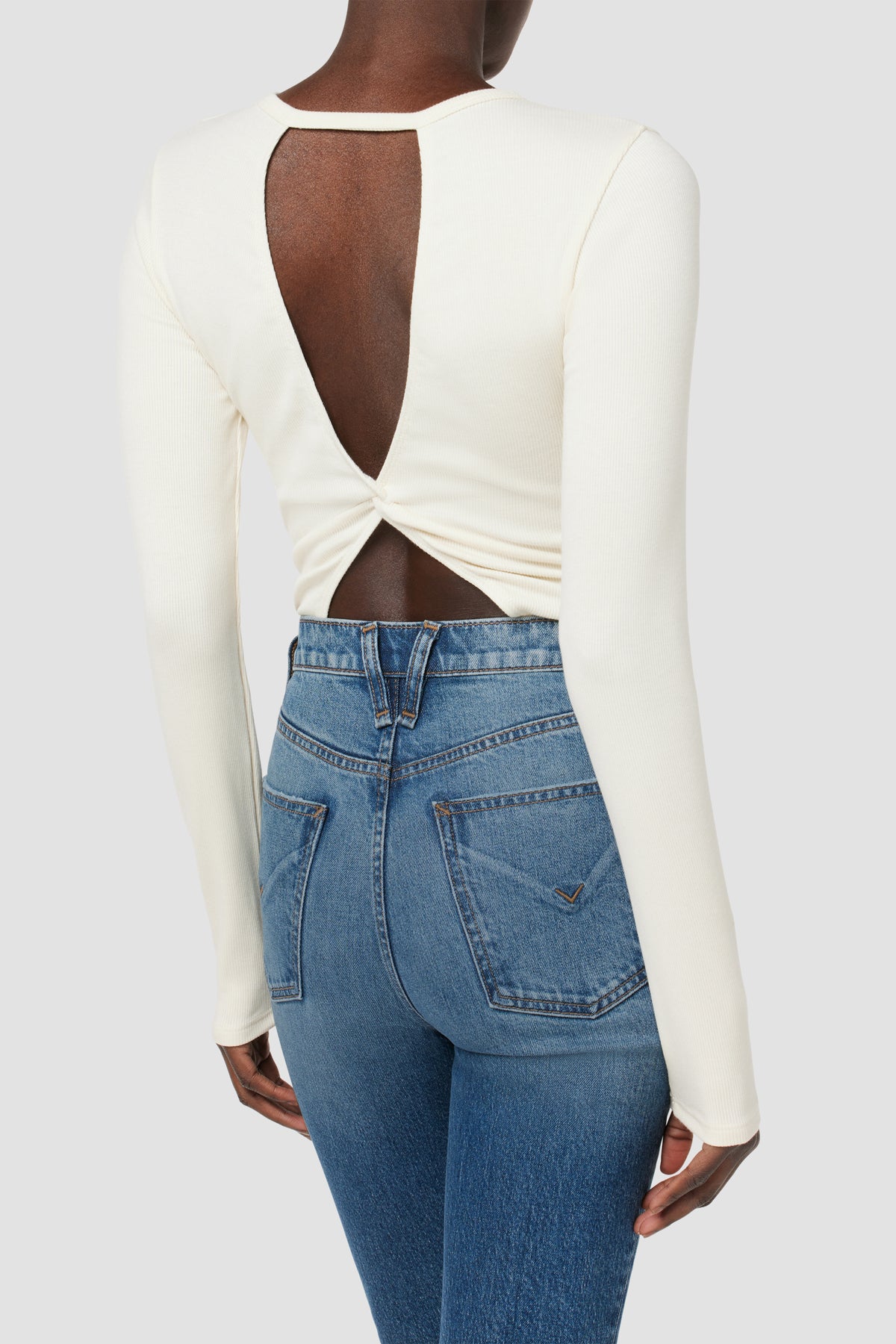 The Knot Back Bodysuit is part of our new Night Owl, The After Dark Collection. The long sleeve crewneck in Ecru has a bra-friendly back cutout with a comfortably-stretchy bodysuit styling. -
