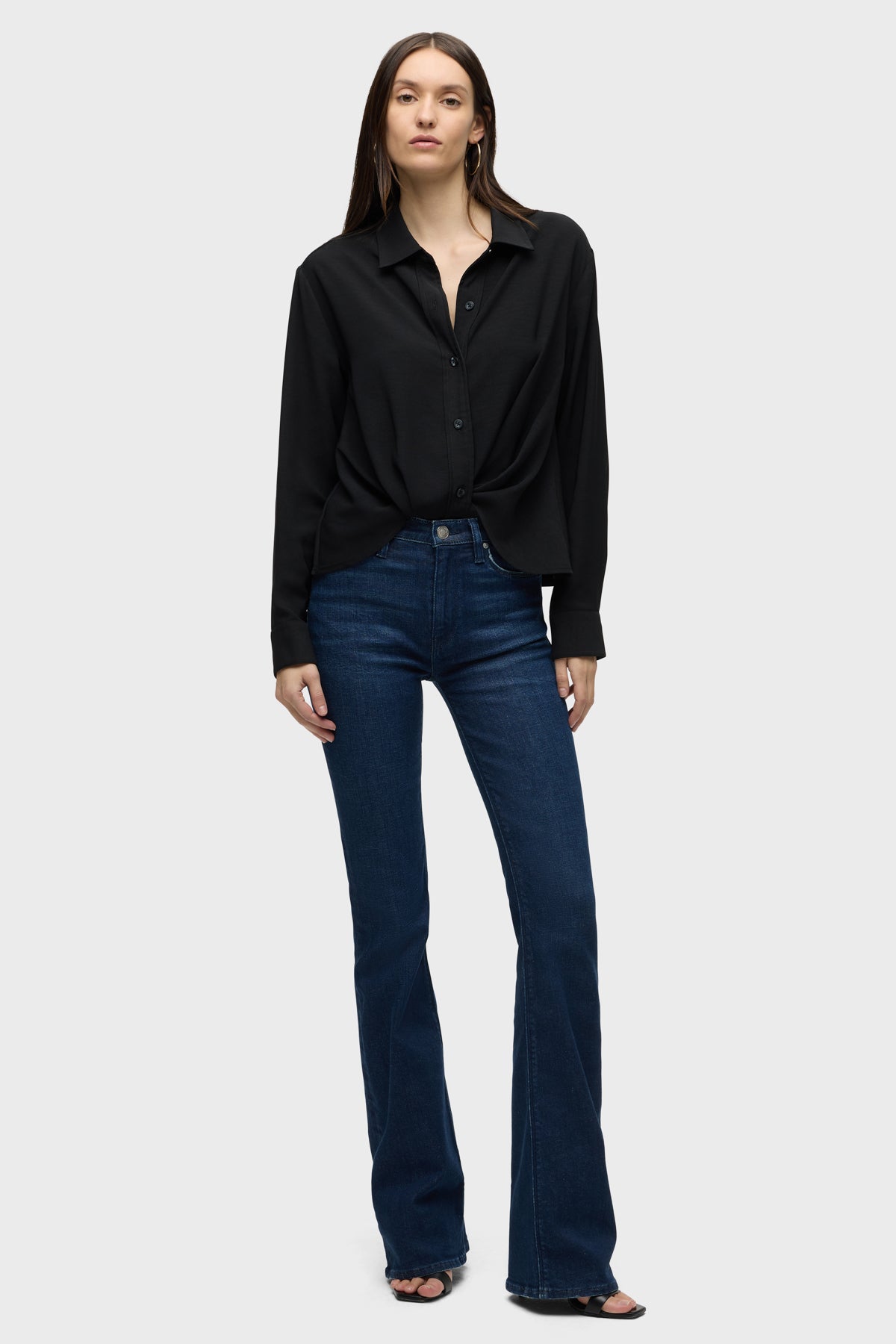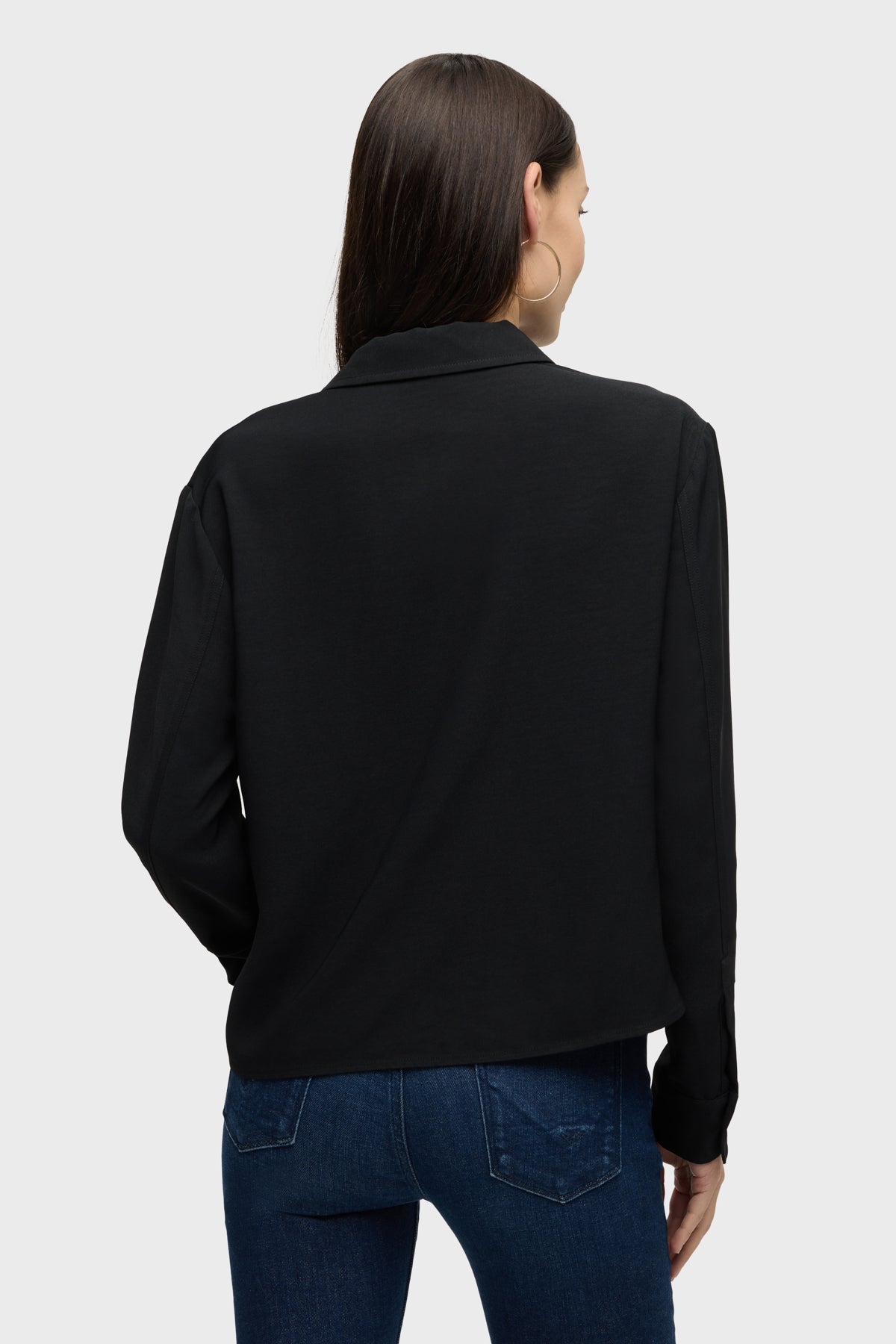 A versatile button down shirt for work or wherever, our Long Sleeve Knotted Button Down Shirt is cut from a luxe fabric. It features a pointed collar, button front and center-front knot for easy styling. -