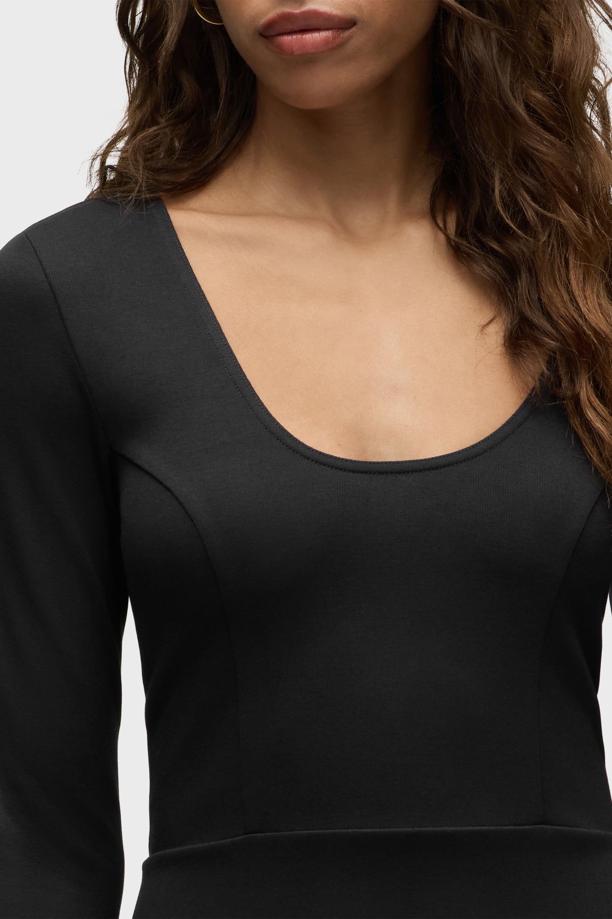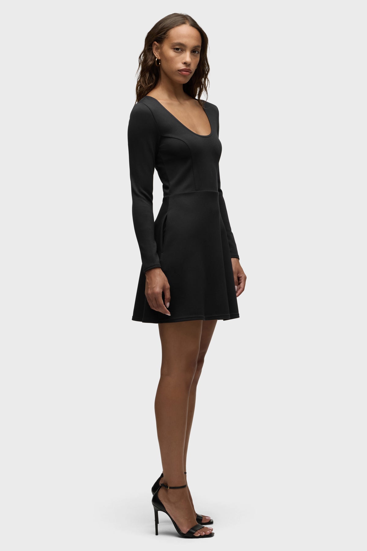 The fun and flirty Long Sleeve Skater Dress is cut from our new sculpting rib-scuba knit, a soft and flexible feel with every move. It features a midi length, long sleeves, side pockets and a back strap across the shoulders for a secure fit. -