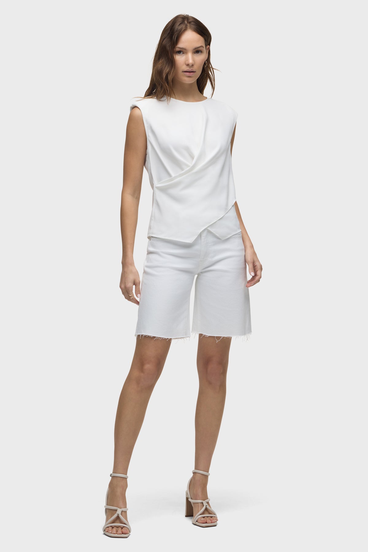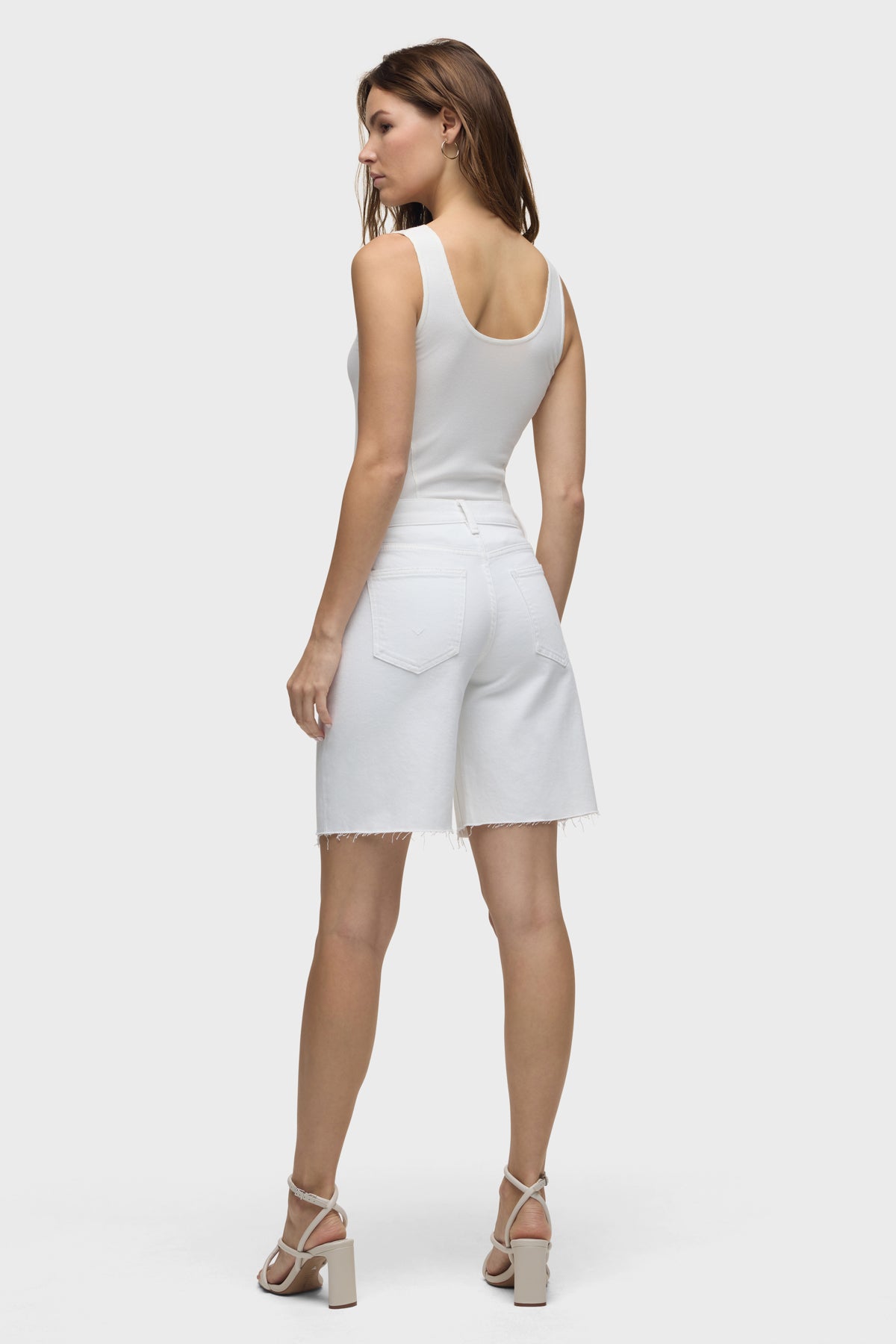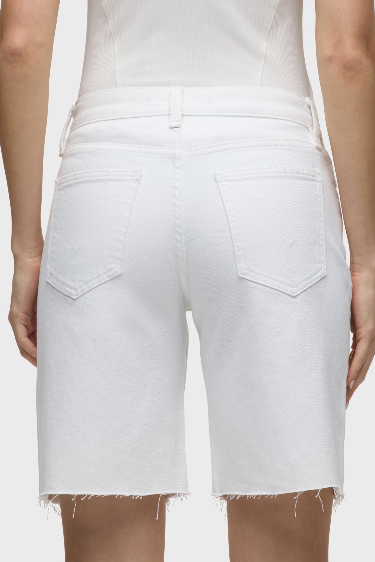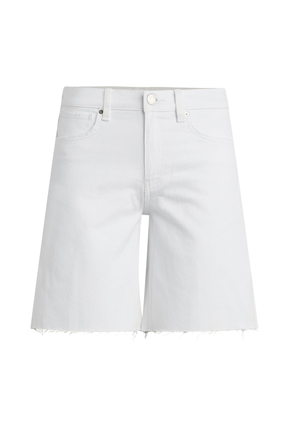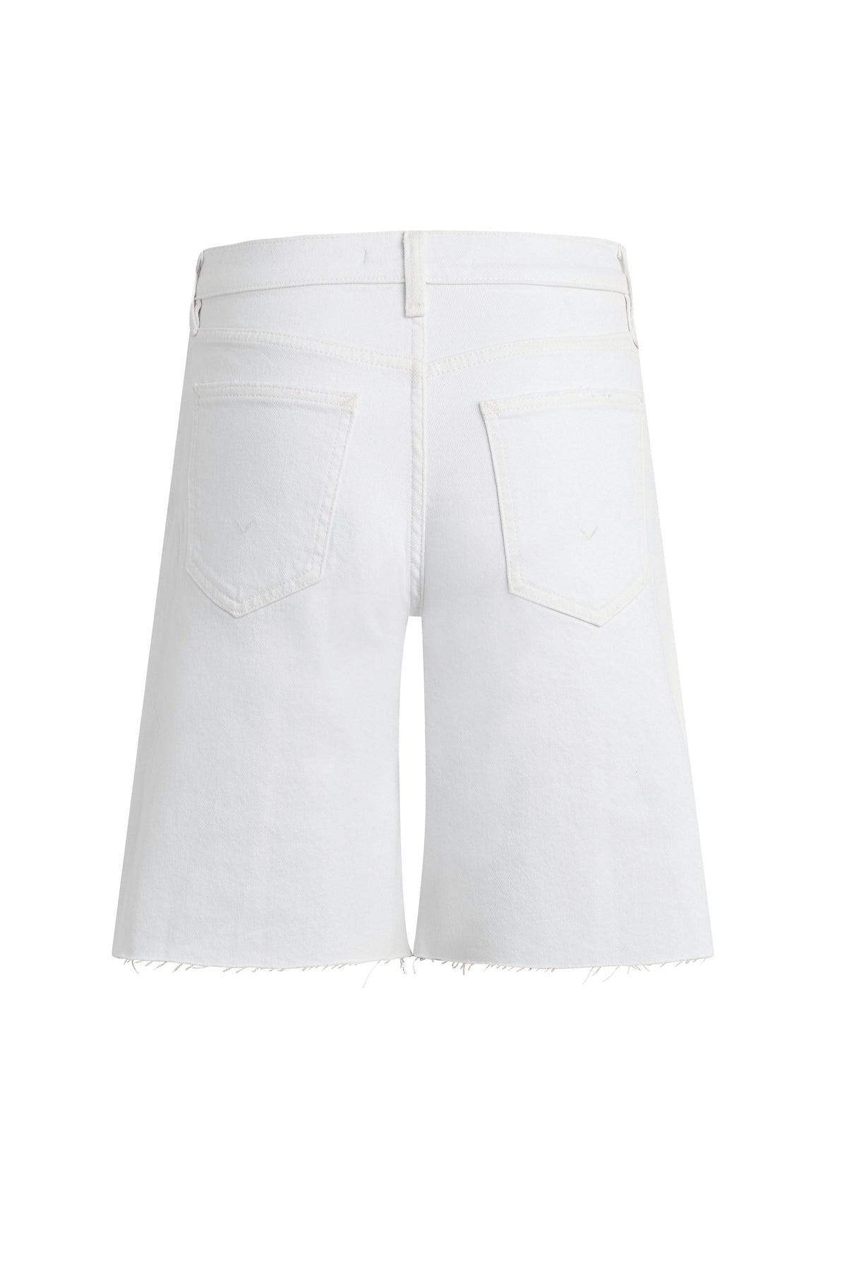 The London Low-Rise Long Short in White is our latest five-pocket short. This casual short has a relaxed, dropped fit and a 9" inseam with a raw hem. This pair is made of premium comfort low-stretch denim in a clean white shade. Size up for a looser fit. -