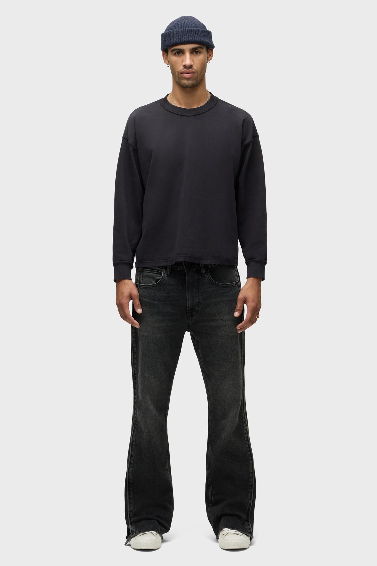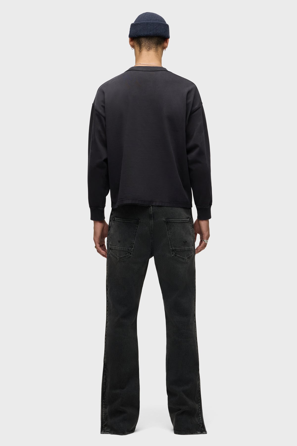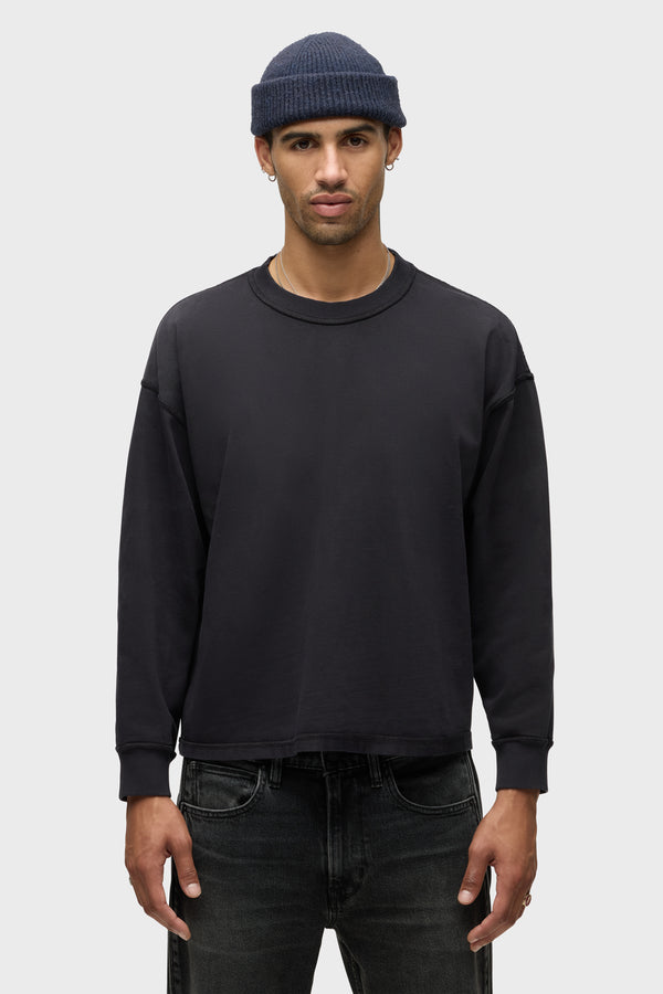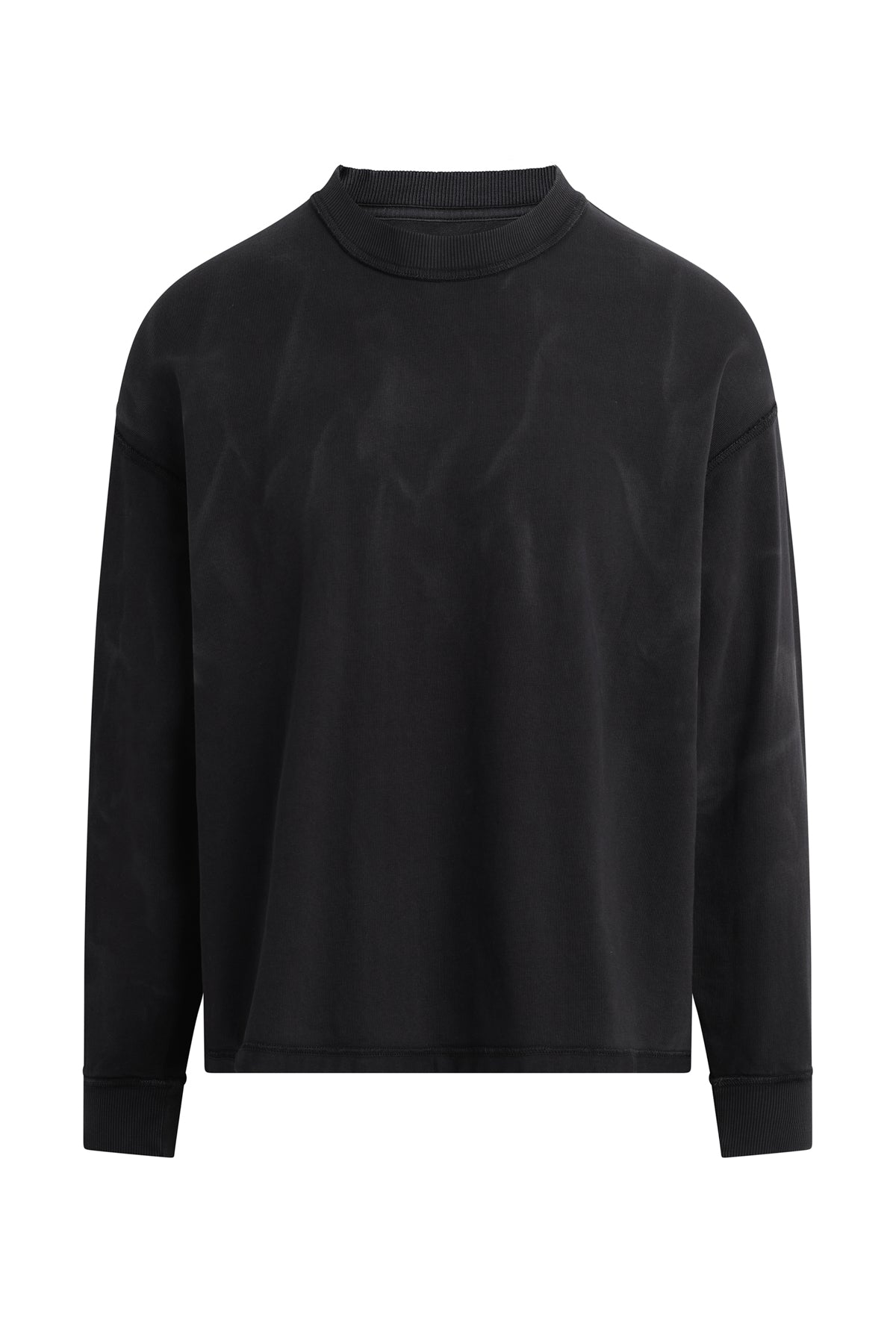 Our new Long Sleeve Heavy Weight Tee in Forest Black is made from 100% cotton with a relaxed fit. The crew neckline and cuffs are ribbed and the tee is finished with reverse stitch details. Overdyed to give a soft feel. -