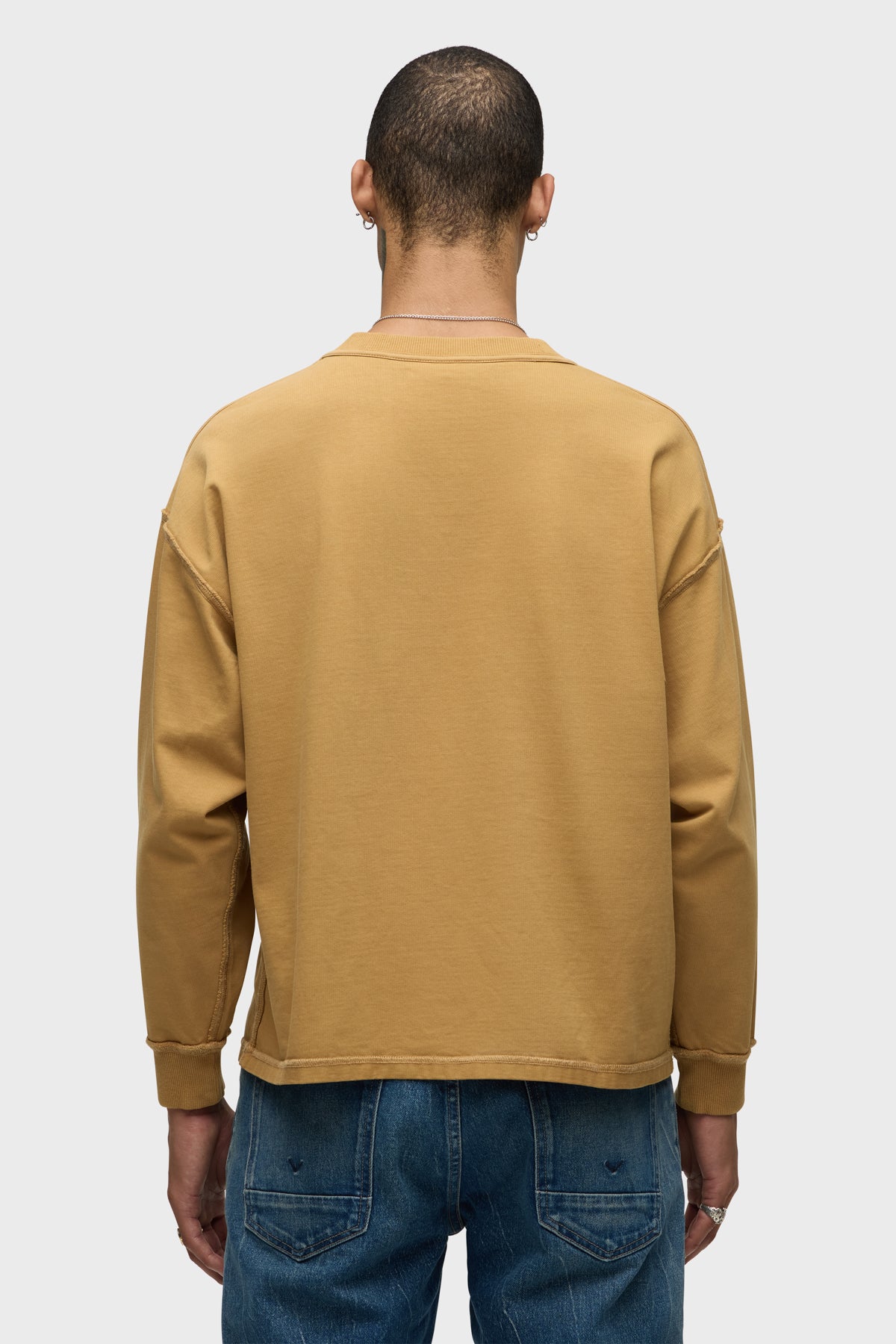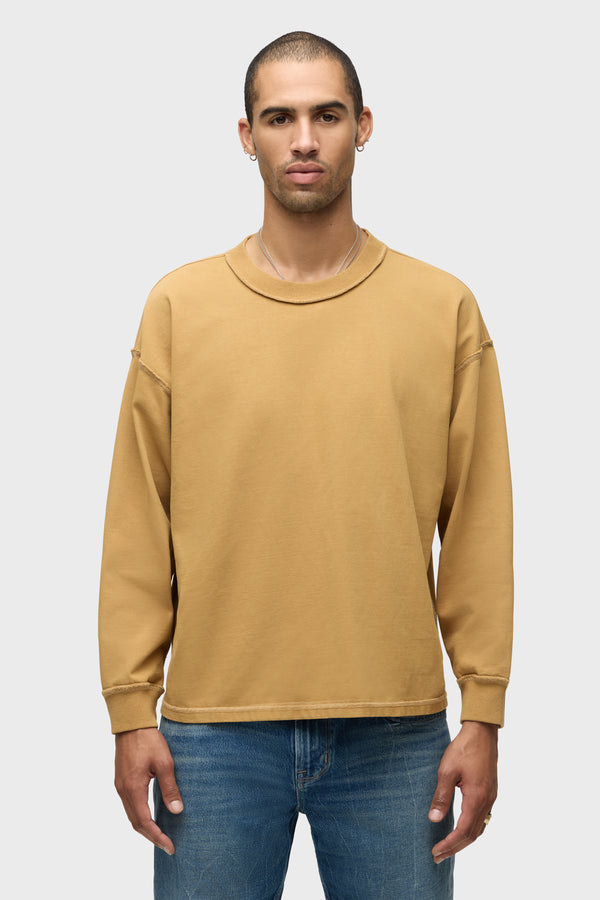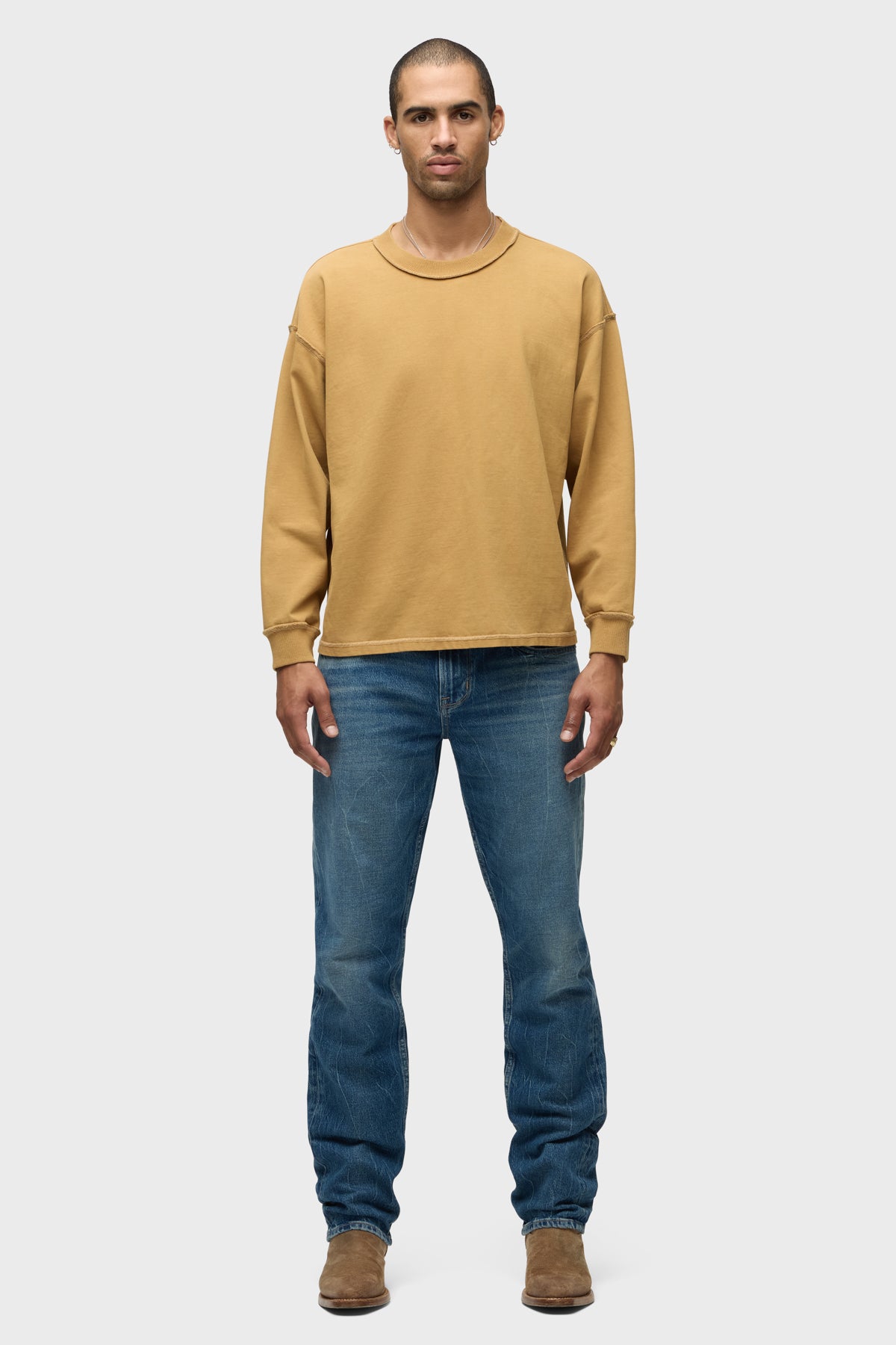 Our new Long Sleeve Heavy Weight Tee in Rust is made from 100% cotton with a relaxed fit. The crew neckline and cuffs are ribbed and the tee is finished with reverse stitch details. Overdyed to give a soft feel. -
