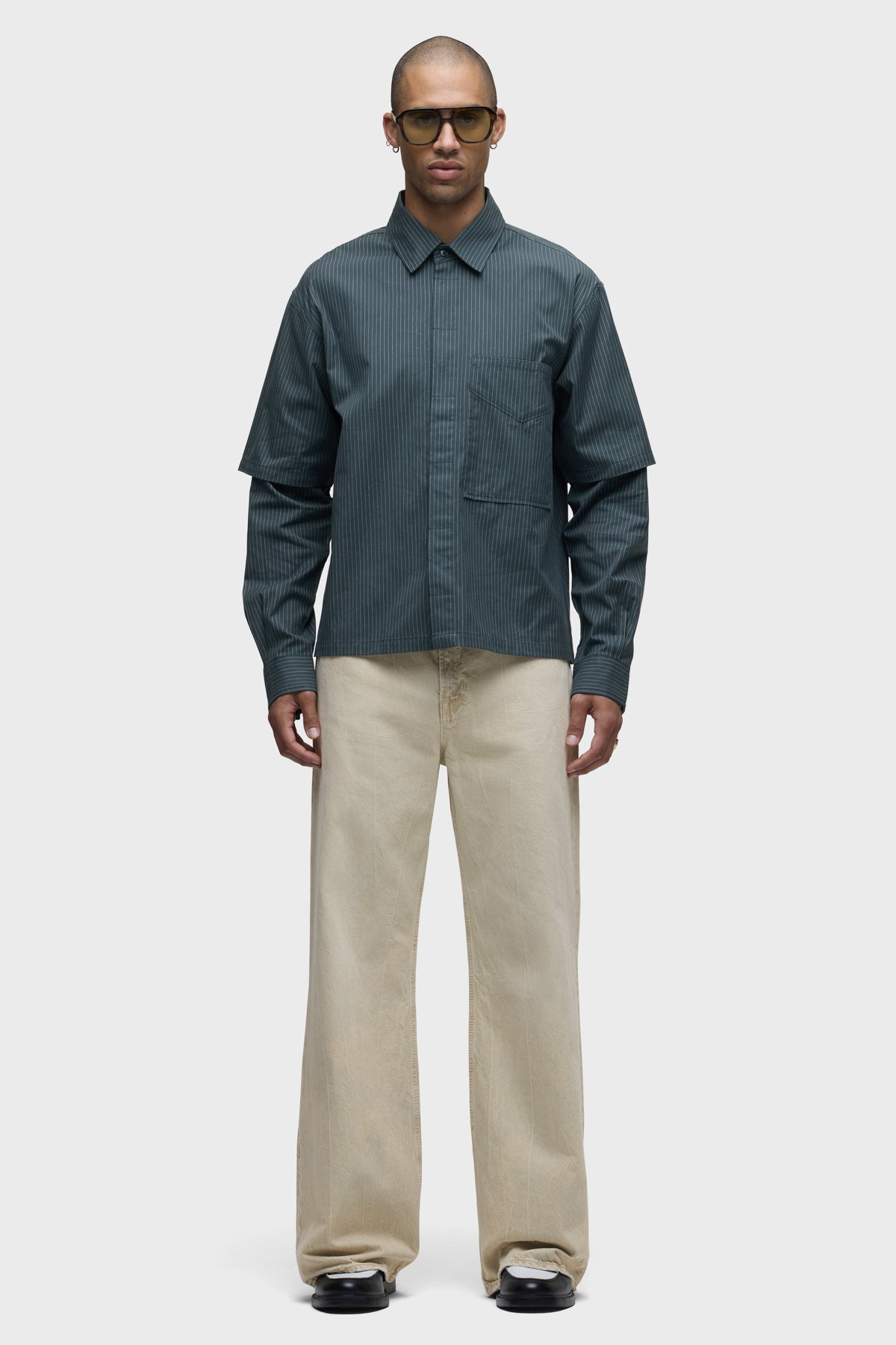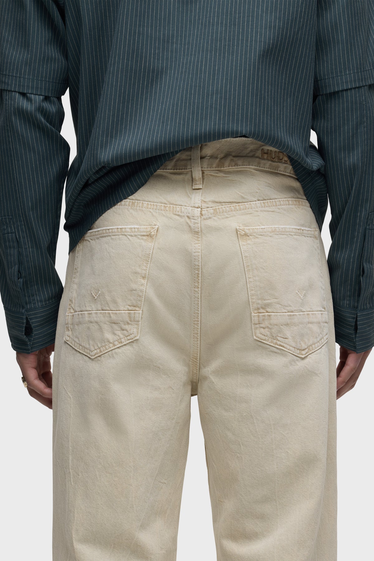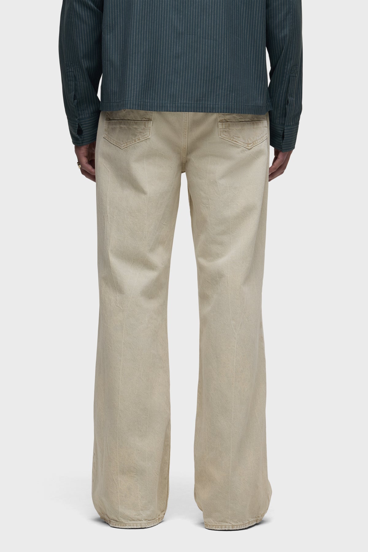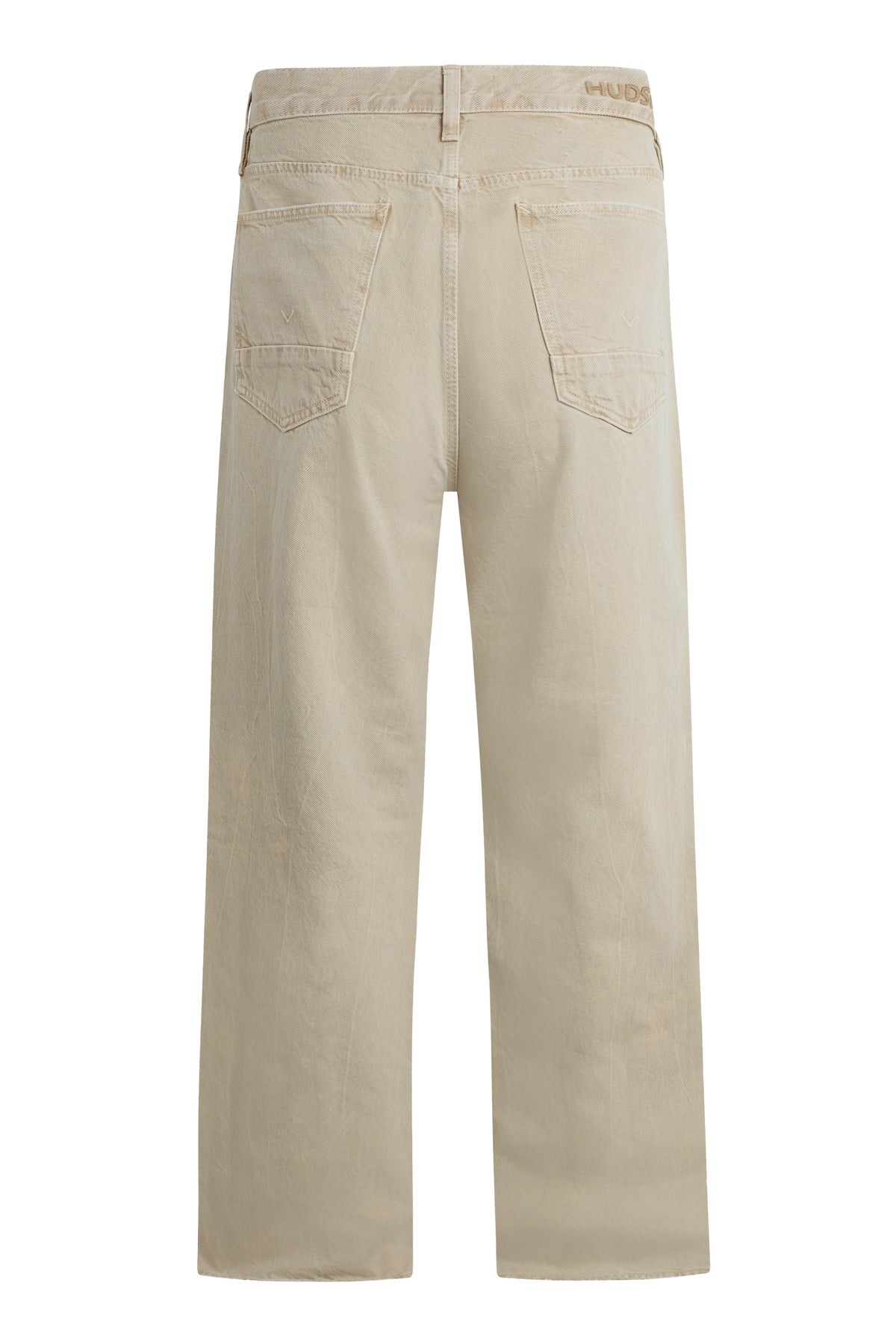 With a 90s grunge look and feel, our Luca Wide Leg Jean in Astor has a loose fit, mid-rise waist and a wide cut through the leg. The distressed light tan wash has a lived-in look, and it is finished with classic five-pocket detailing. -