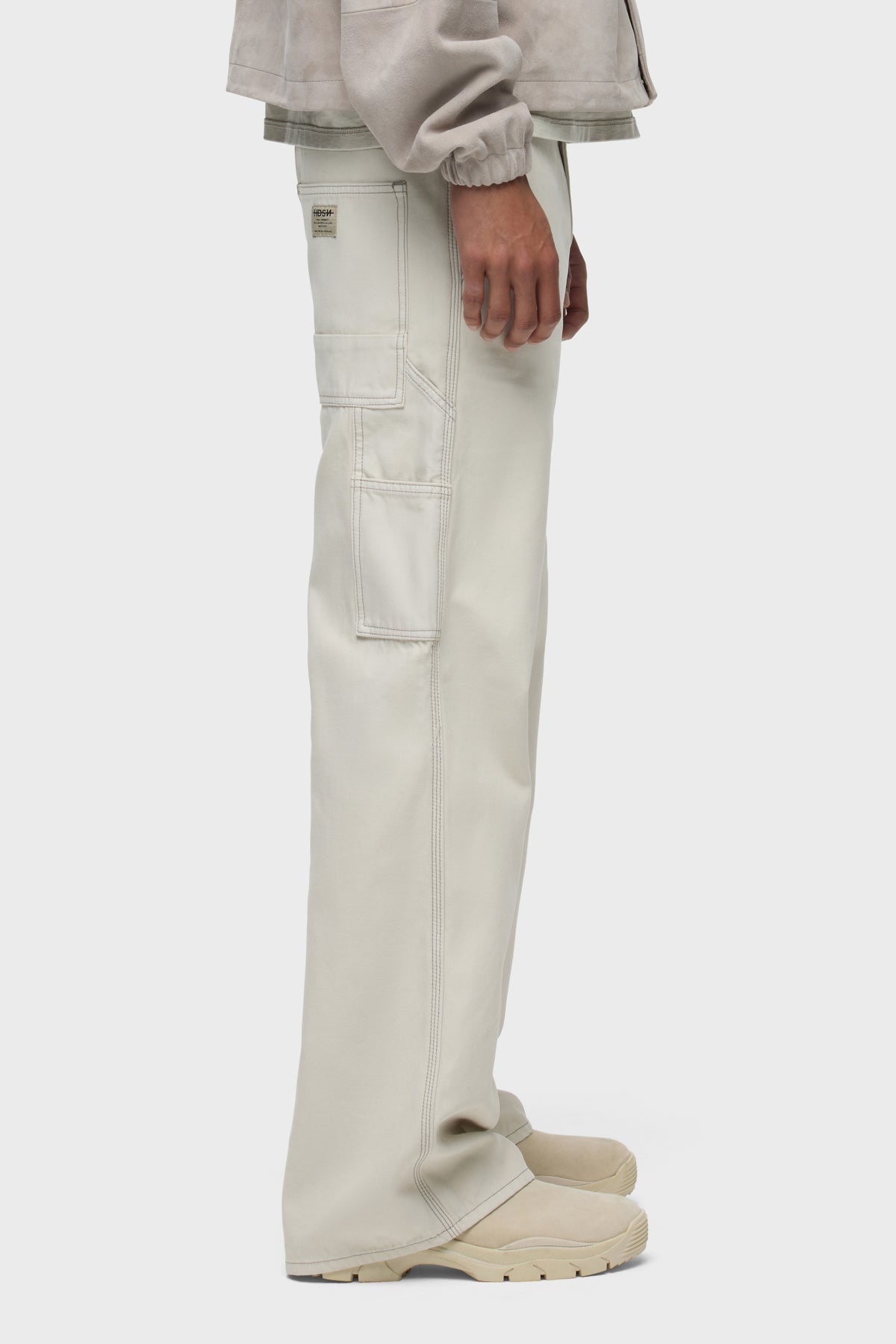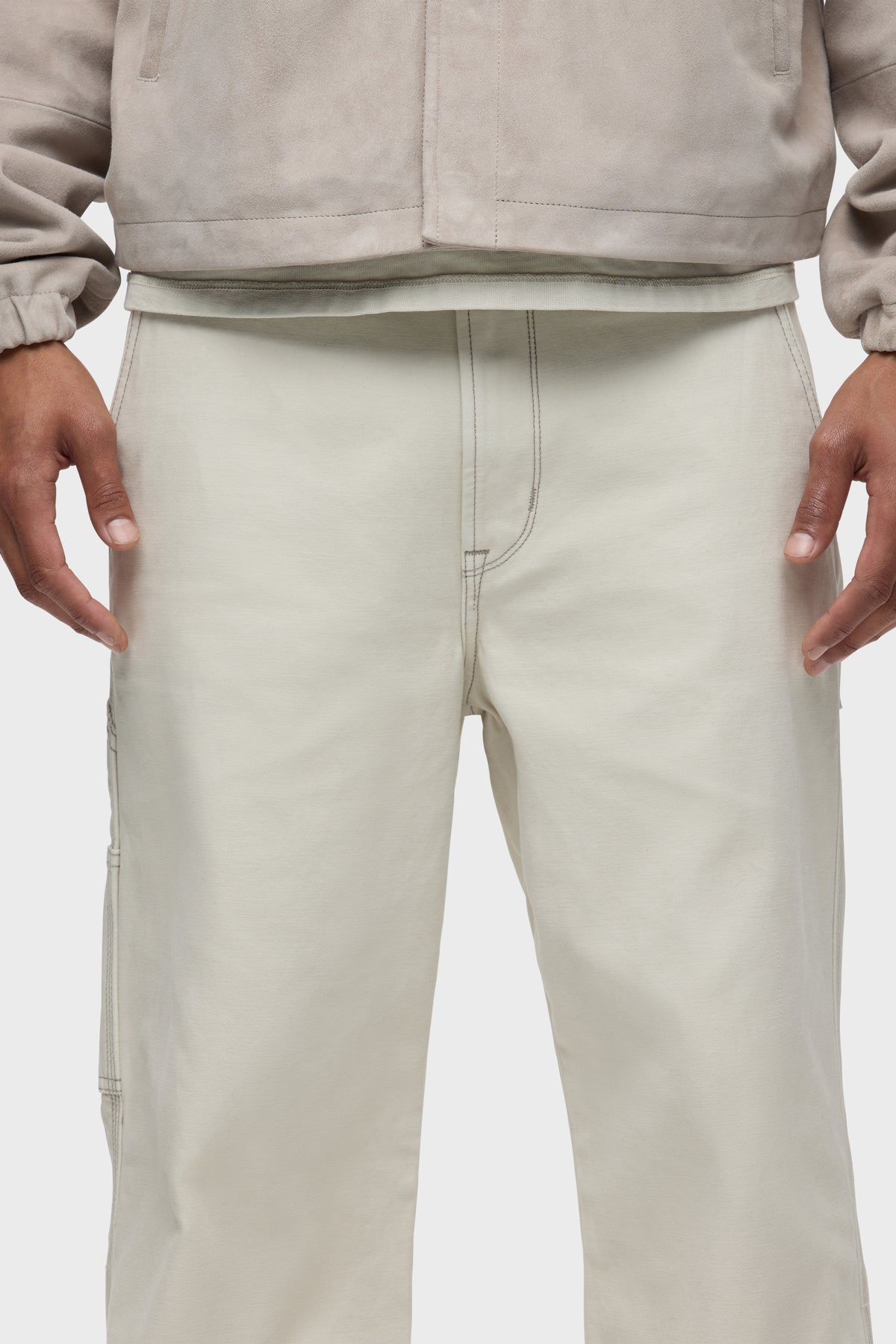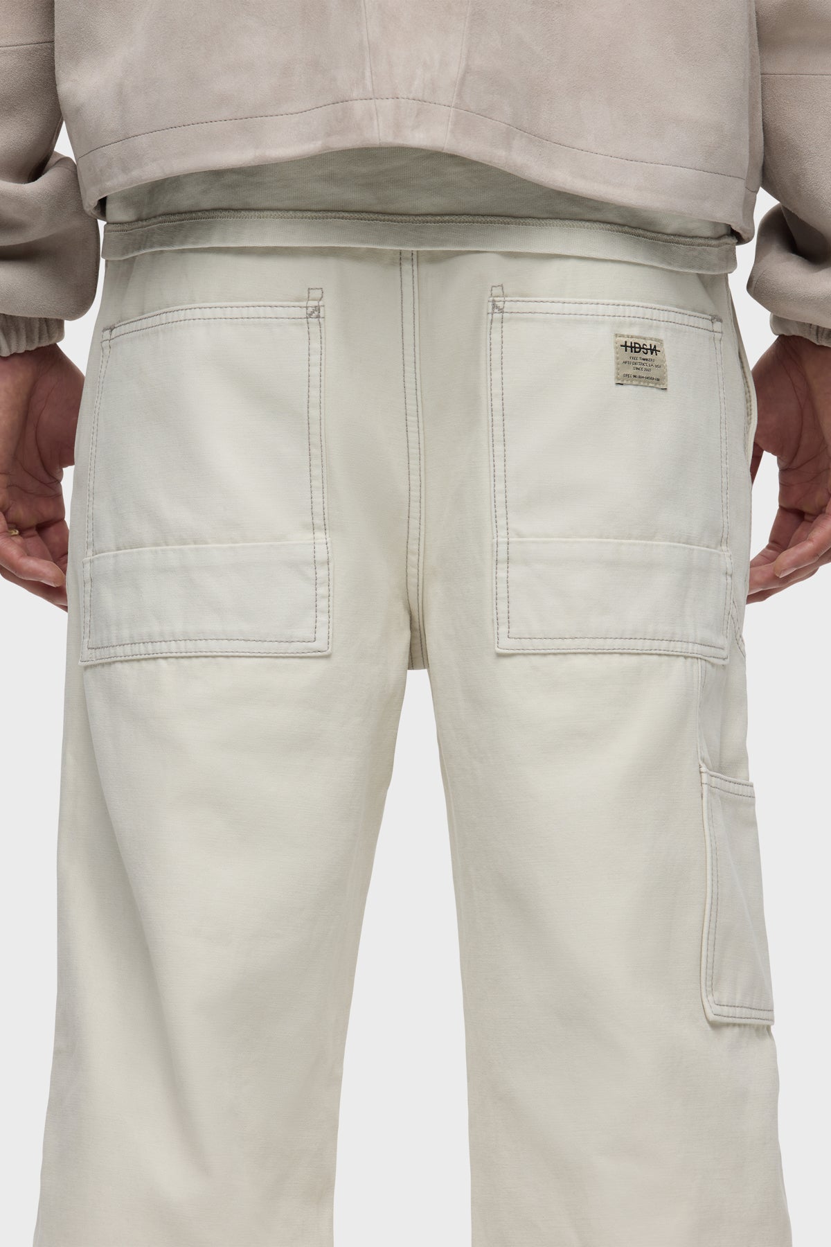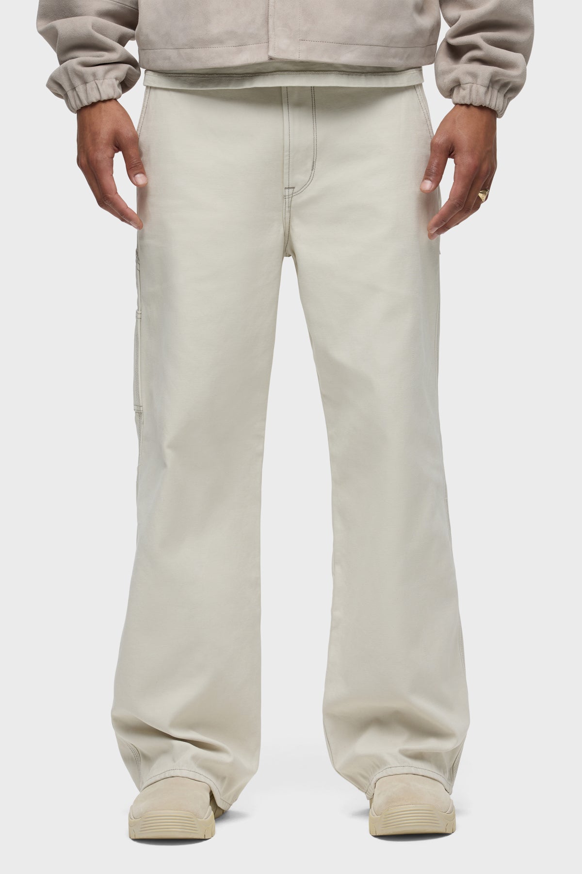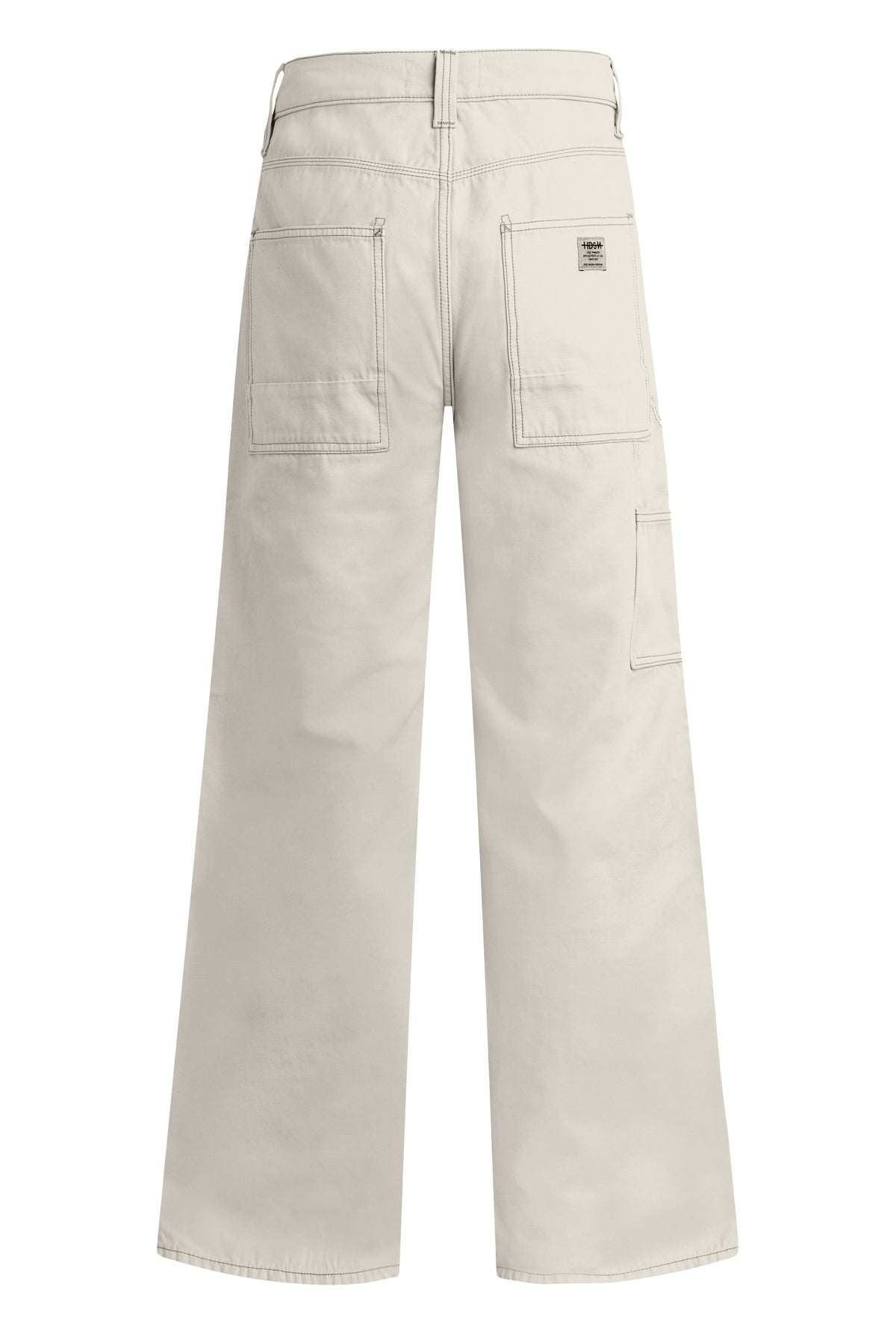 Our Luca Wide Leg Carpenter Jean is a 90s-inspired fit with a high rise and an easy, loose wide leg. Silver Birch is an overdyed cream wash in a cotton moleskin that holds its structure. The pair is finished with slash pockets, back patch pockets and contrast topstitching. -
