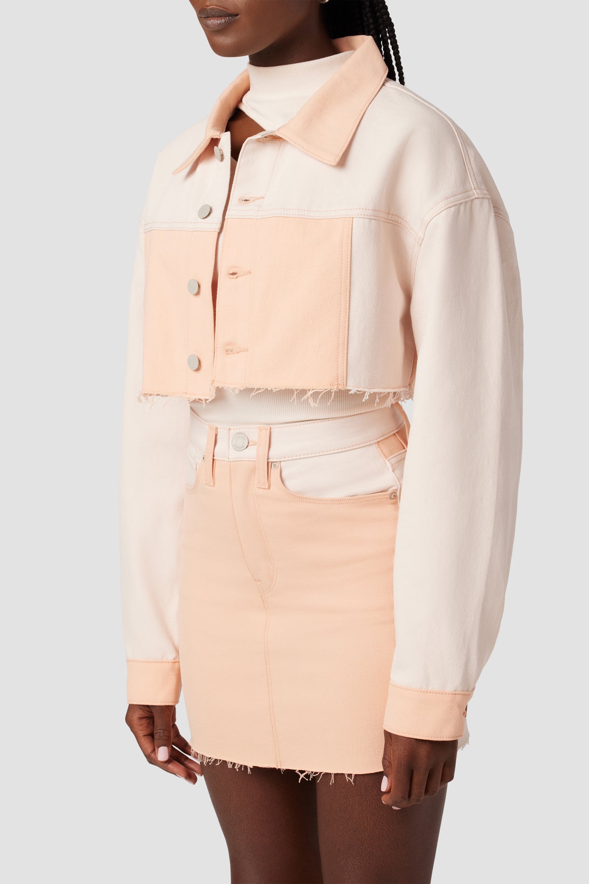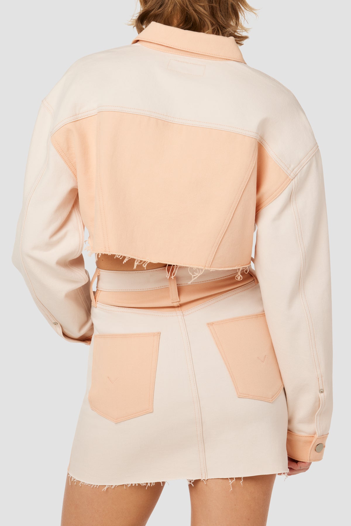 Our Micro Cropped Jacket in Pink/Sand is crafted from our super-soft cotton and finished with a raw hem. -