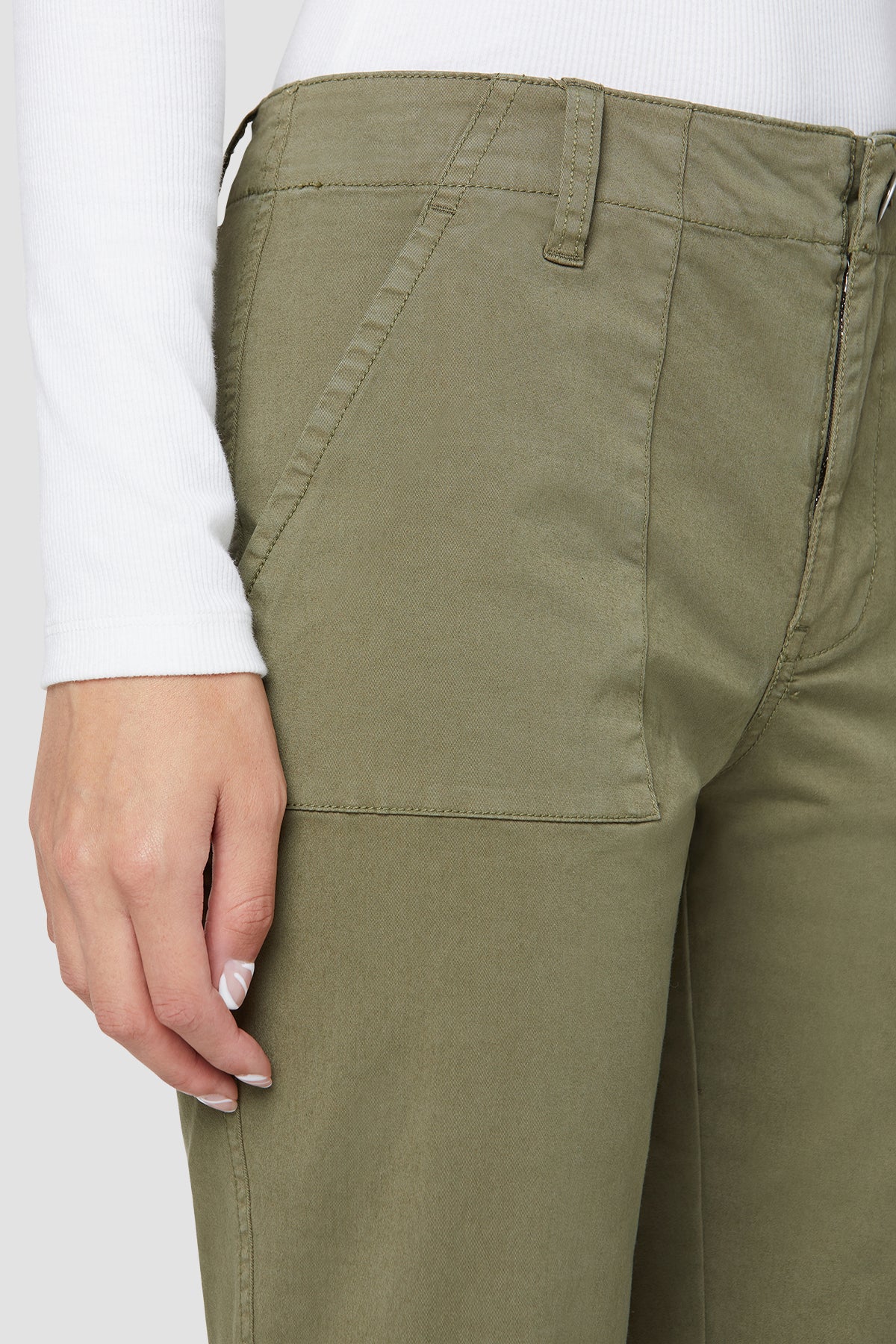Our Mid-Rise Utility Chino is cut with a medium rise and slim-straight leg from a stretchy cotton twill in Dried Herb. Complete with stitched patch pockets for a workwear-inspired look. -