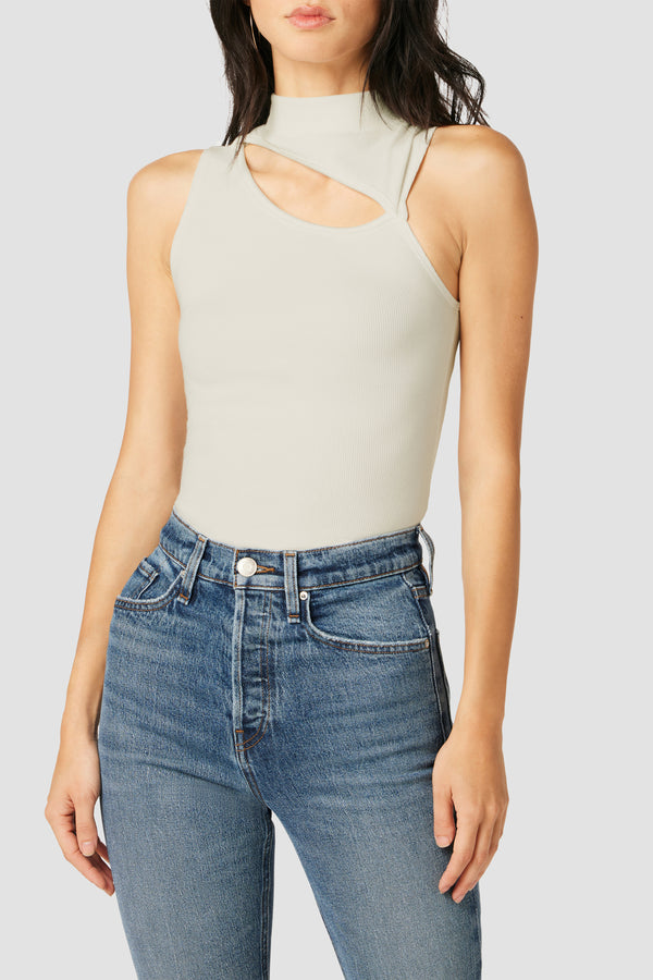 Our Mock Neck Cut Out Tank is the perfect base layer staple, made from premium rib knit fabric in Ecru.