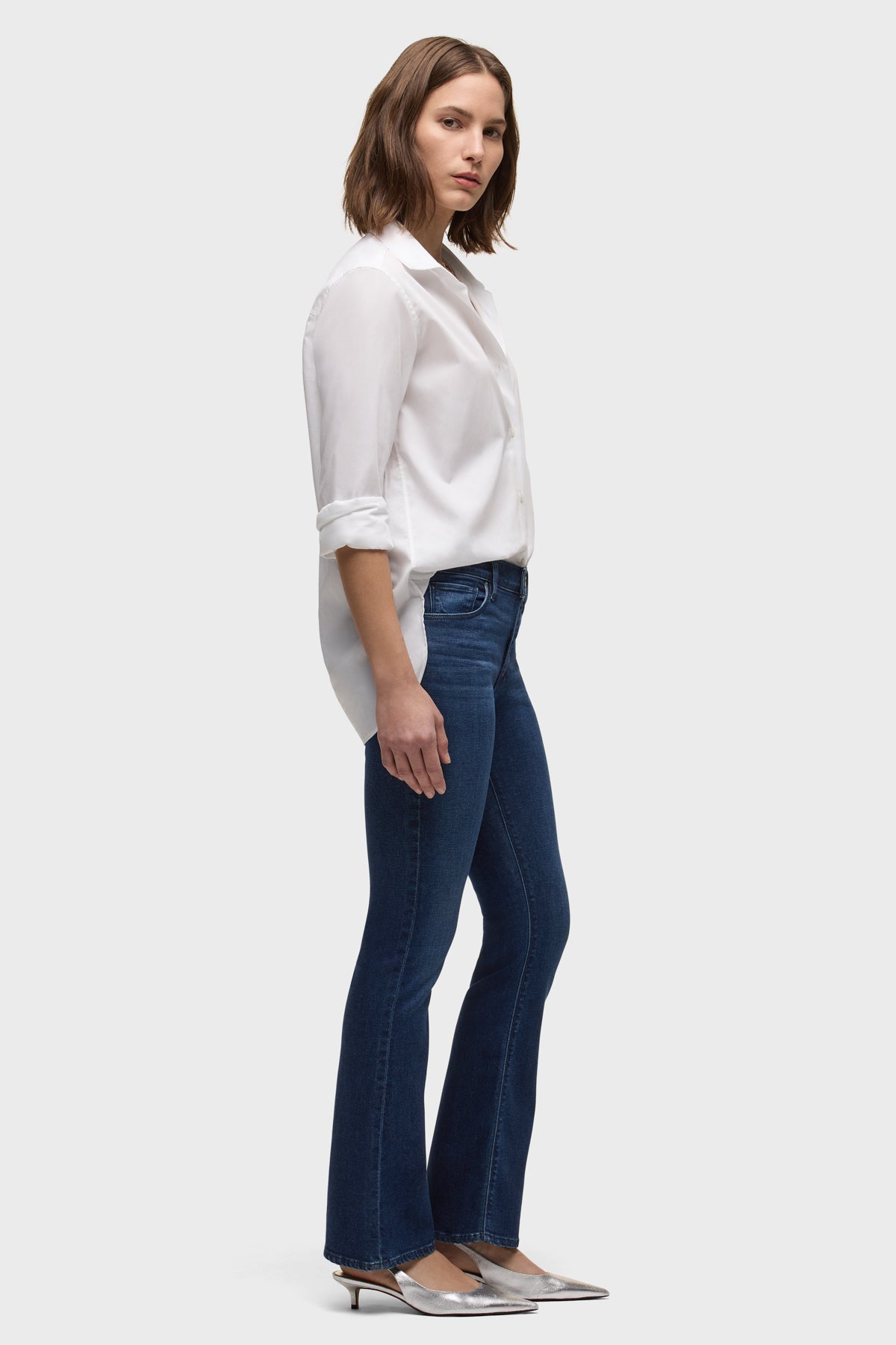 Our Nico Mid-Rise Bootcut Barefoot Jean in Revival is cut in a universally flattering silhouette from premium comfort stretch denim in a dark indigo wash. Designed to hit at the ankle bone, it has a 30" inseam and is finished with a clean hem and classic five-pocket detailing. -