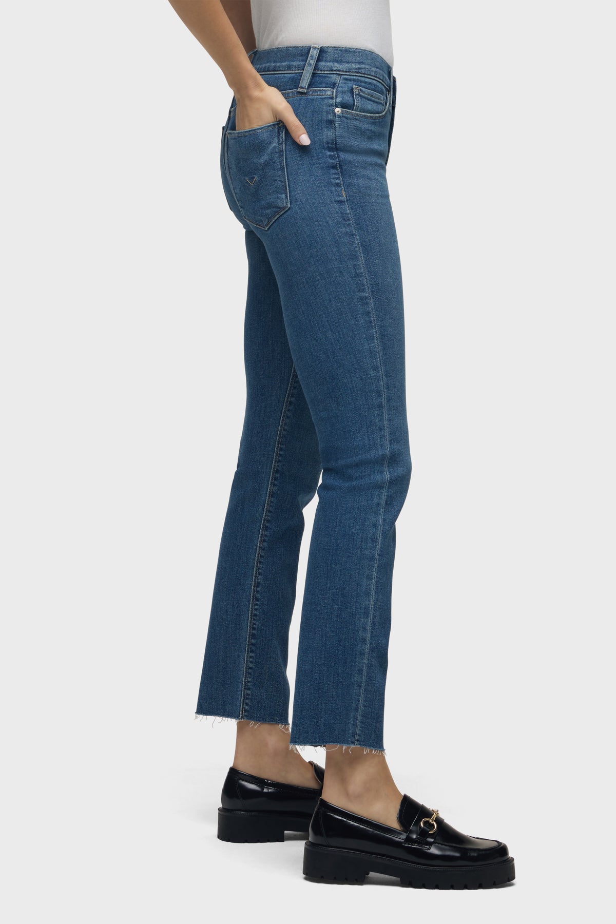 Our Nico Mid-Rise Straight Ankle Jean in medium Penny wash is cut in a universally flattering silhouette from premium stretch denim. Cropped for the ideal ankle length, it’s finished with classic five-pocket details, edge grinding and a raw hem. -