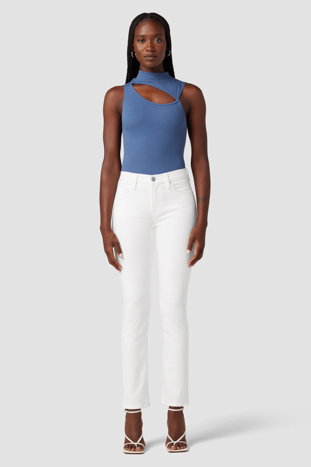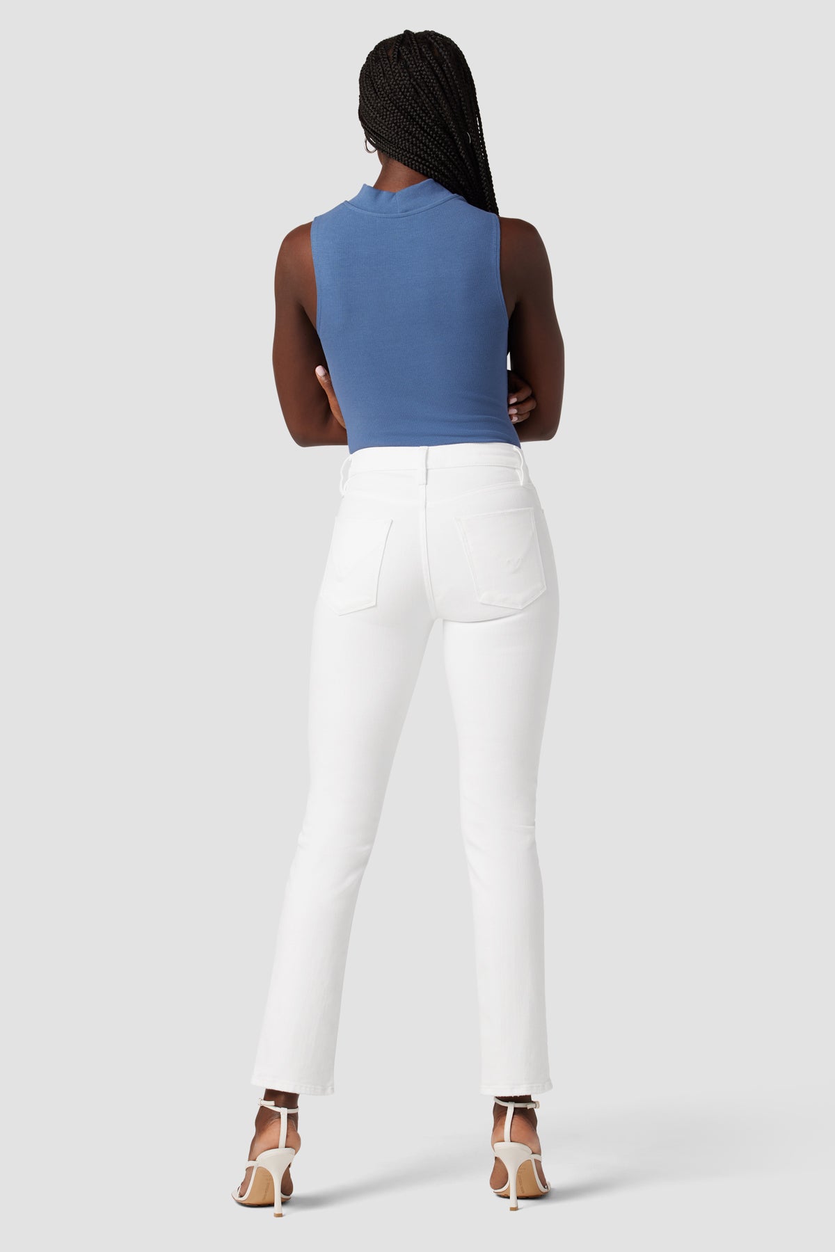 Our Nico Mid-Rise Straight Ankle Jean in White is cut in a universally flattering silhouette from premium super stretch denim. Cropped for the ideal ankle length, it’s finished with classic five-pocket details, grinding, and a clean hem. As part of our Eco-Forward initiative, this garment is made with eco-friendly materials and innovative technology to soften our impact on Earth. -