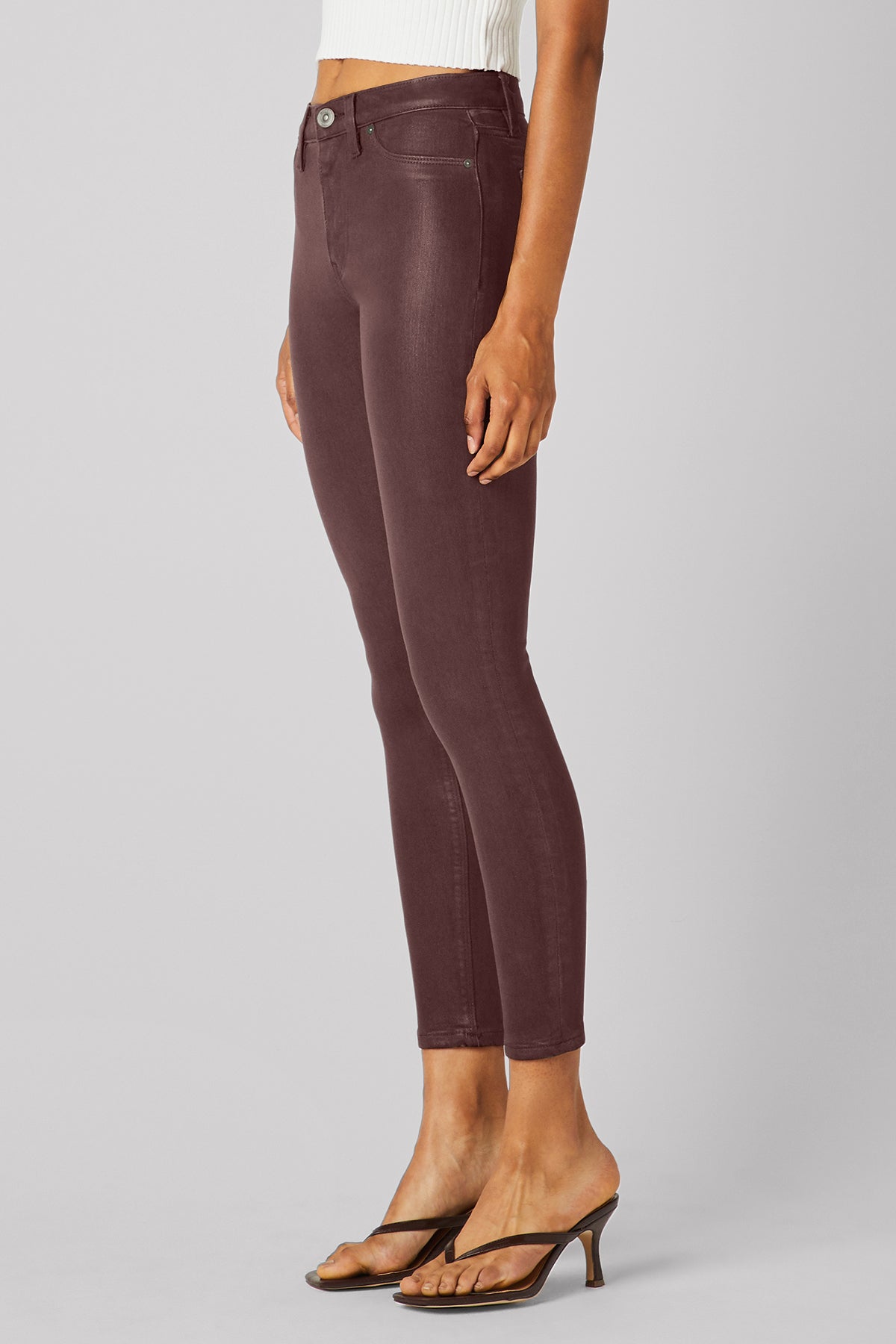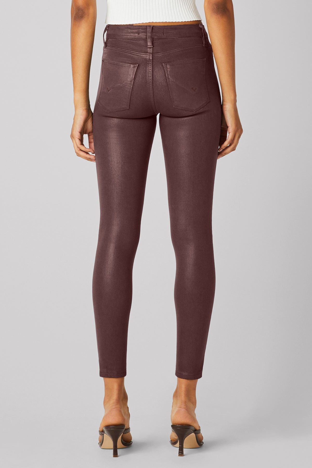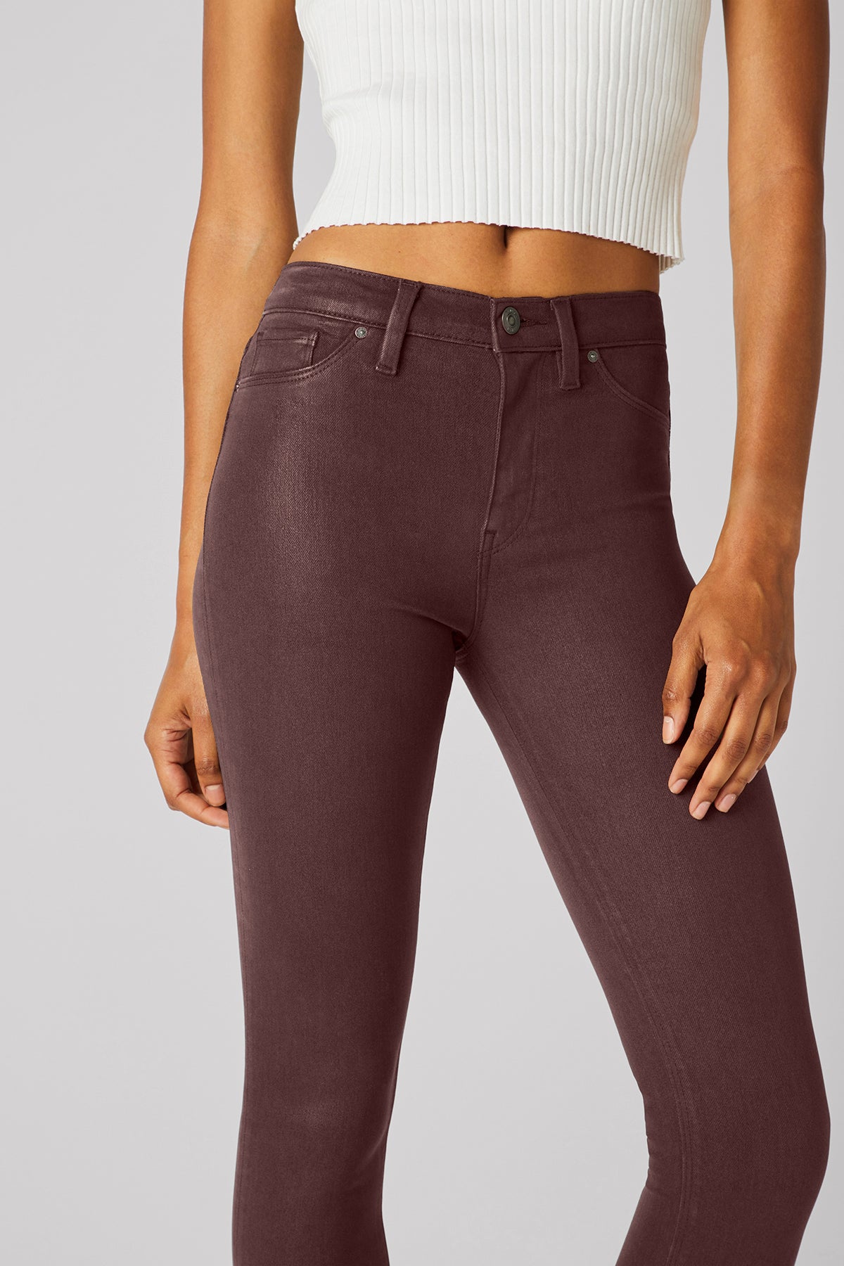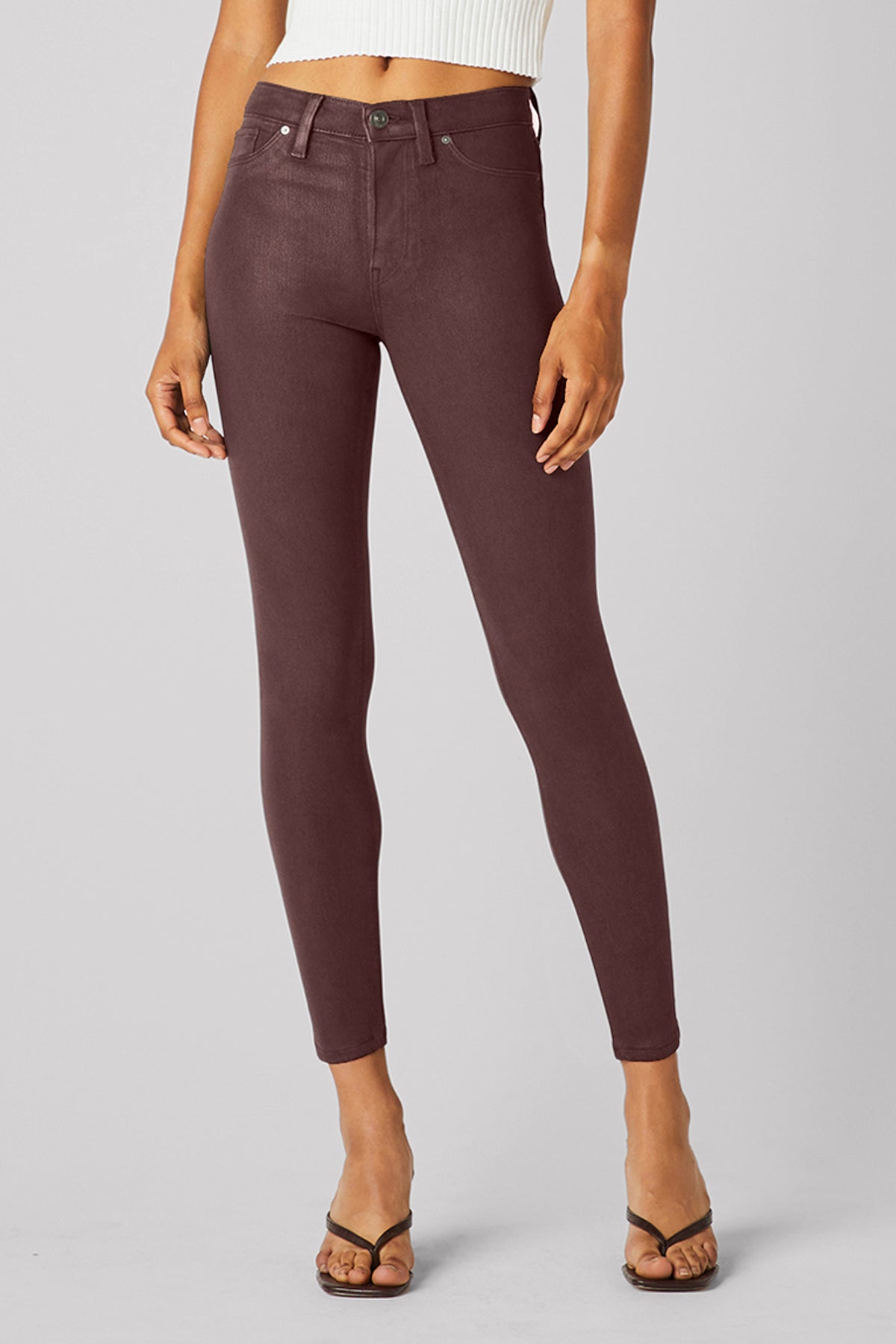 Cropped for the ideal ankle length, our Nico Mid-Rise Super Skinny Ankle Jean in High Shine Brick is made from premium stretch denim specially treated with a glossy wax coating. Body-hugging fit. Sits at the natural waist. Complete with a finished hem and classic five-pocket details. -
