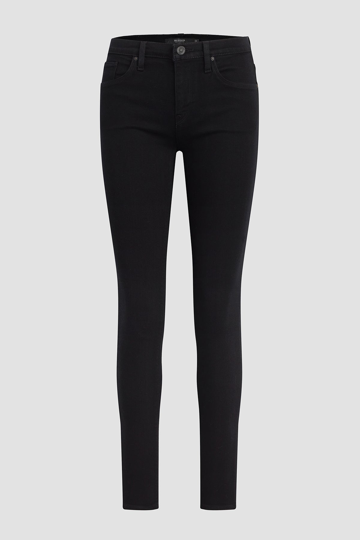 Our Nico Mid-Rise Rise Super Skinny Jean in Black is crafted from soft, super stretch denim designed to hold its shape with extended wear. Holds-you-in fit. Slim at the ankle. Sits at the natural waist. -