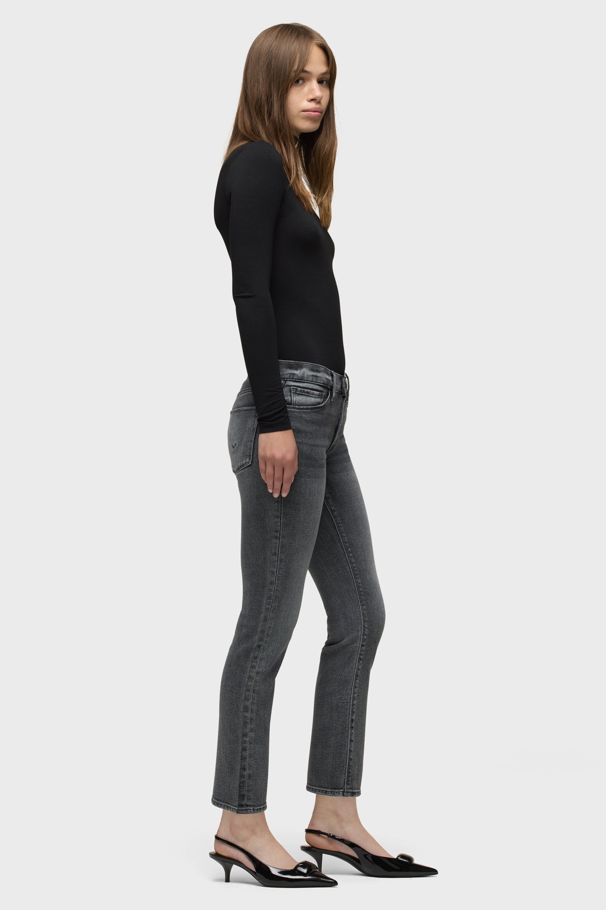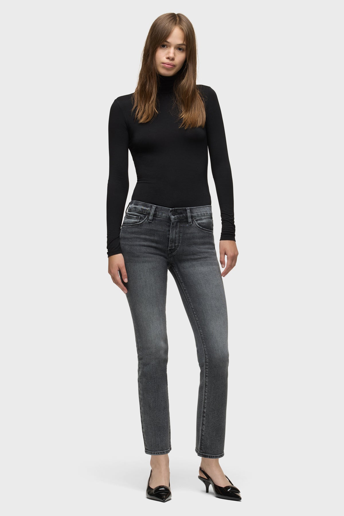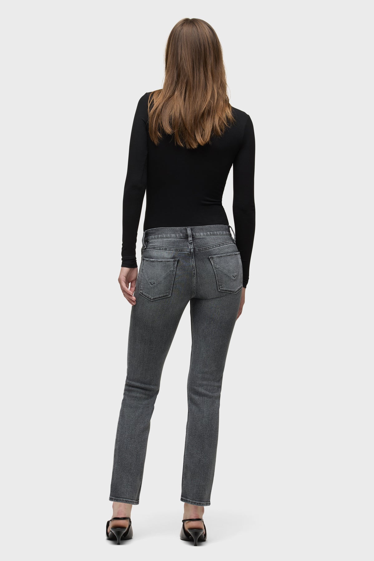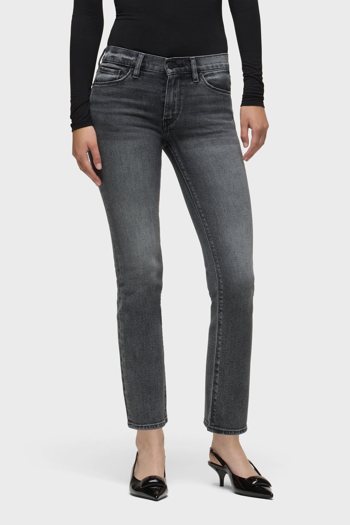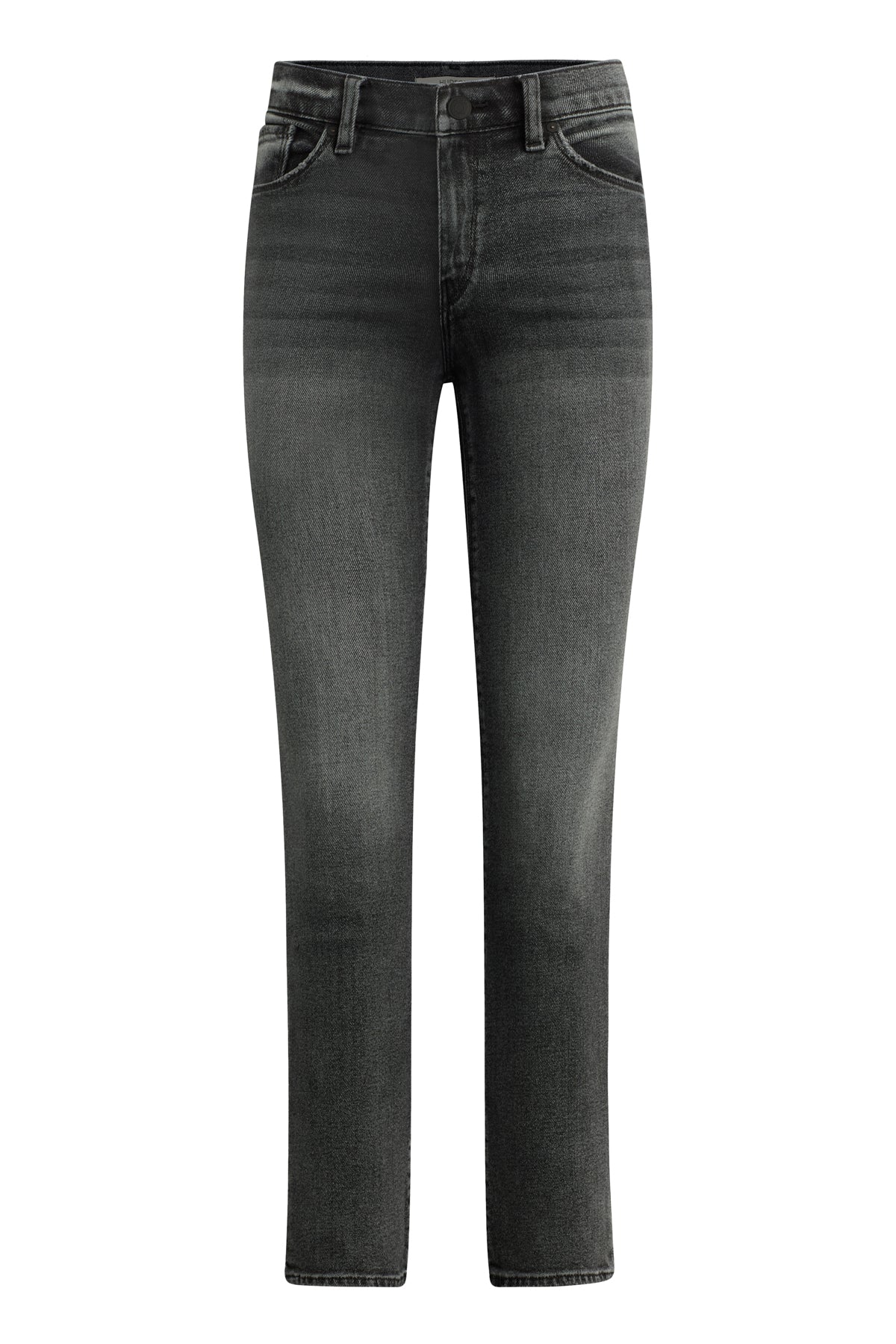Our Nico Mid-Rise Straight Ankle Jean in Black Vortex is cropped with a 28" inseam for the ideal ankle length and finished with classic five-pocket styling and a clean-finished hem. This pair is made from comfort stretch denim in a washed black wash. -