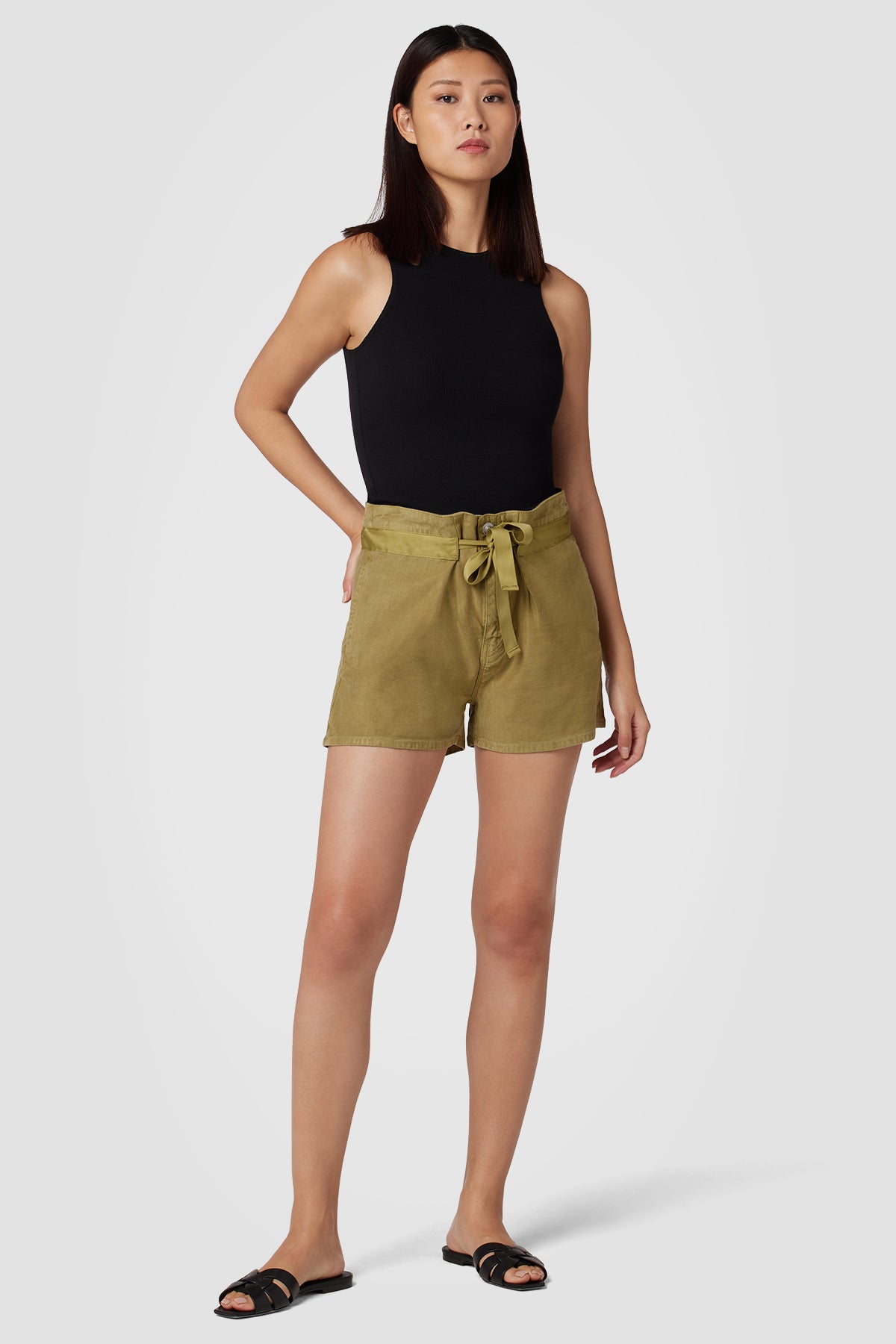 Our Paper Bag Short in Green Moss is cut for an easy fit from a super-soft and lightweight twill. Features a pleated paper bag waist, self-belt, and finished hem. -