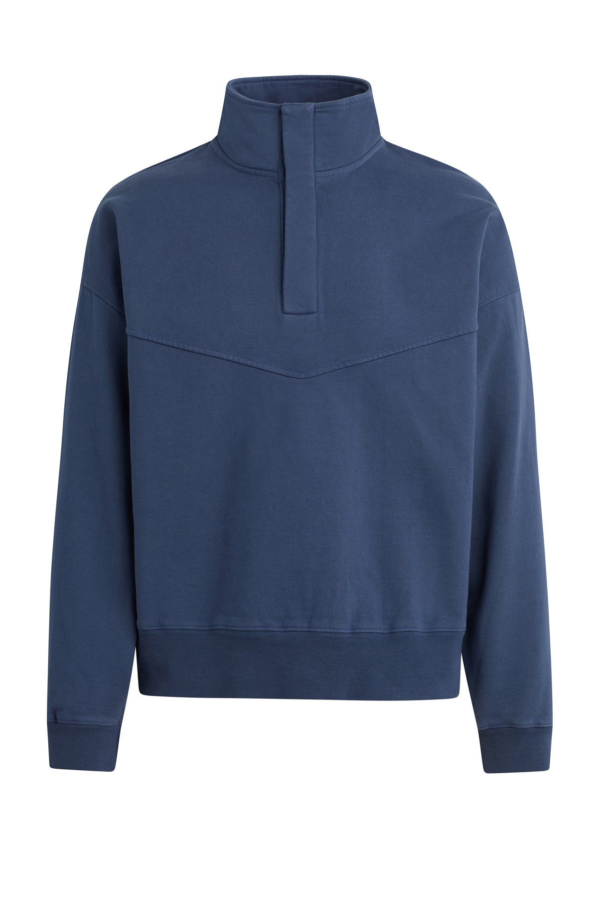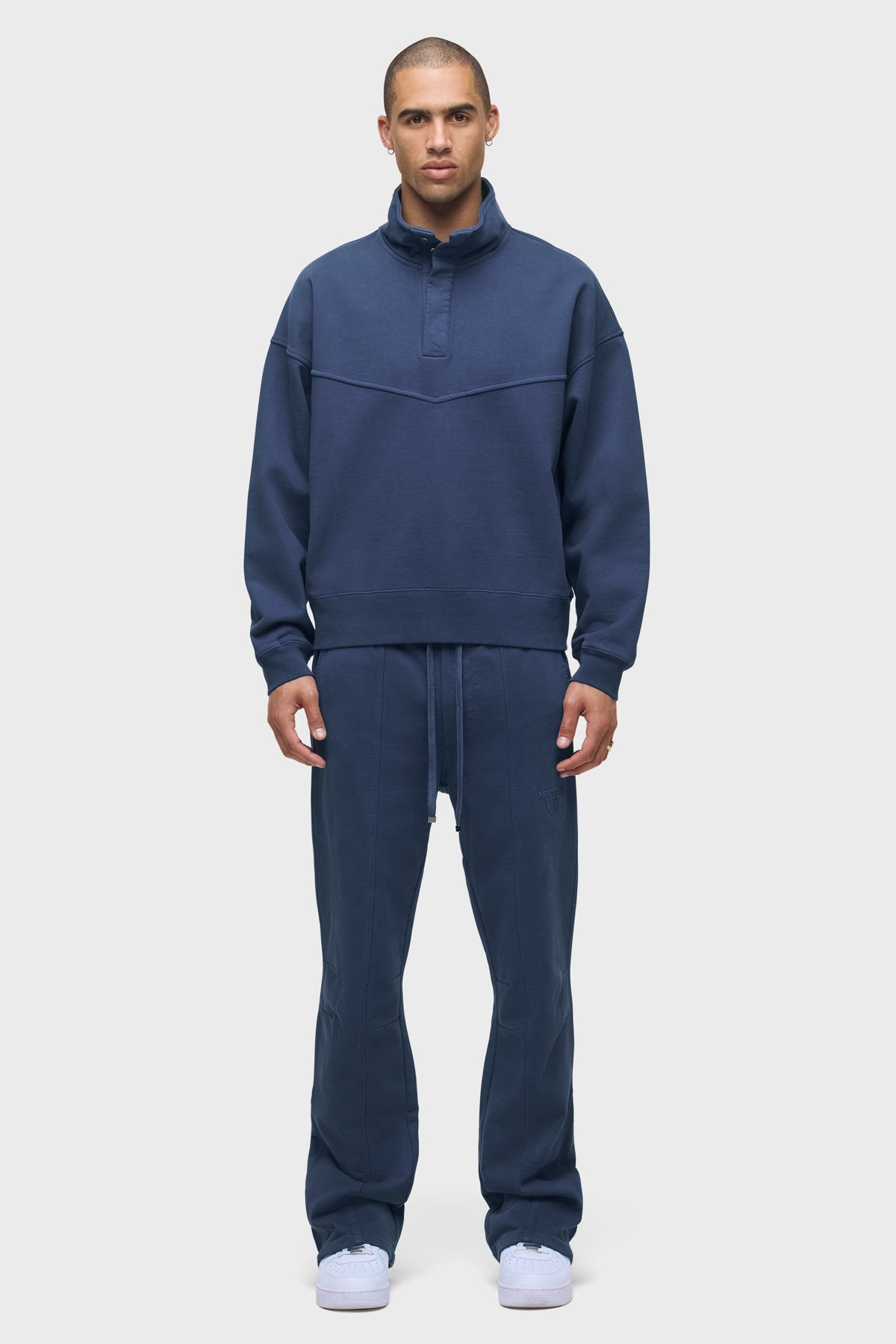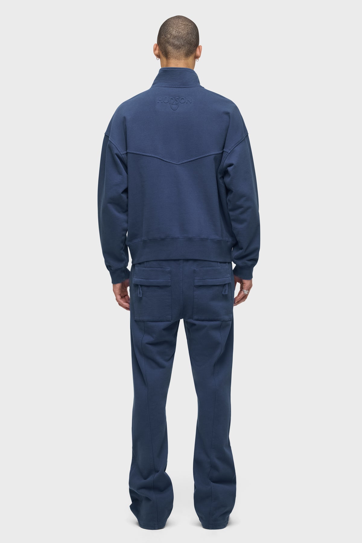 The Passion Funnel Neck Sweatshirt in Azul will be one of your fall closet essentials. Made of heavyweight French terry in a navy shade, this sweatshirt features hidden snaps at the neckline and front and back yoke details for a western edge. -