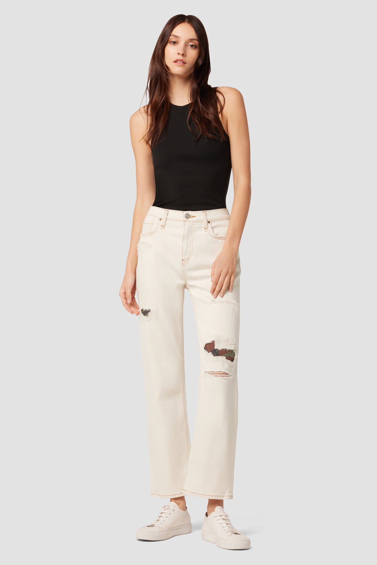 Our Remi High-Rise Straight Ankle Jean is cut with a flattering high rise and cropped relaxed leg. The Rip and Repair wash is made from premium comfort stretch denim with destruction and peekaboo camo print. Complete with classic five-pocket details. -