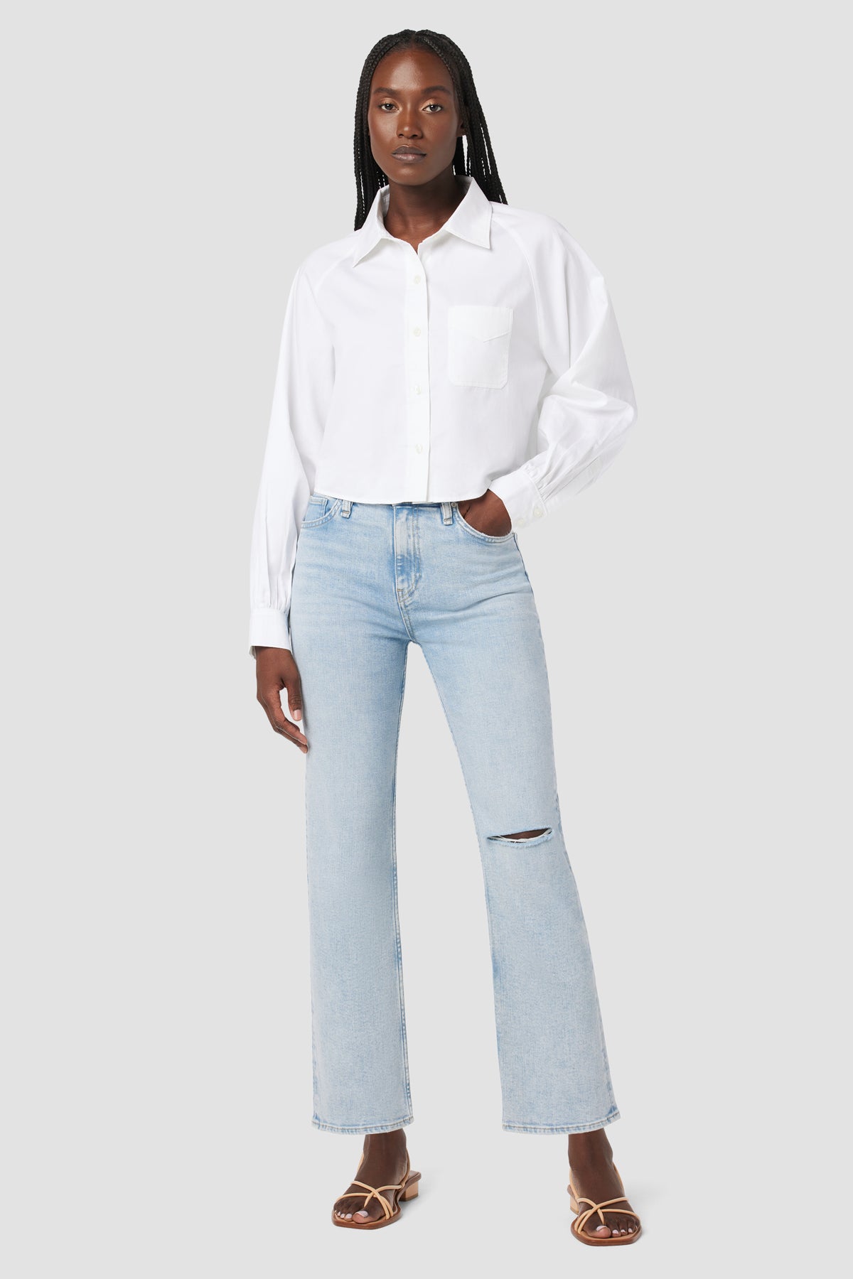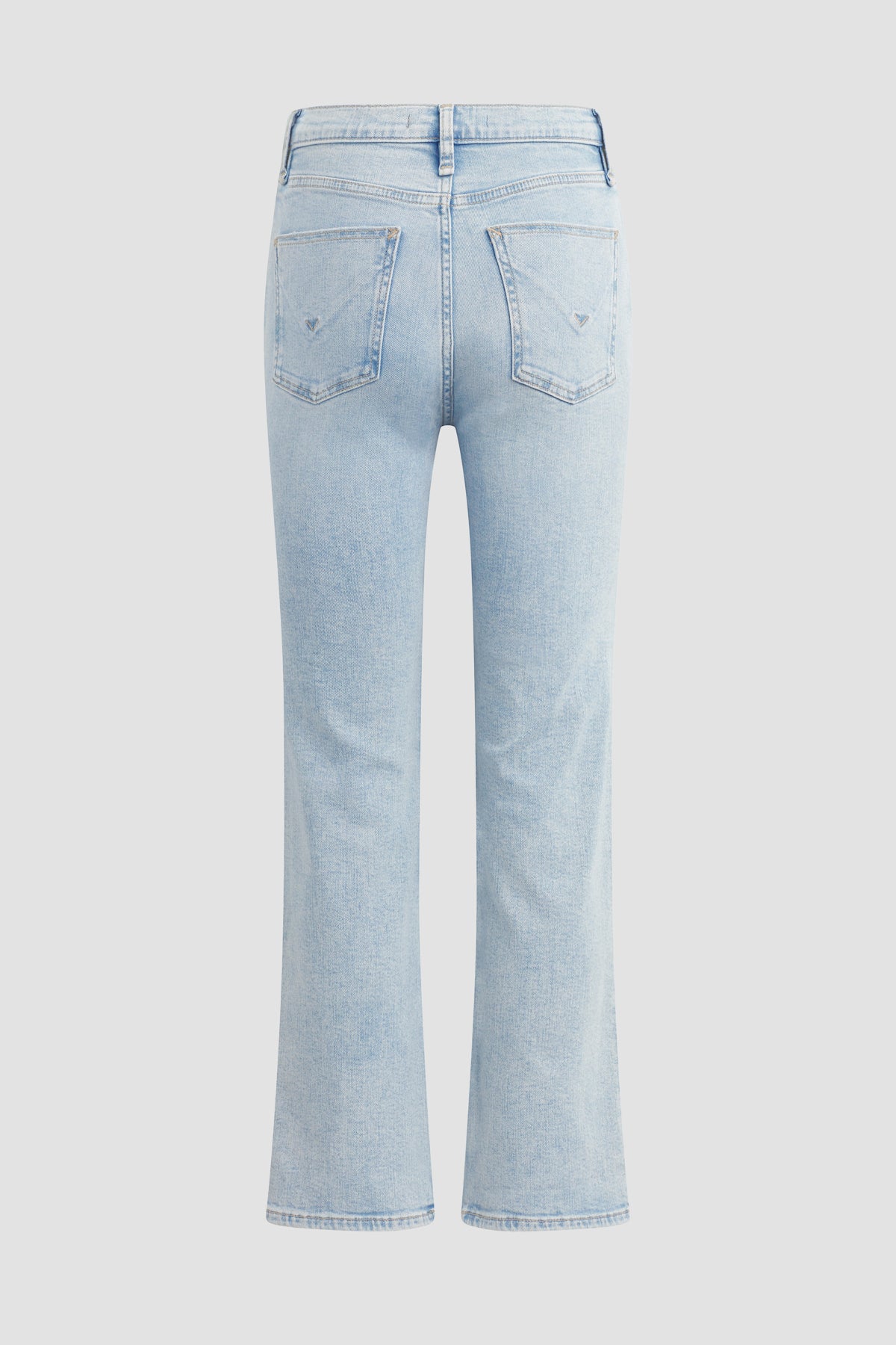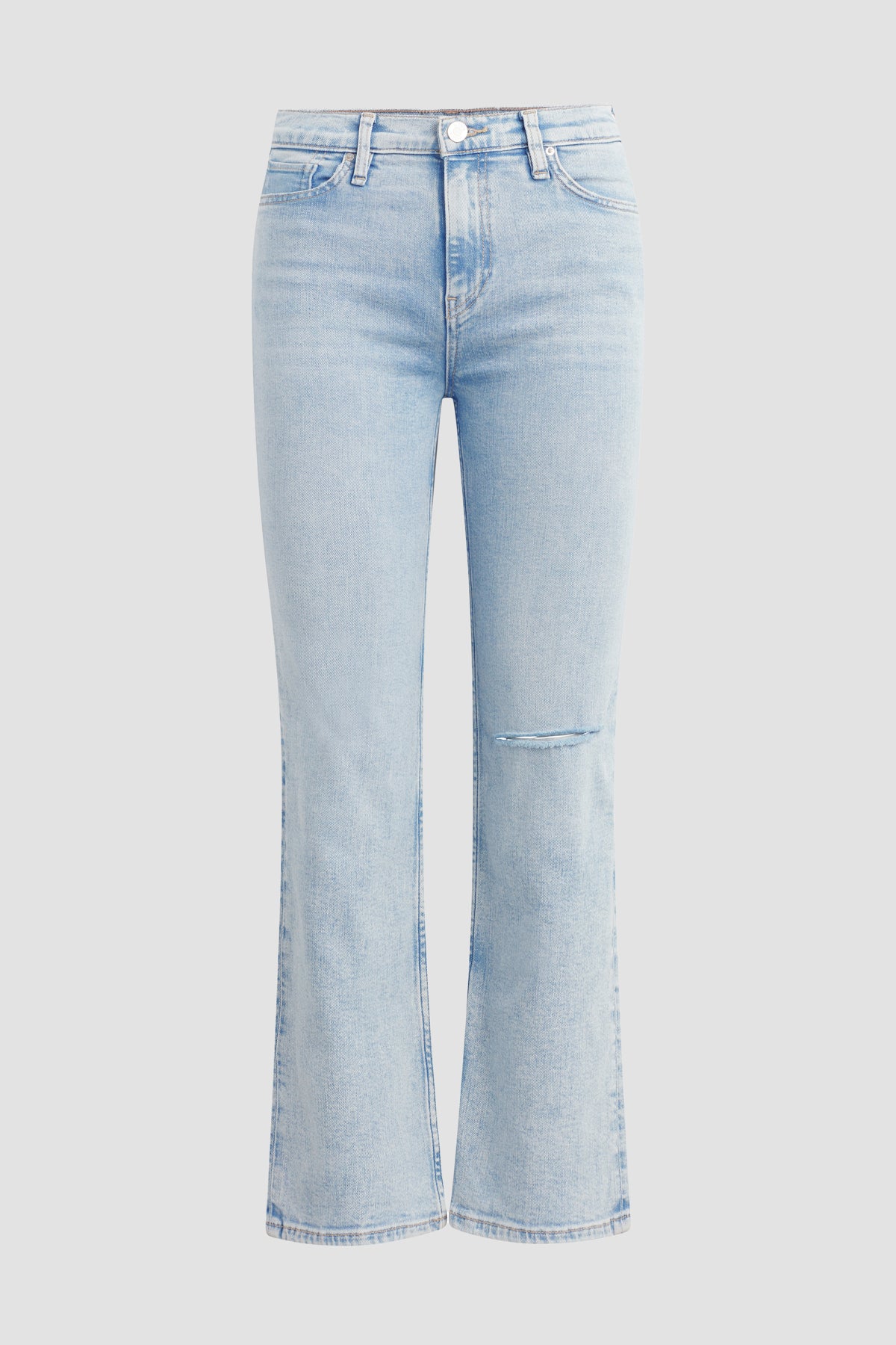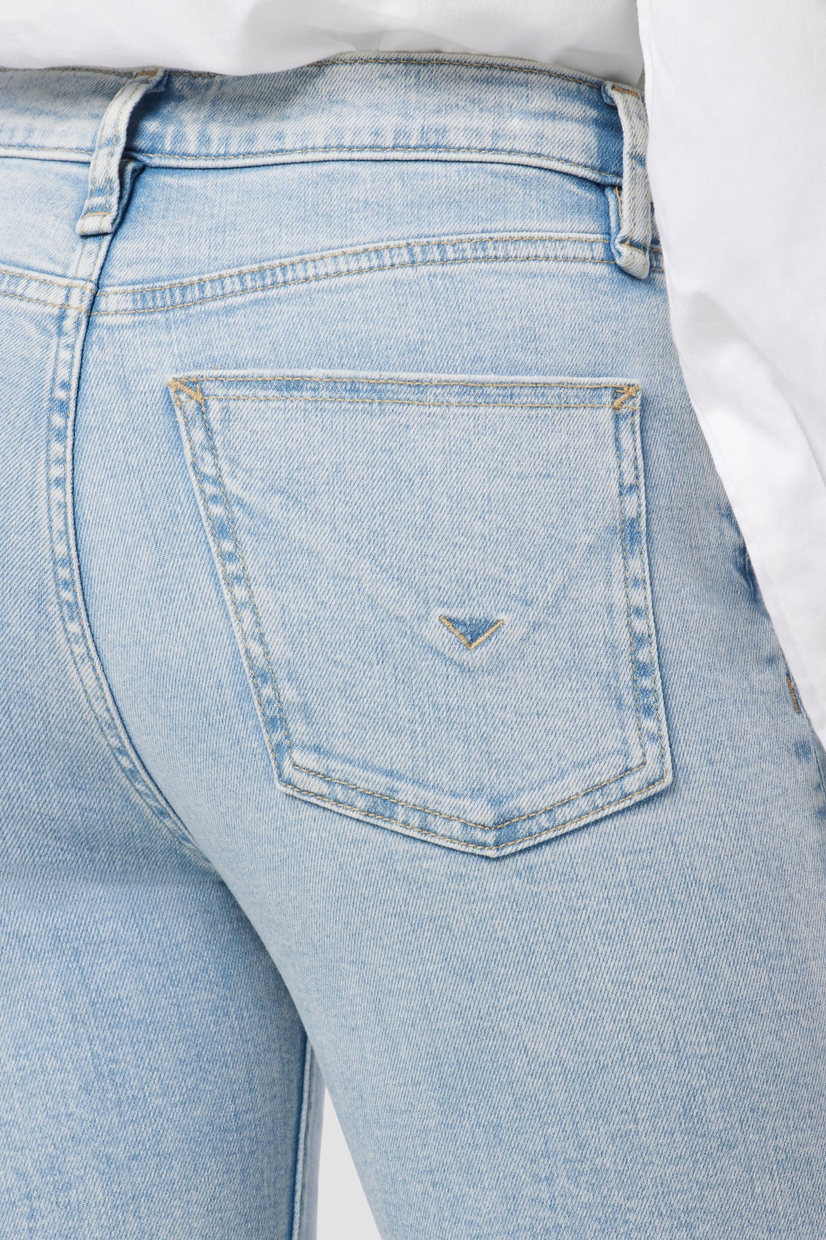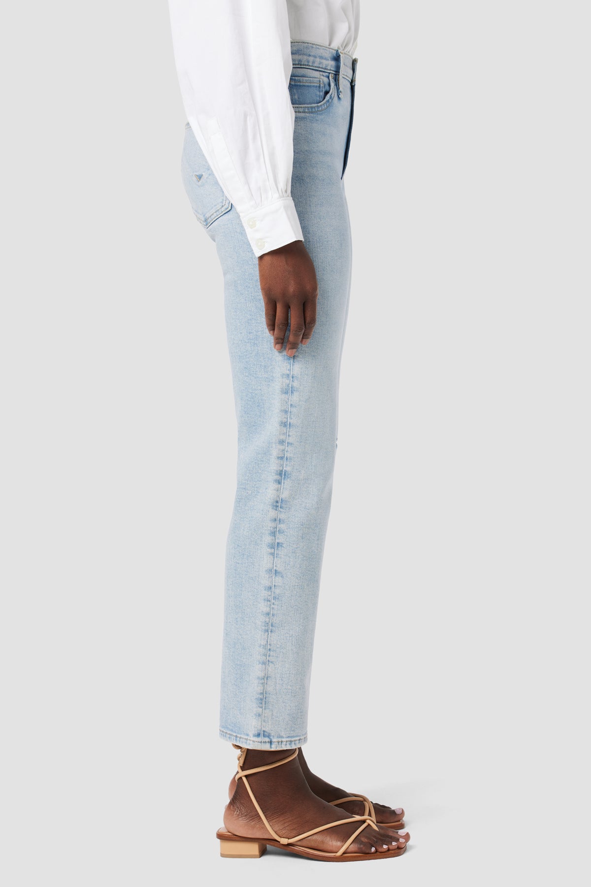 Our Remi High-Rise Straight Ankle Jean is cut with a flattering high rise, relaxed leg and 28" inseam. The light blue Star Dust wash has a clean hem, edge grinding and knee slit. It's made from a premium stretch denim for an authentic look with added softness and flexibility. -
