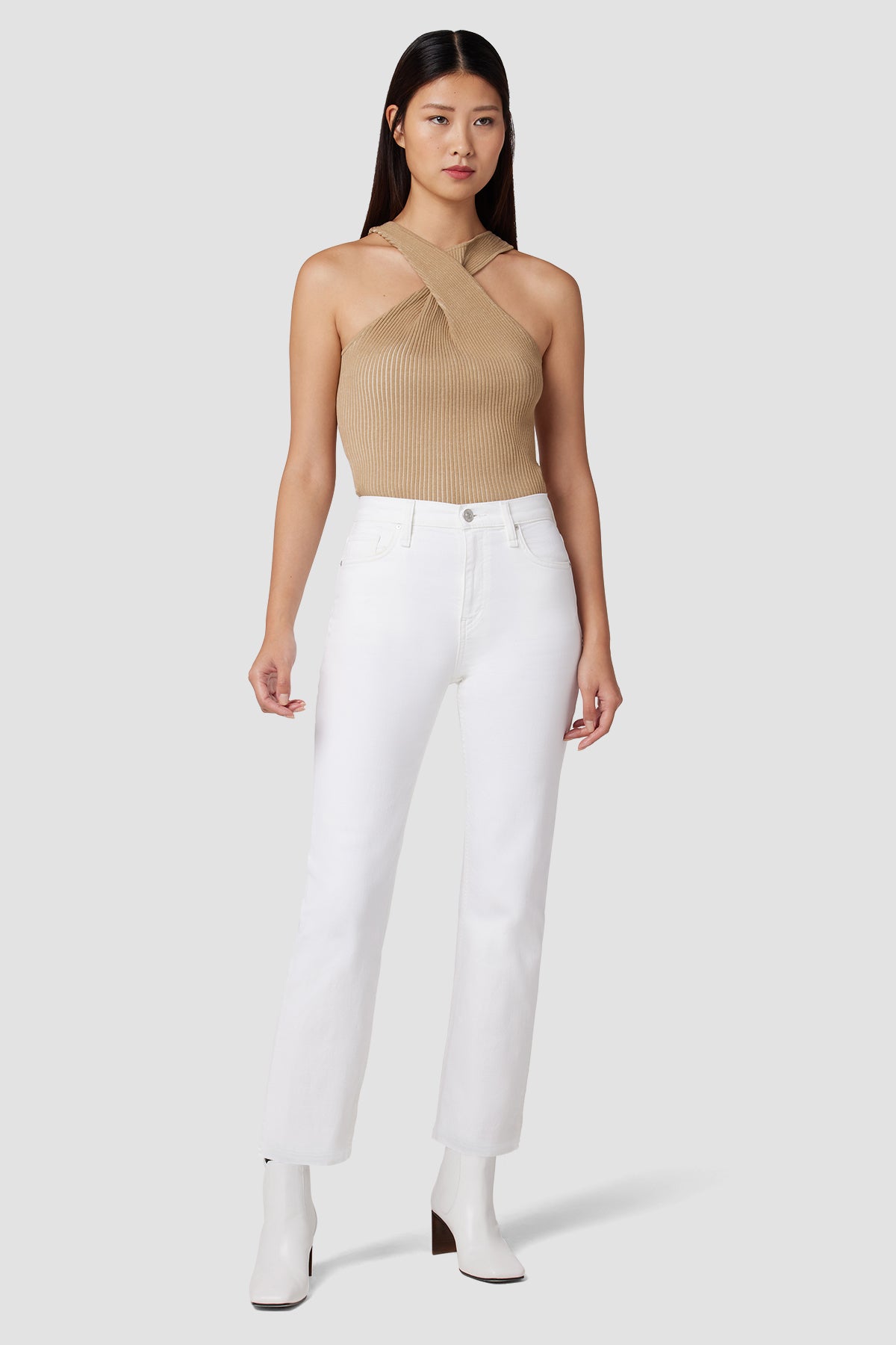 Like a ridiculously good vintage find, our Remi High-Rise Straight Ankle Jean is cut with a flattering high rise and relaxed leg cropped at angle length. The White wash is made from premium comfort stretch denim for added softness and flexibility. -