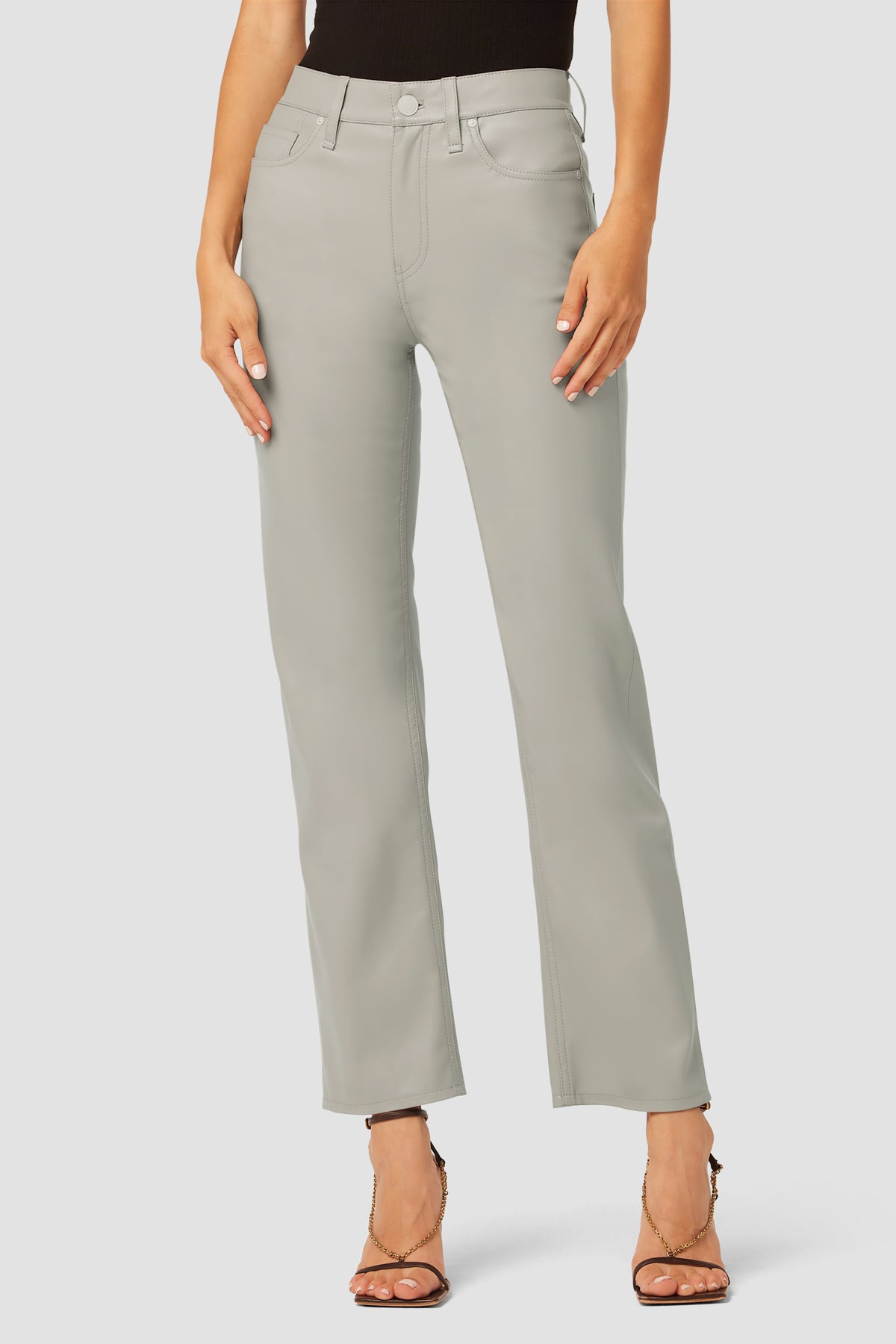 Our Remi High-Rise Straight Pant in Moonrock is cut with a high waist and straight cropped fit from vegan leather. -