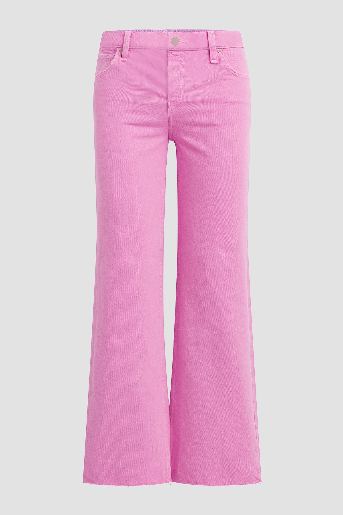Re-up with our Rosie High-Rise Wide Leg Ankle Jean, cut with an elevated waistline and ’70s-feel roomy leg from premium comfort stretch denim. The bright Fuchsia Pink Clean wash is cropped and faded to perfection. -