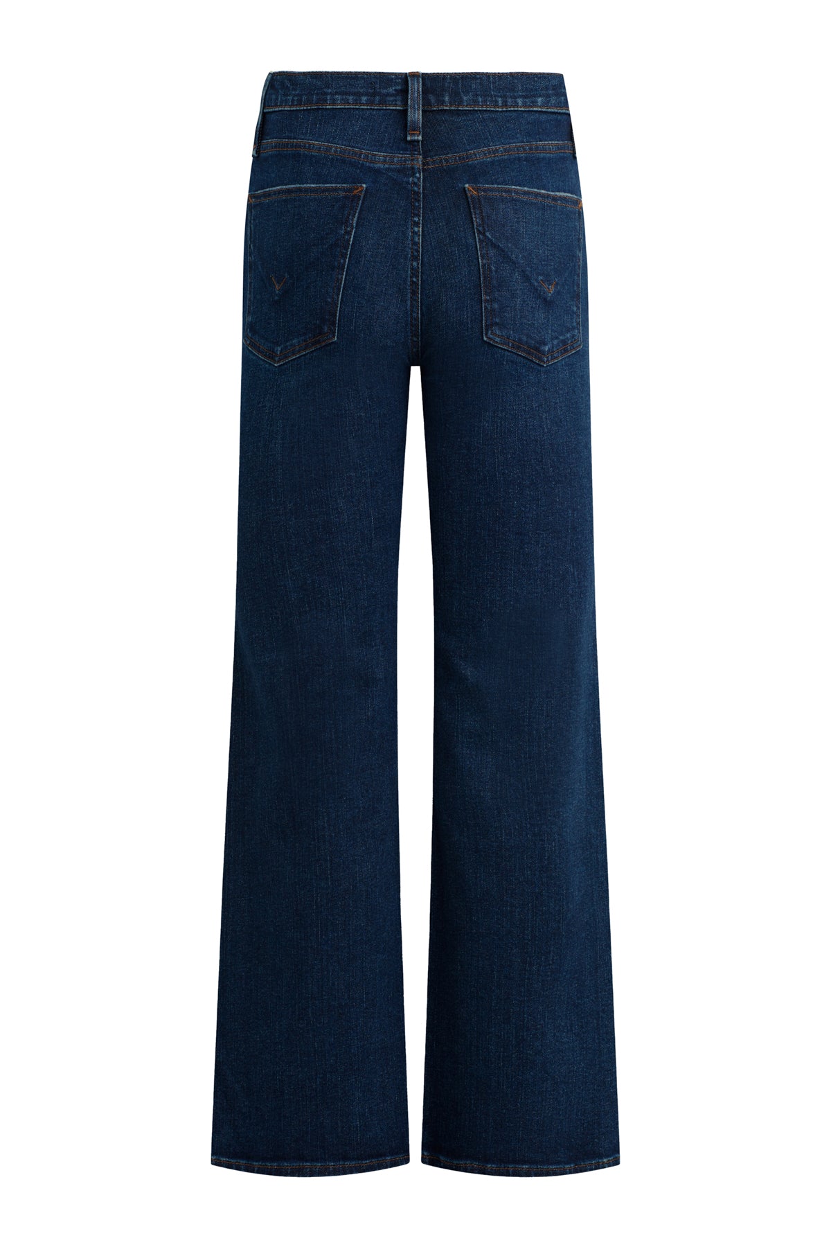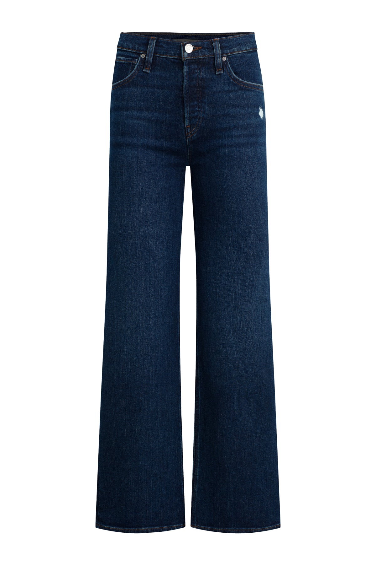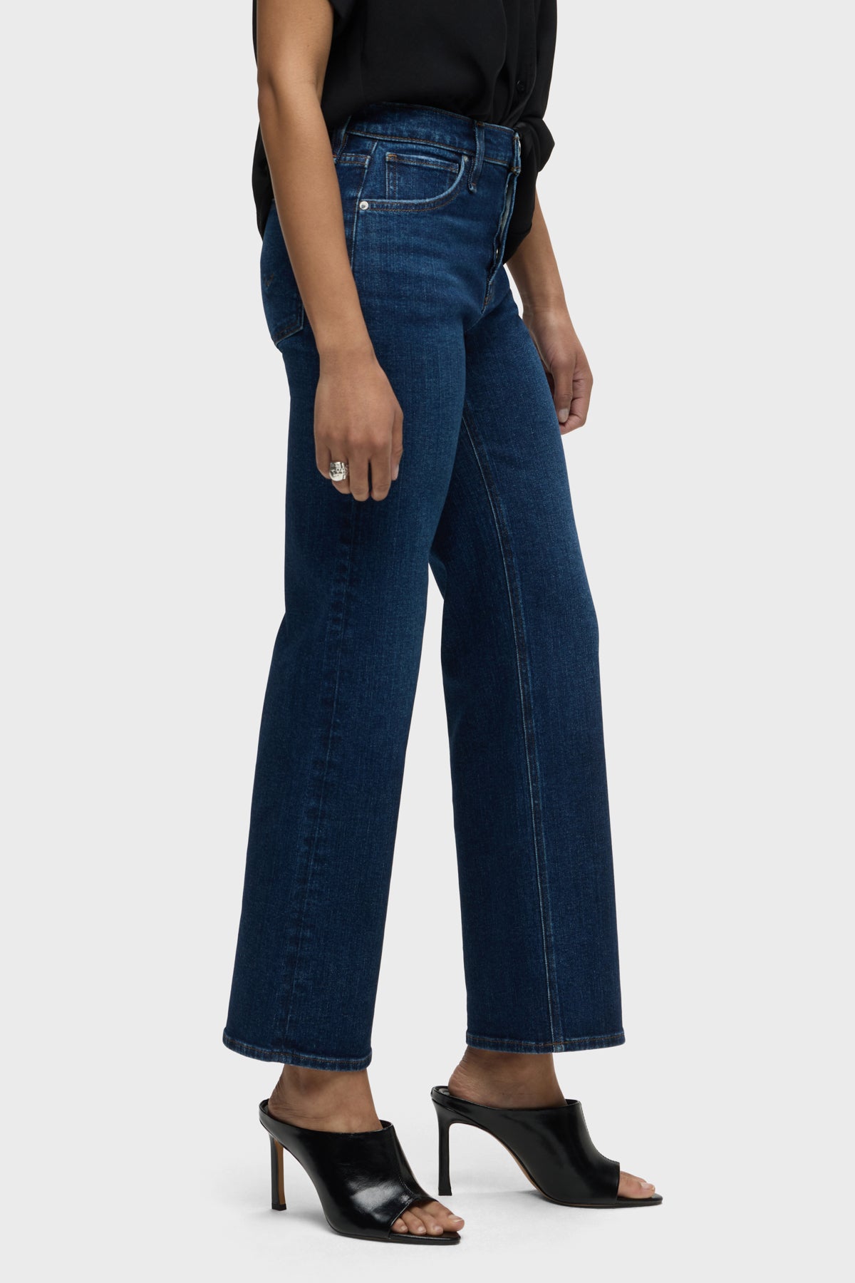 Re-up with our Rosie High-Rise Wide Leg Ankle Jean, cut with an elevated waistline and ankle-length, roomy leg. Crafted from premium comfort stretch denim that's been expertly washed to a dark indigo Bonfire with edge grinding, clean hems and a covered button fly. -