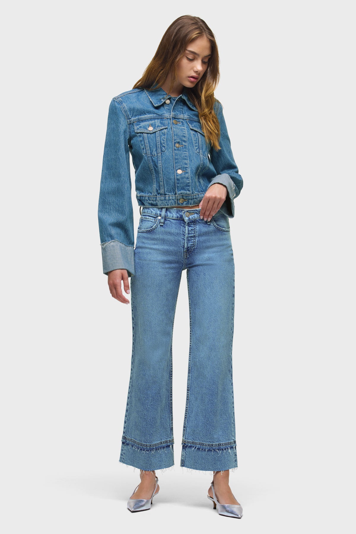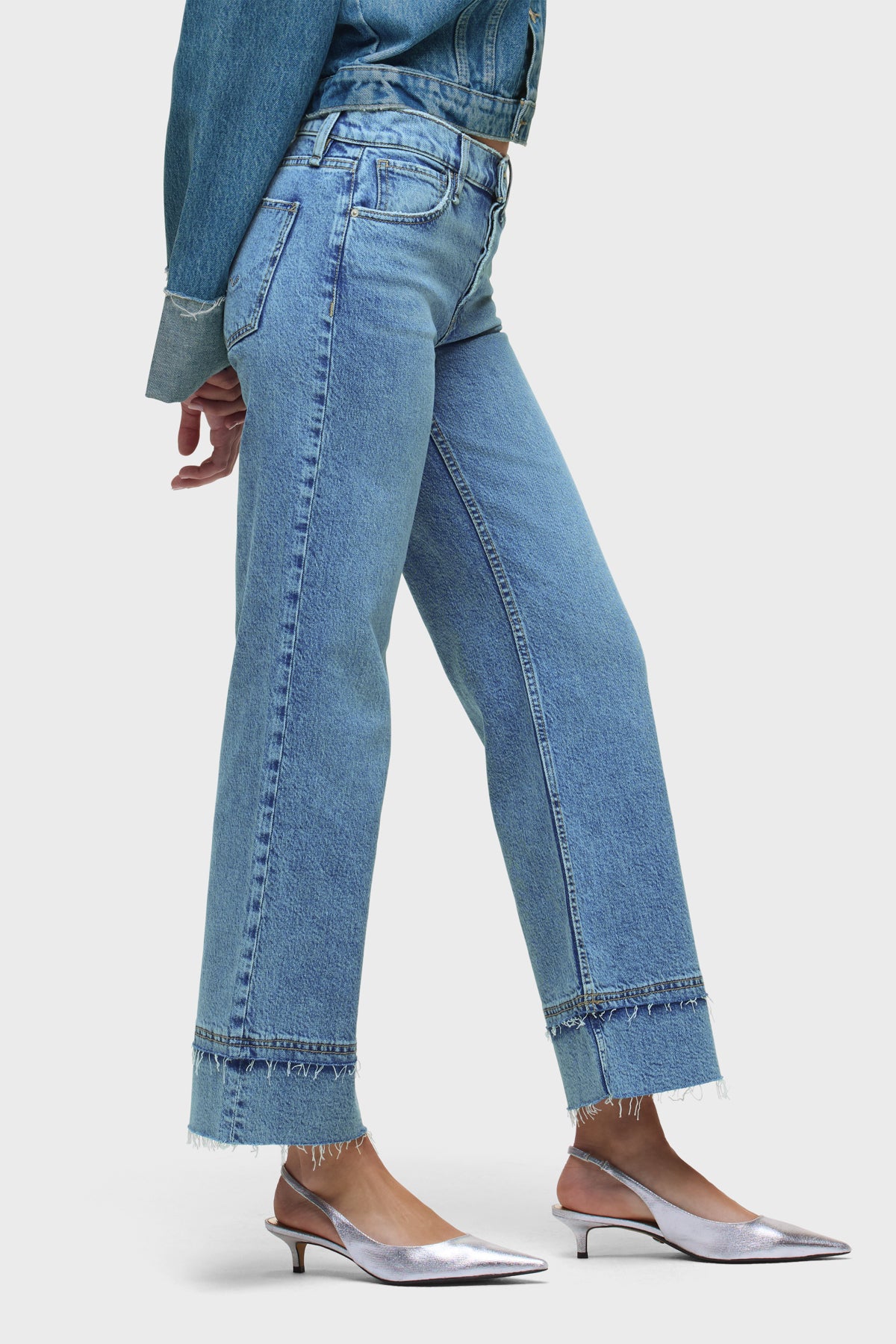 Rosie High-Rise Wide Leg Ankle Cuff Raw Hem
