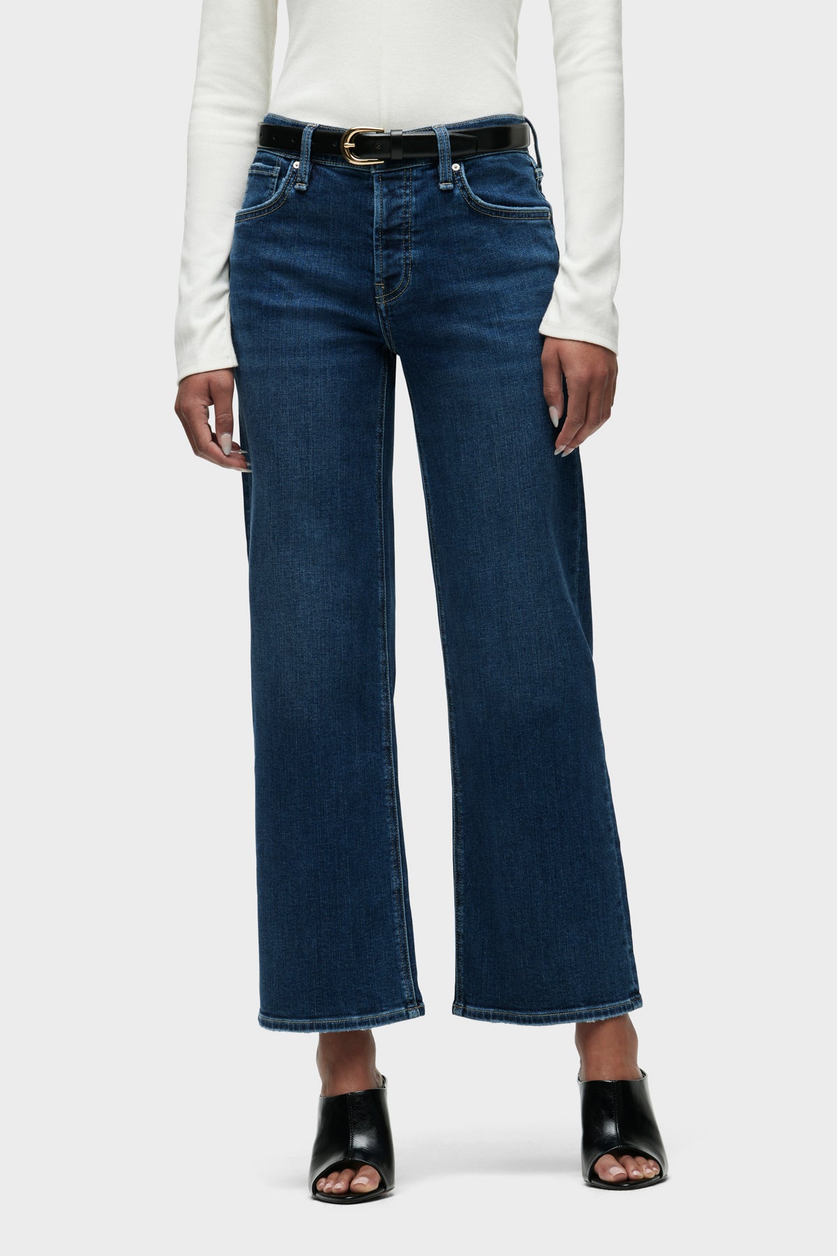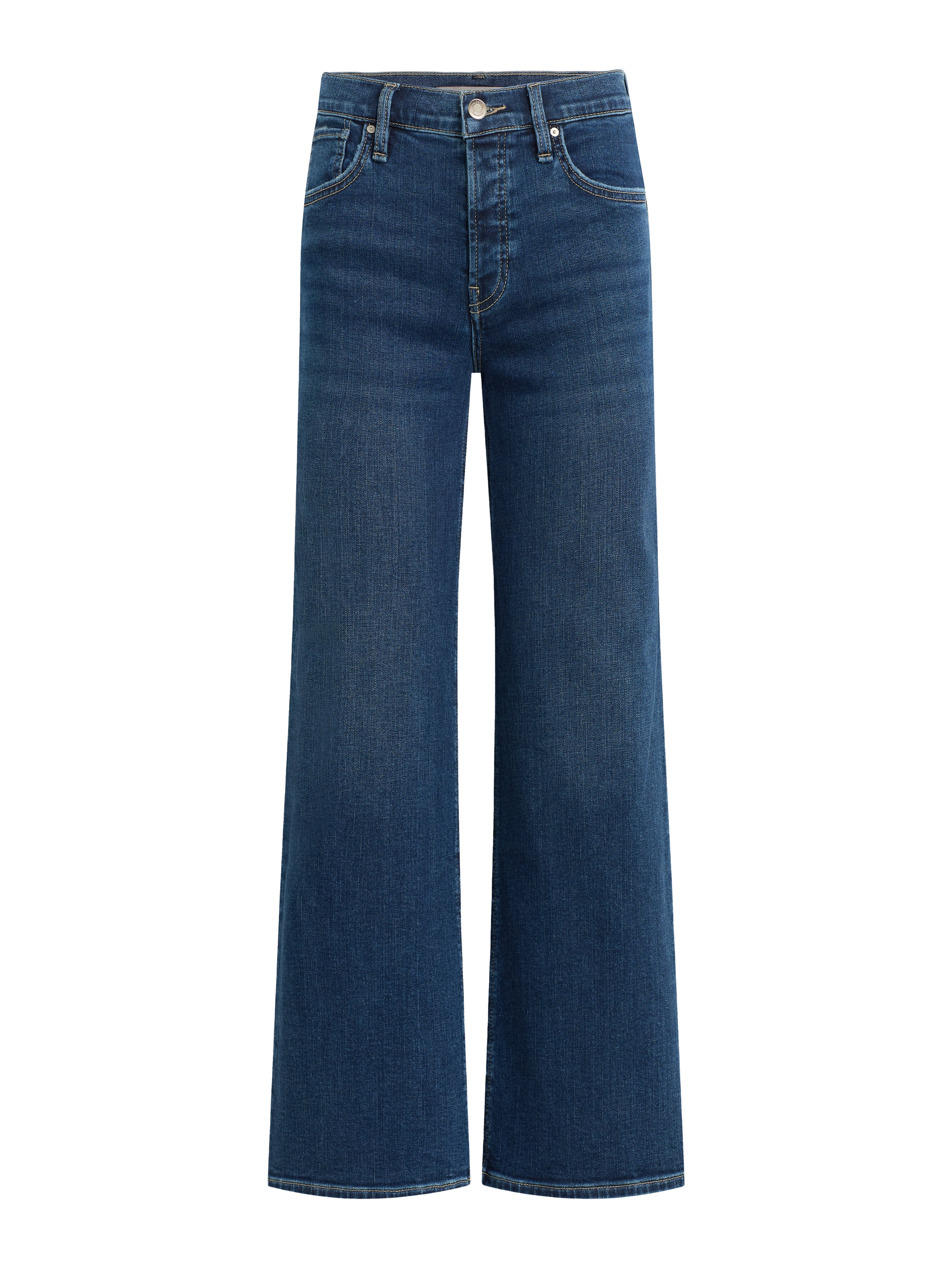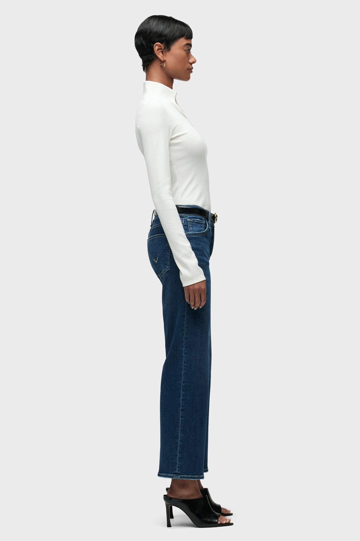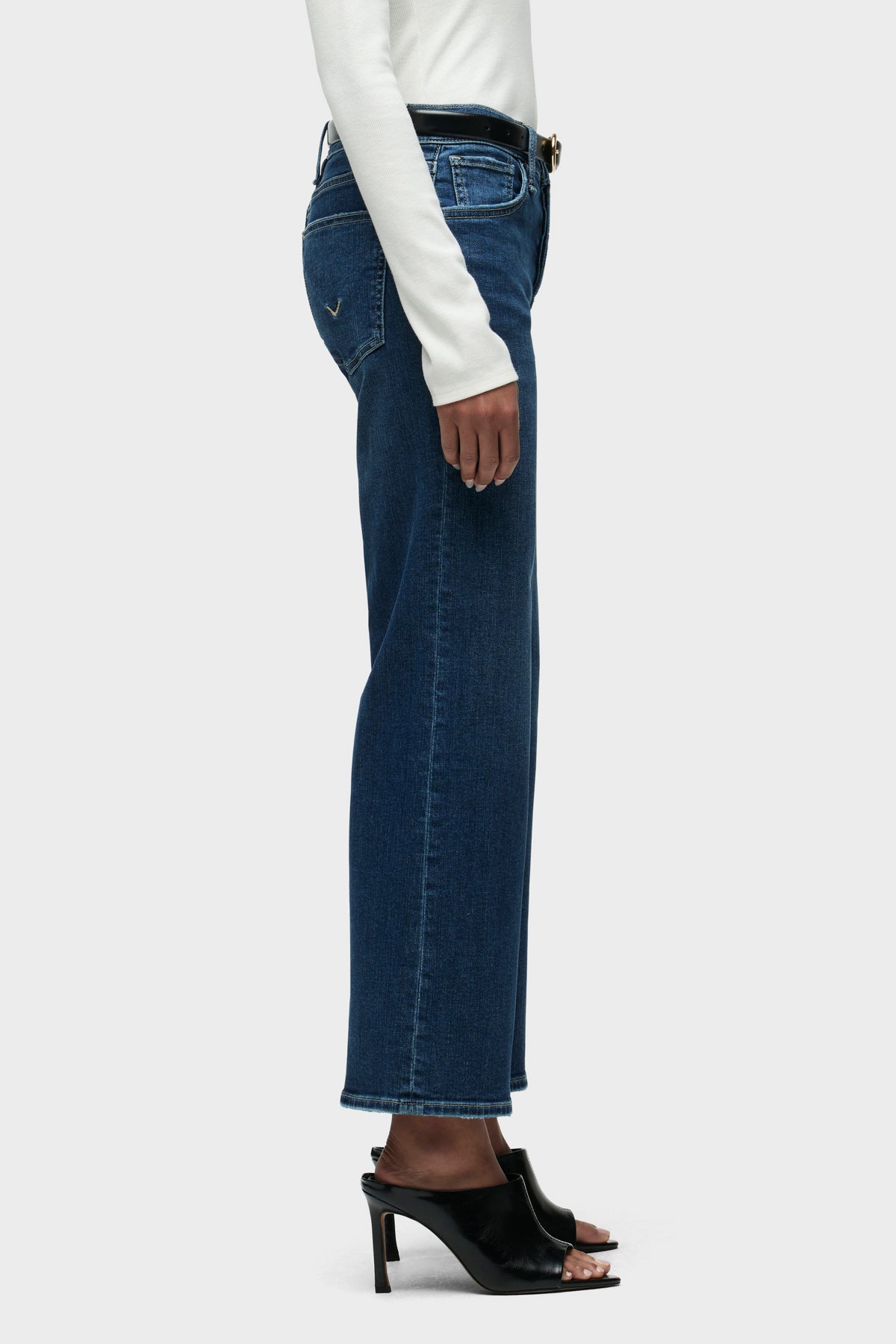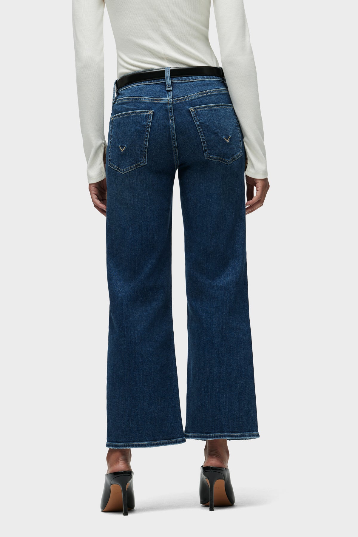 Re-up with our Rosie High-Rise Wide Leg Ankle Jean, cut with an elevated waistline and ankle-length, roomy leg. Crafted from premium comfort stretch denim that's been expertly washed to a medium indigo with edge grinding, covered button fly and classic five-pocket details. -