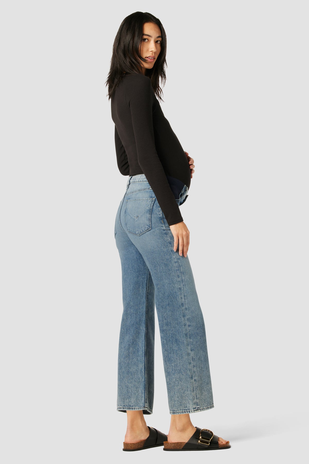 Re-up with our Rosie High-Rise Wide Leg Ankle Jean designed with elastic panels for added comfort and ’70s-feel roomy leg cut from 100% cotton denim. The medium indigo Young At Heart wash is cropped and mildly destructed, adding even more vintage appeal.