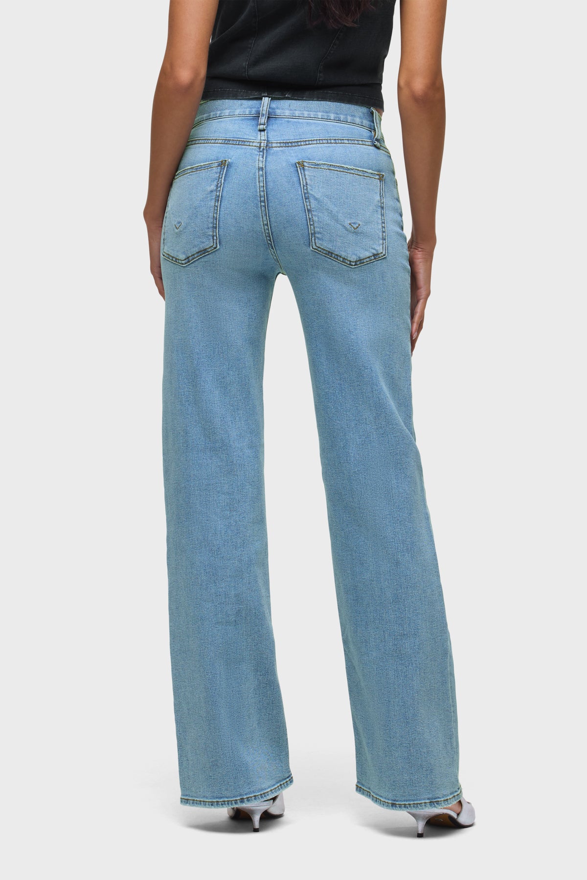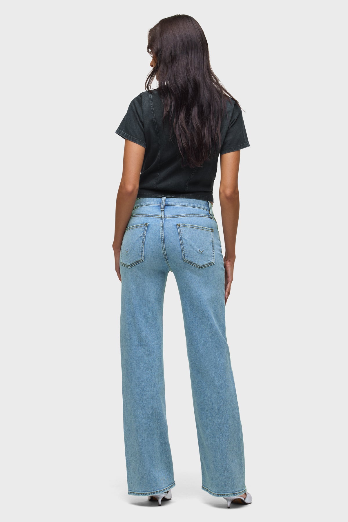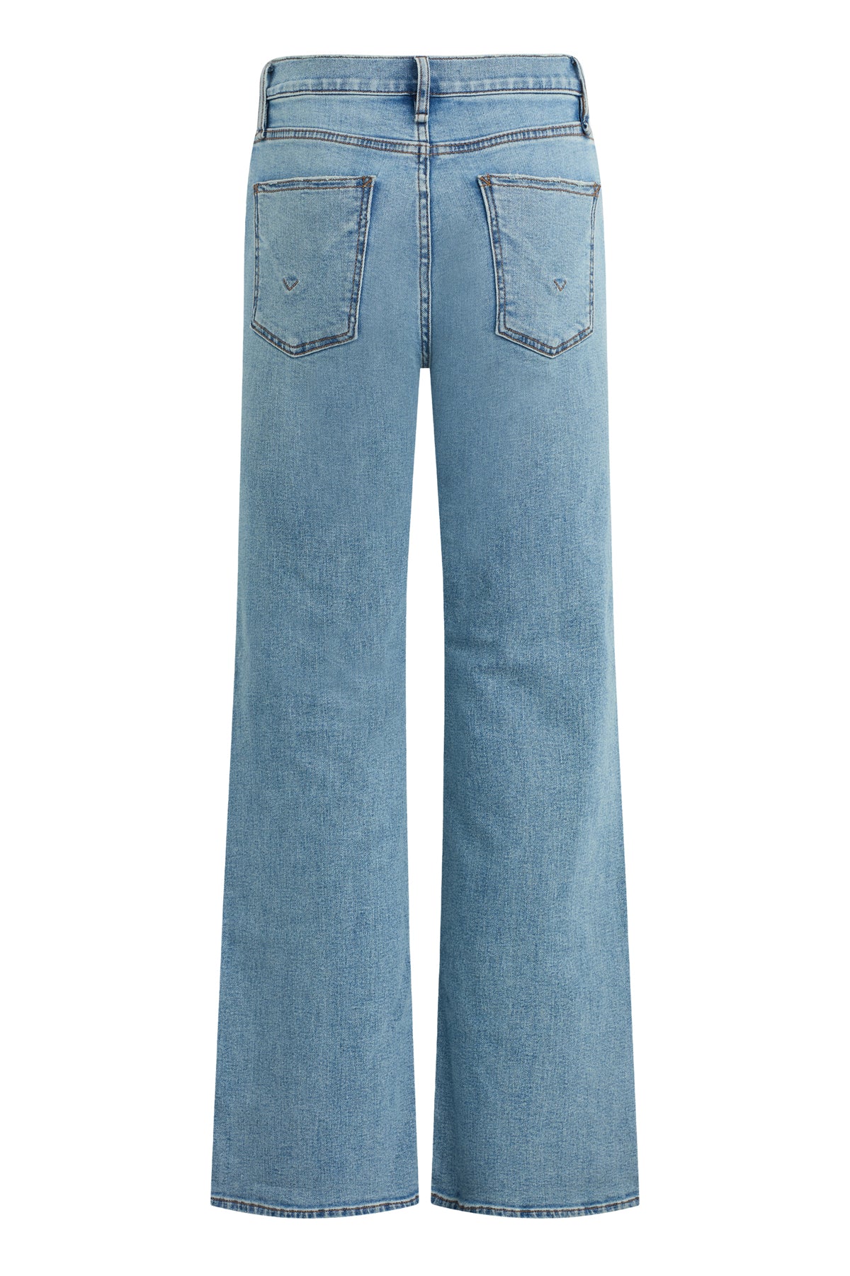 Our Rosie High-Rise Wide Leg Jean in Oak has a classic fit with a 32" inseam, an elevated waistline and a roomy leg. This pair is crafted from premium comfort stretch denim in a light indigo wash and finished with a covered button fly. -