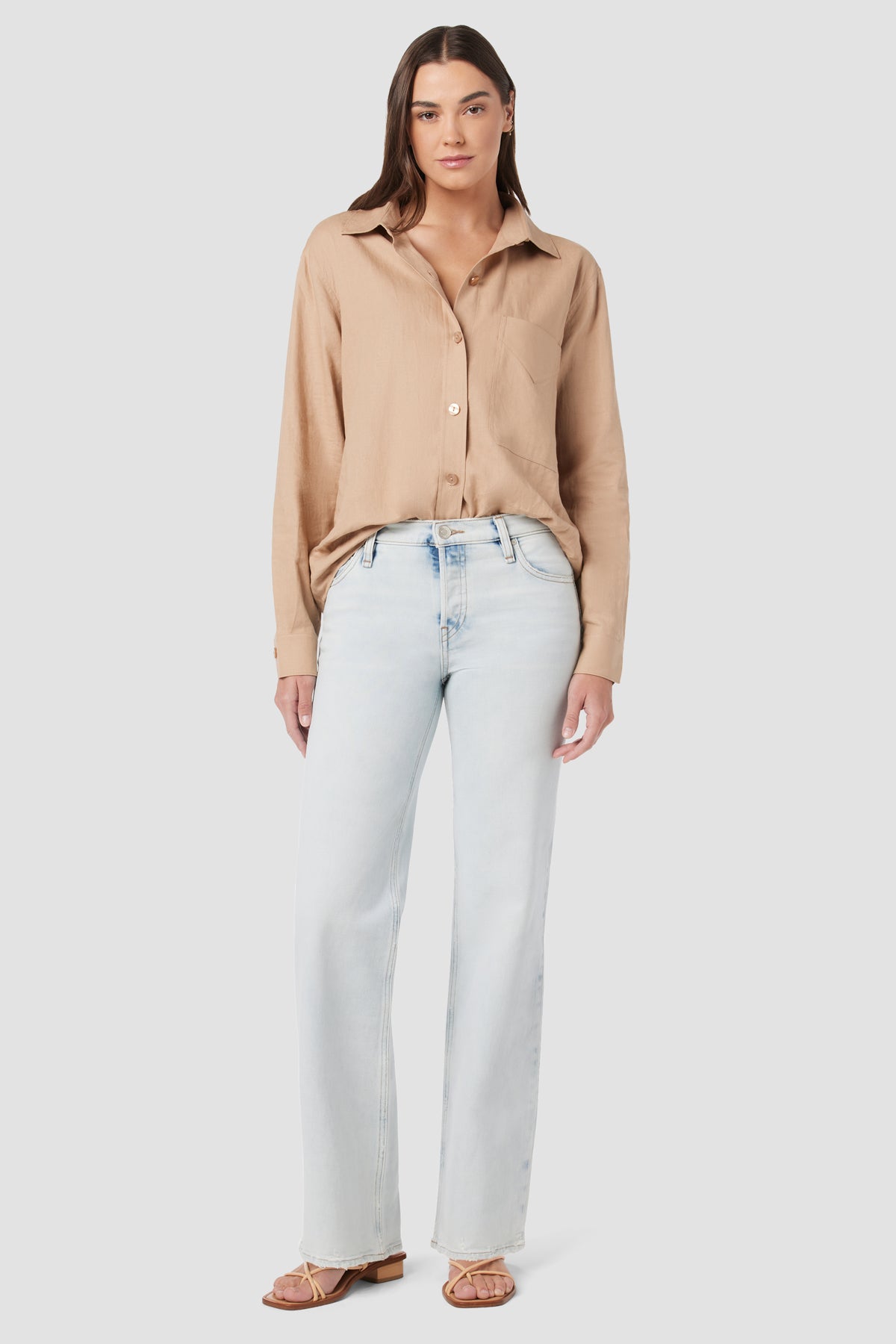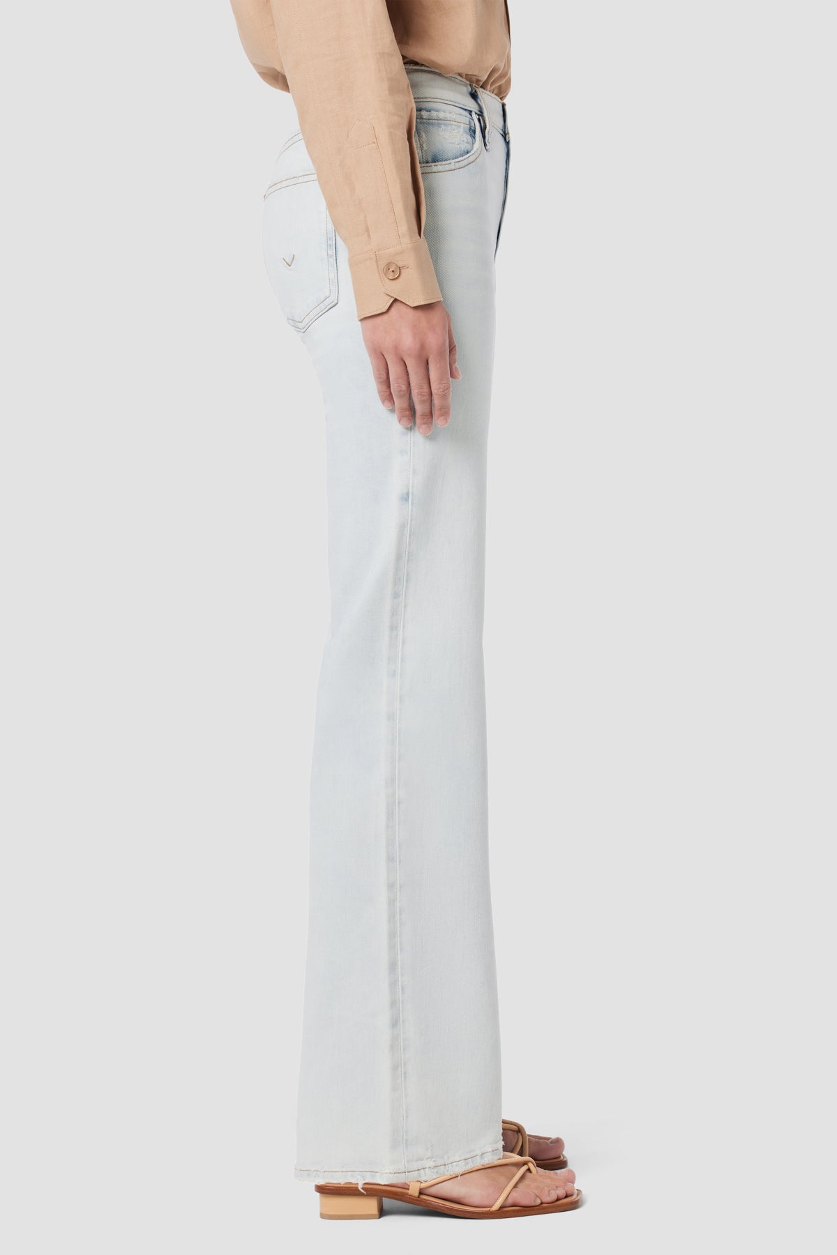 Re-up with our Rosie High-Rise Wide Leg Jean, cut with an elevated waistline and wide leg. Crafted from Italian premium comfort stretch denim, the bleached out, light blue Socal wash features a clean hems and edge grinding. -