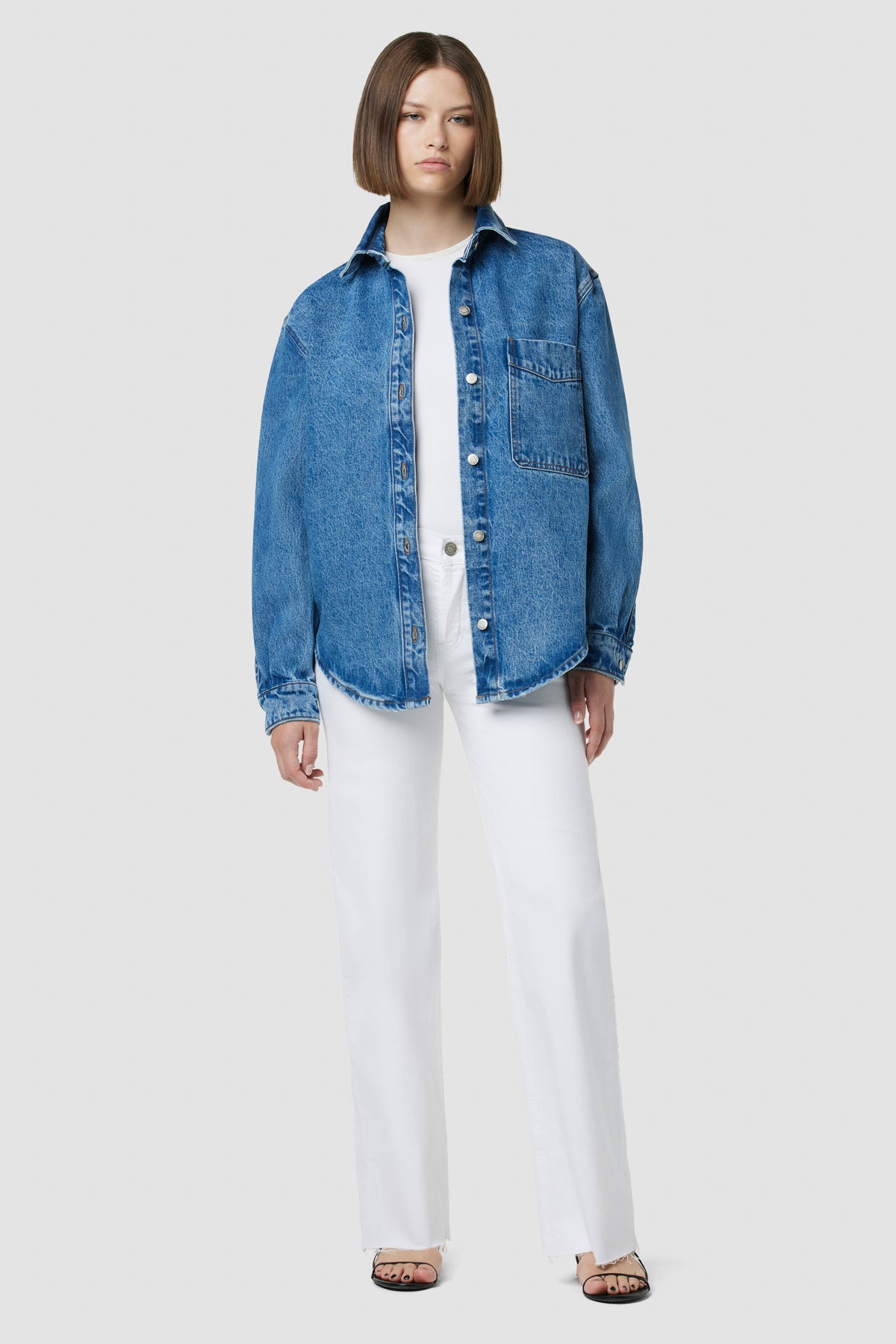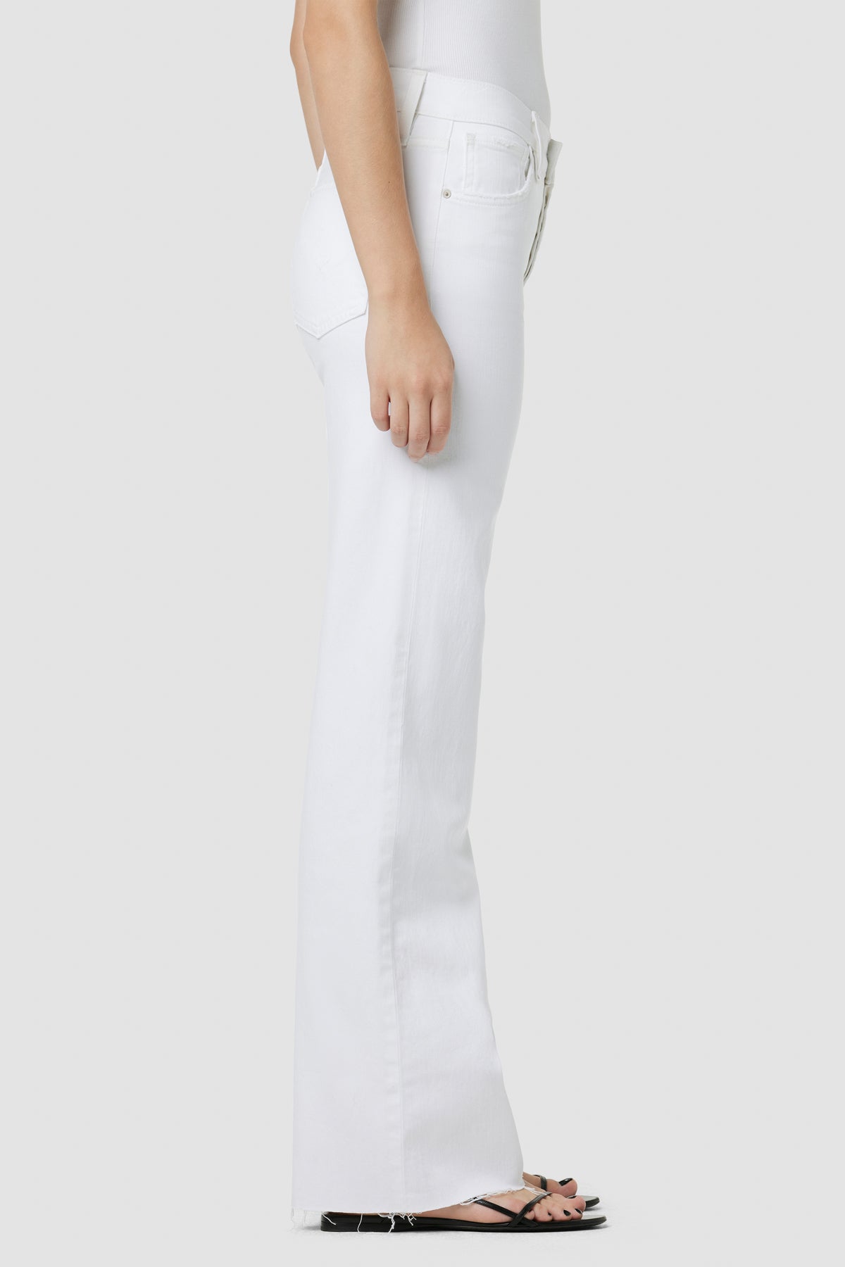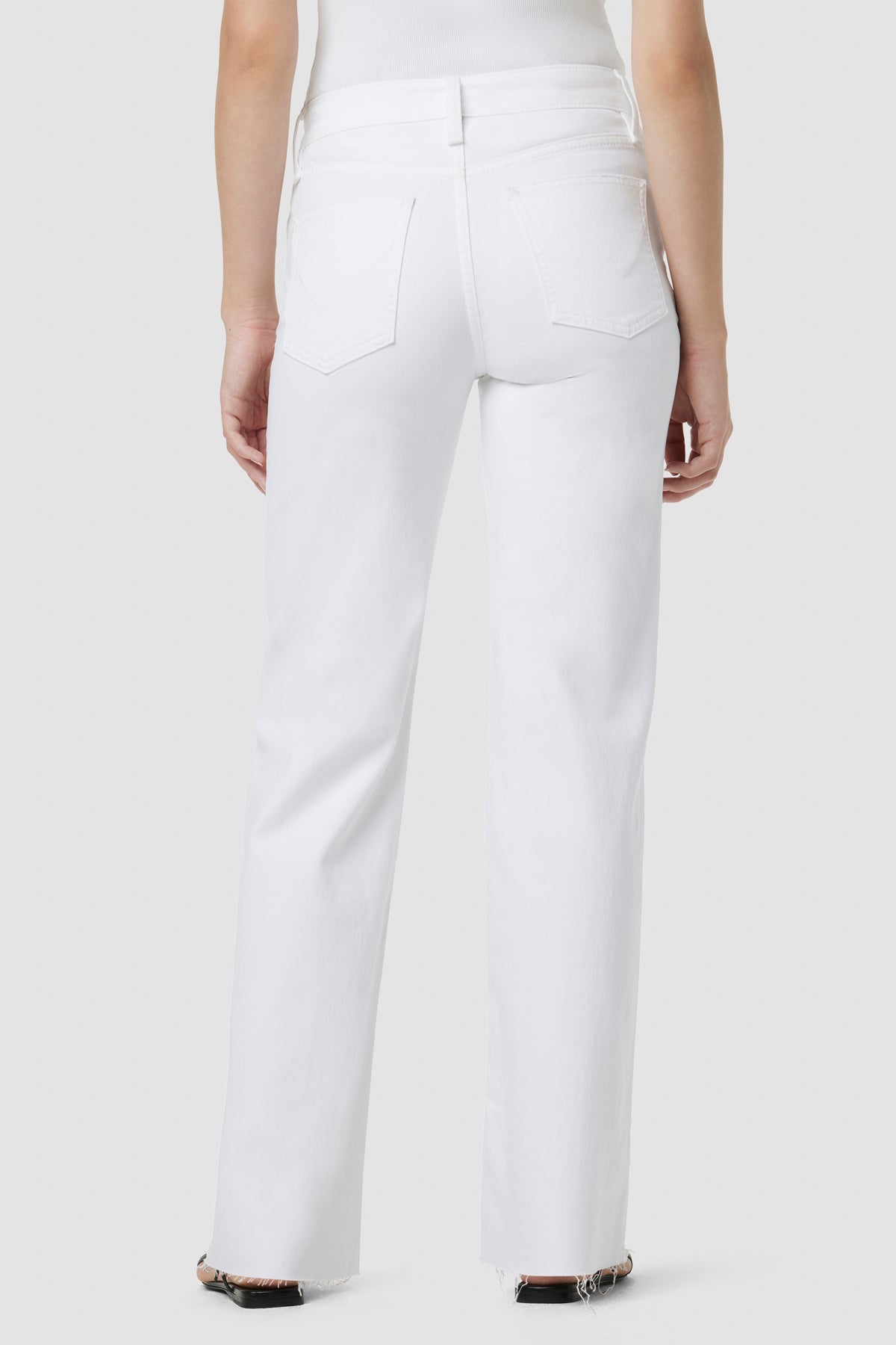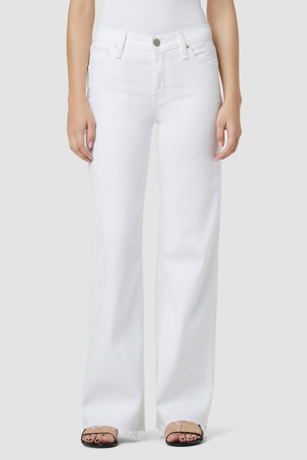 Re-up with our Rosie High-Rise Wide Leg Jean, cut with an elevated waistline and roomy leg. Crafted from premium comfort stretch denim, the White Lily wash features a covered button fly, raw hems and five-pocket details. -
