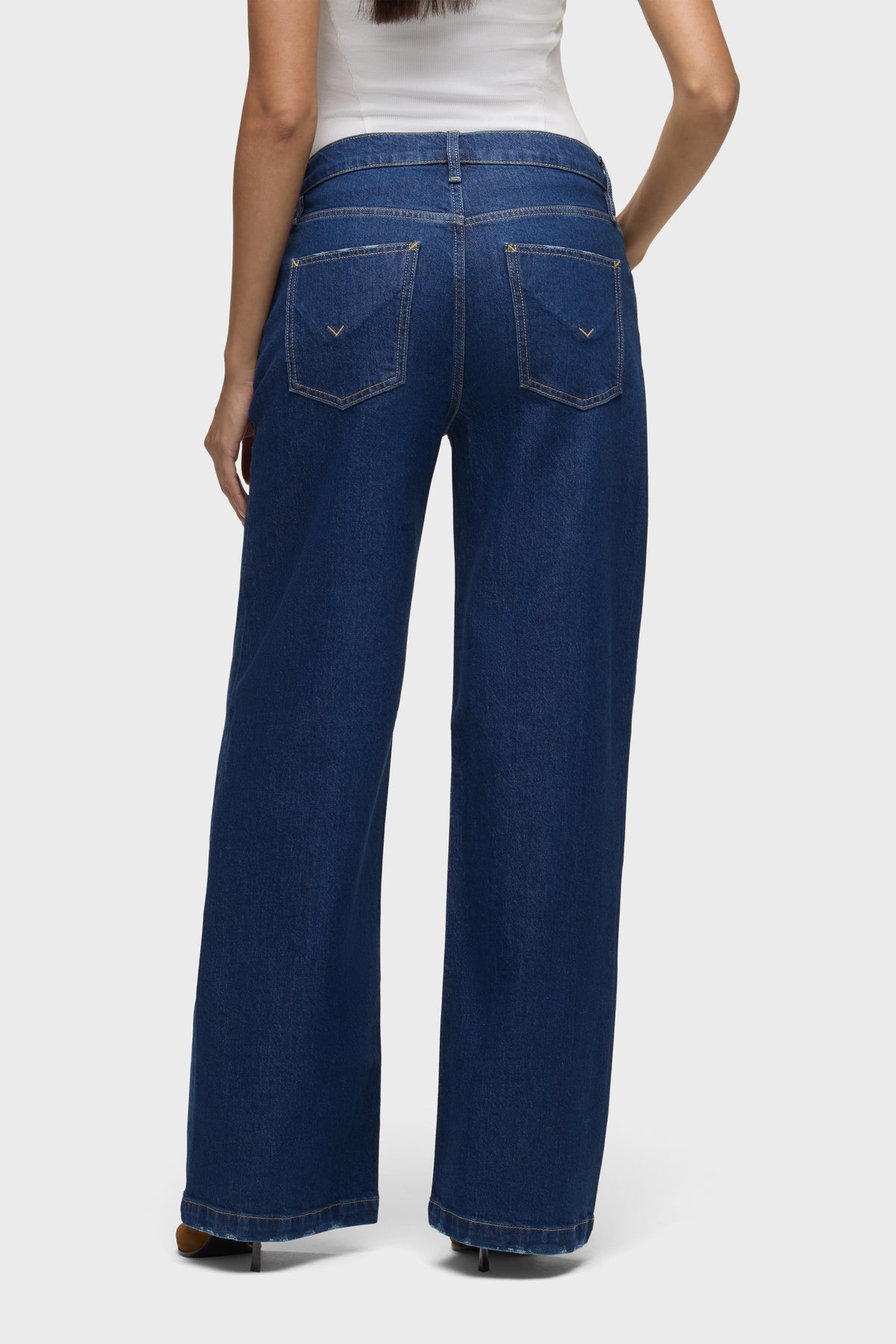 The Rylee Low-Rise Loose Jean in Rinse is a low-rise loose fit that is meant to be worn relaxed and dropped. This pair features a 32" inseam and clean-finished hem. It is made of comfort stretch denim in a true blue rinse wash. For a looser fit, we recommend sizing up. -